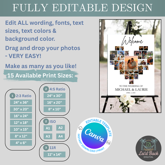 Heart Photo Wedding Welcome Sign Template | Editable Canva Digital Download | Custom Wedding Poster with Photos | Instant Download