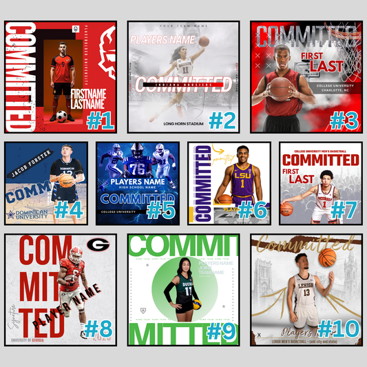 Various College Commitment Canva Template for High School Athletes | Editable Sports Graphic | Instant Digital Download