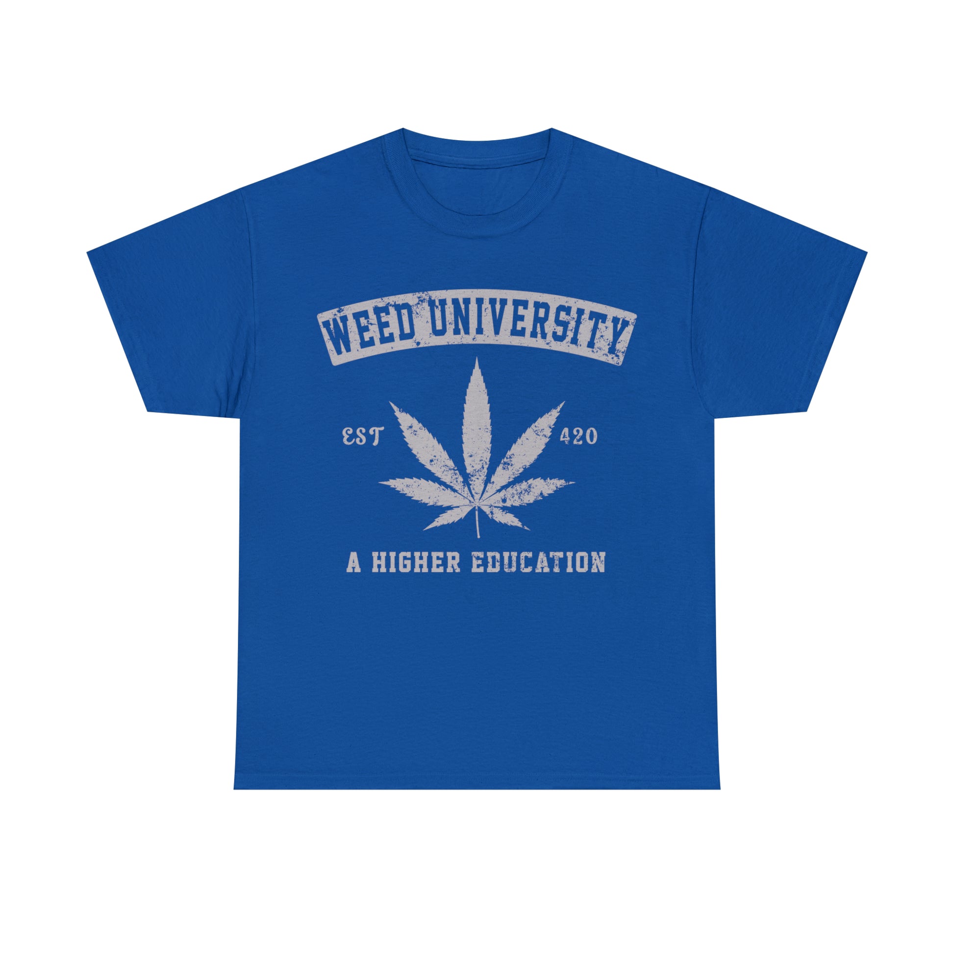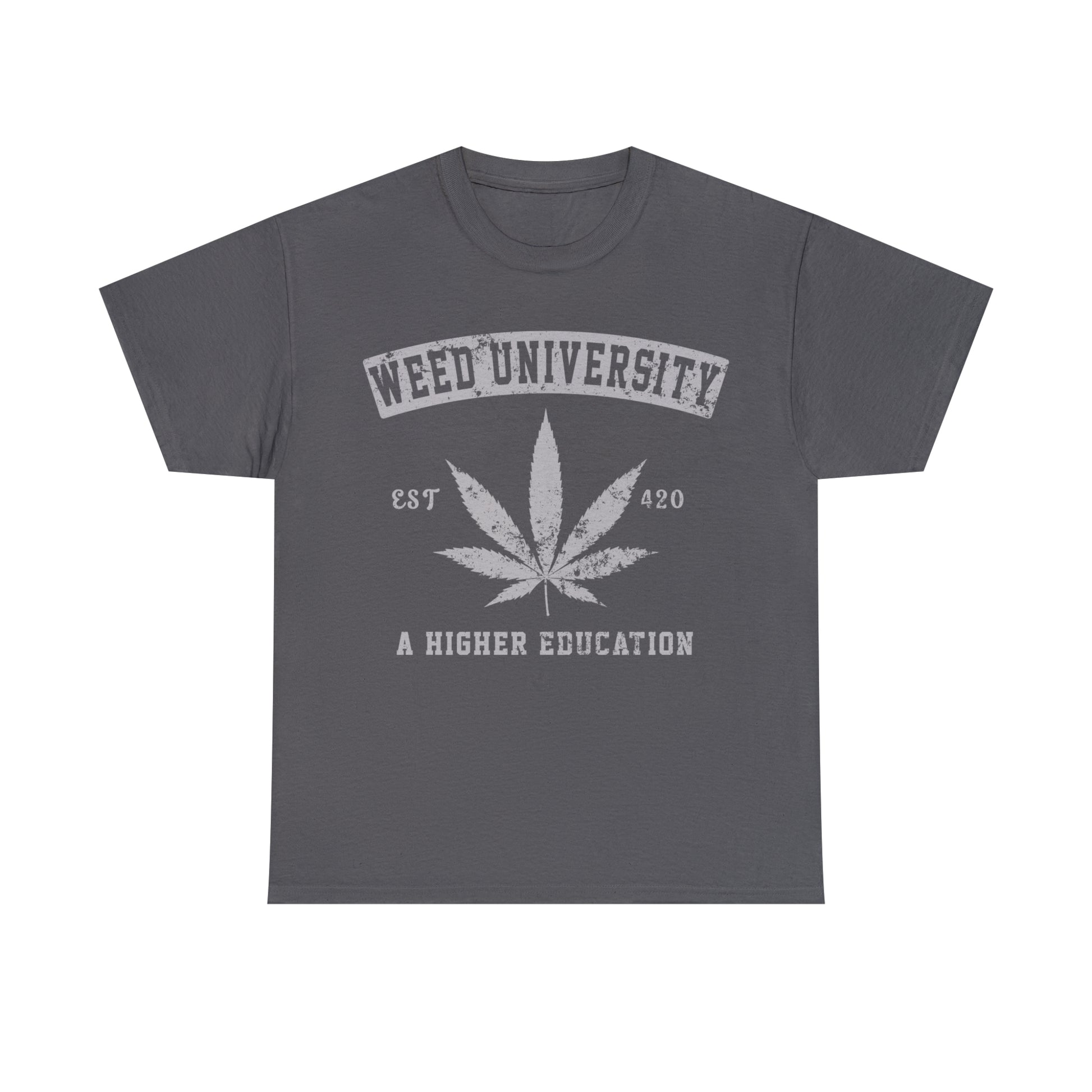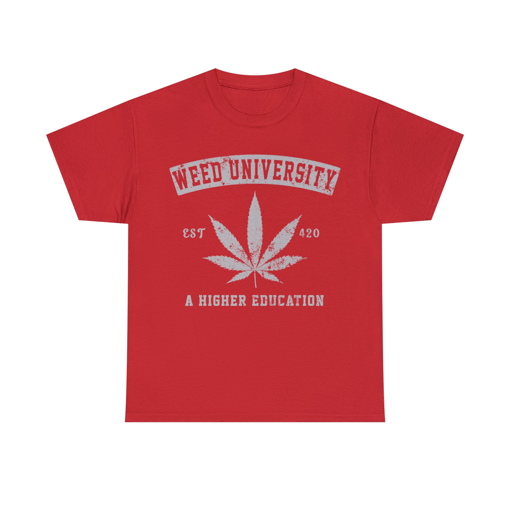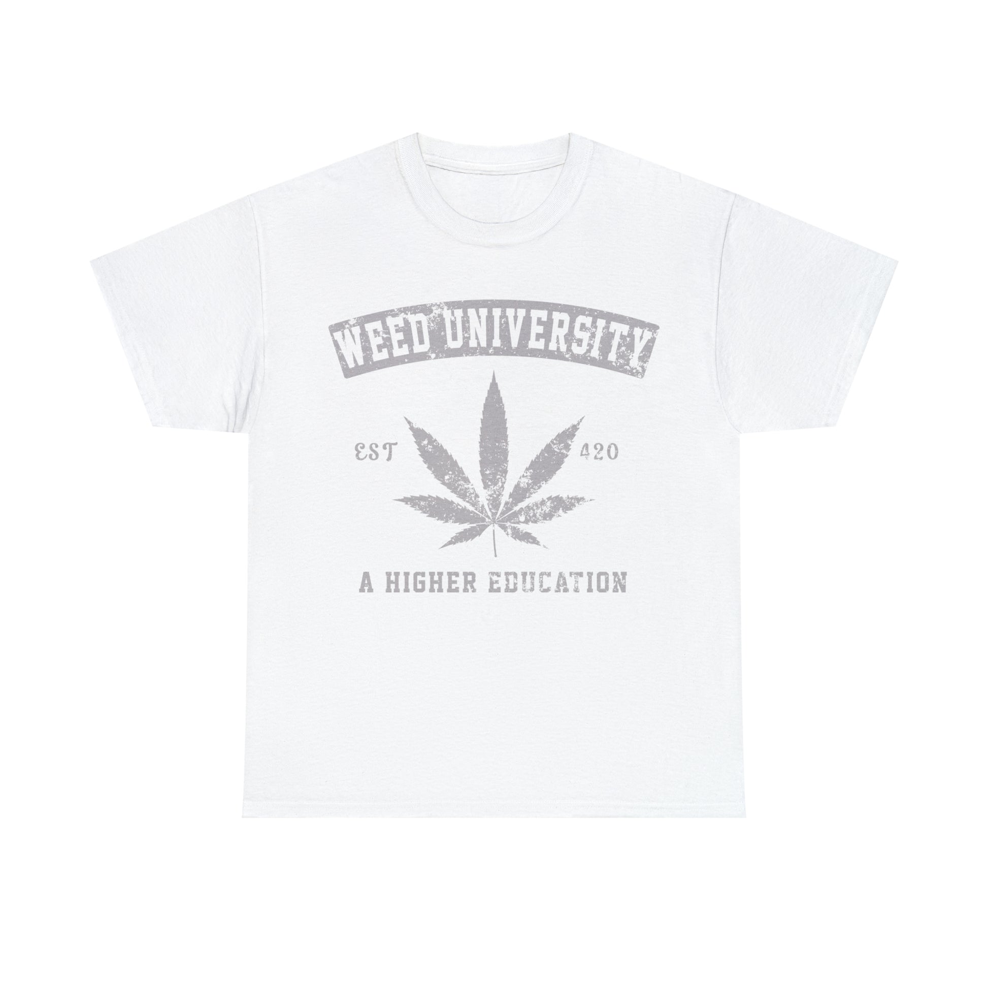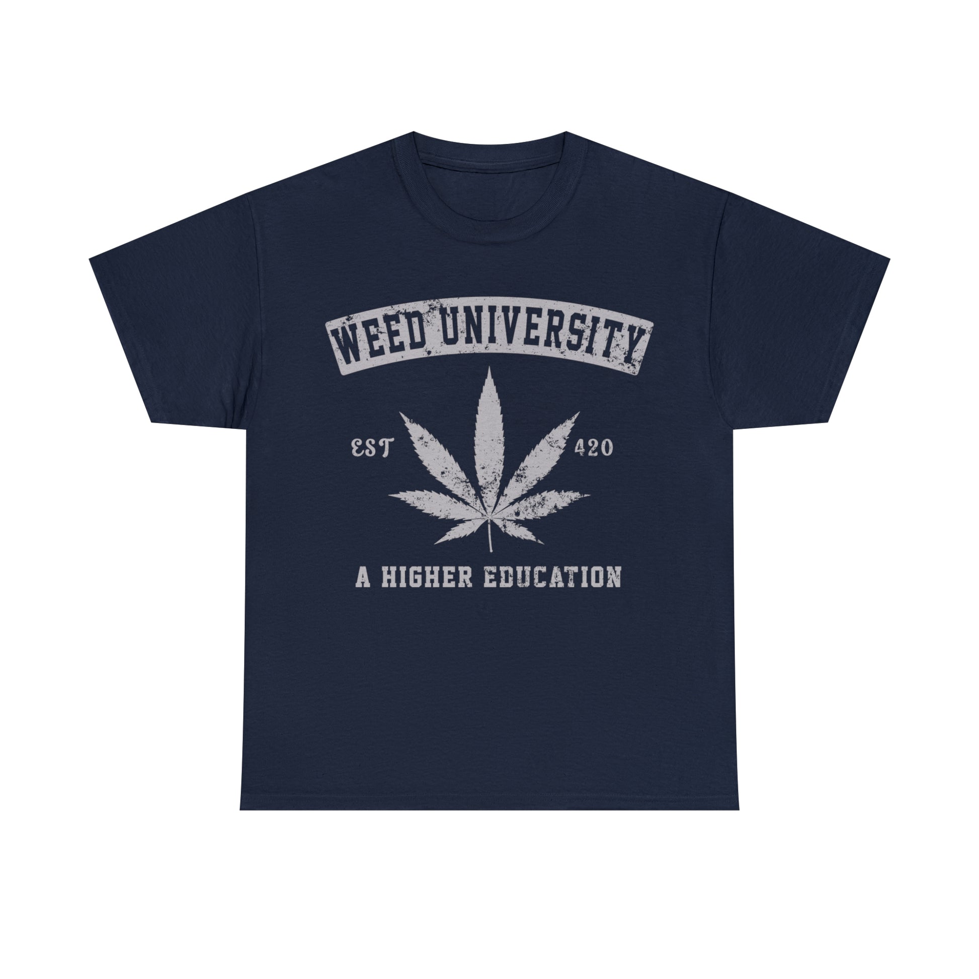At Weed University, we take 'higher' education to a whole new level! Don this hilarious tee, showcasing a scholarly cannabis leaf in cap and gown. Perfect for those who appreciate a good, green laugh!