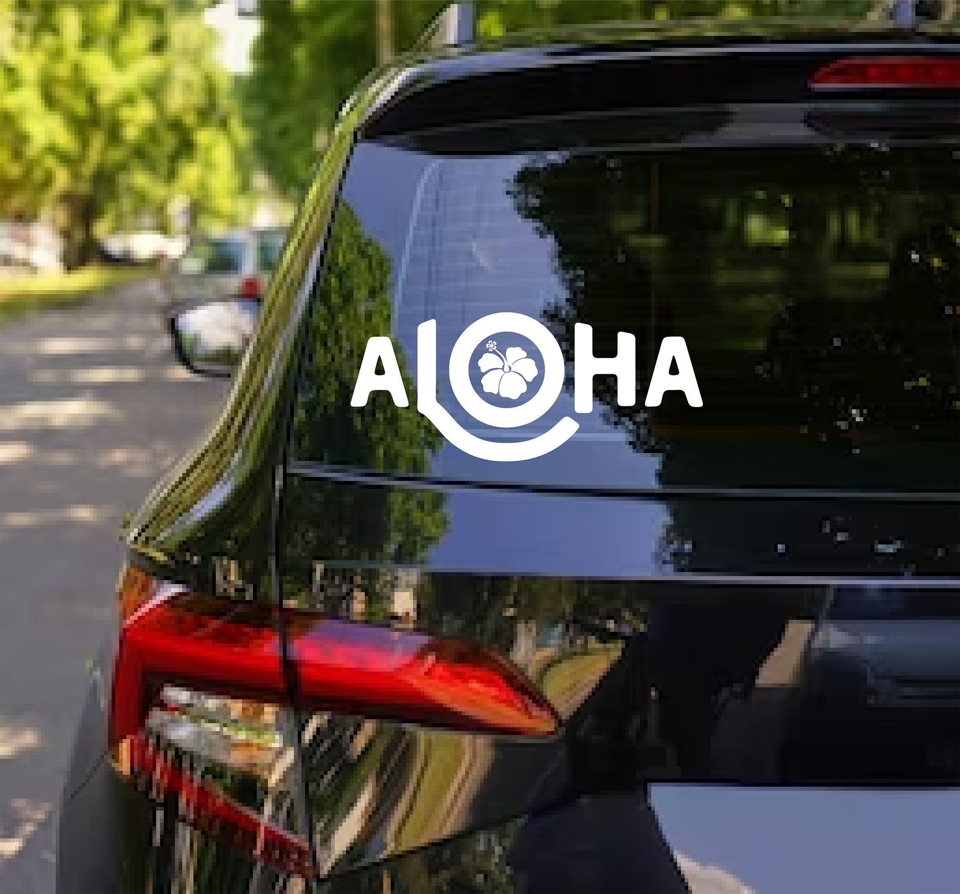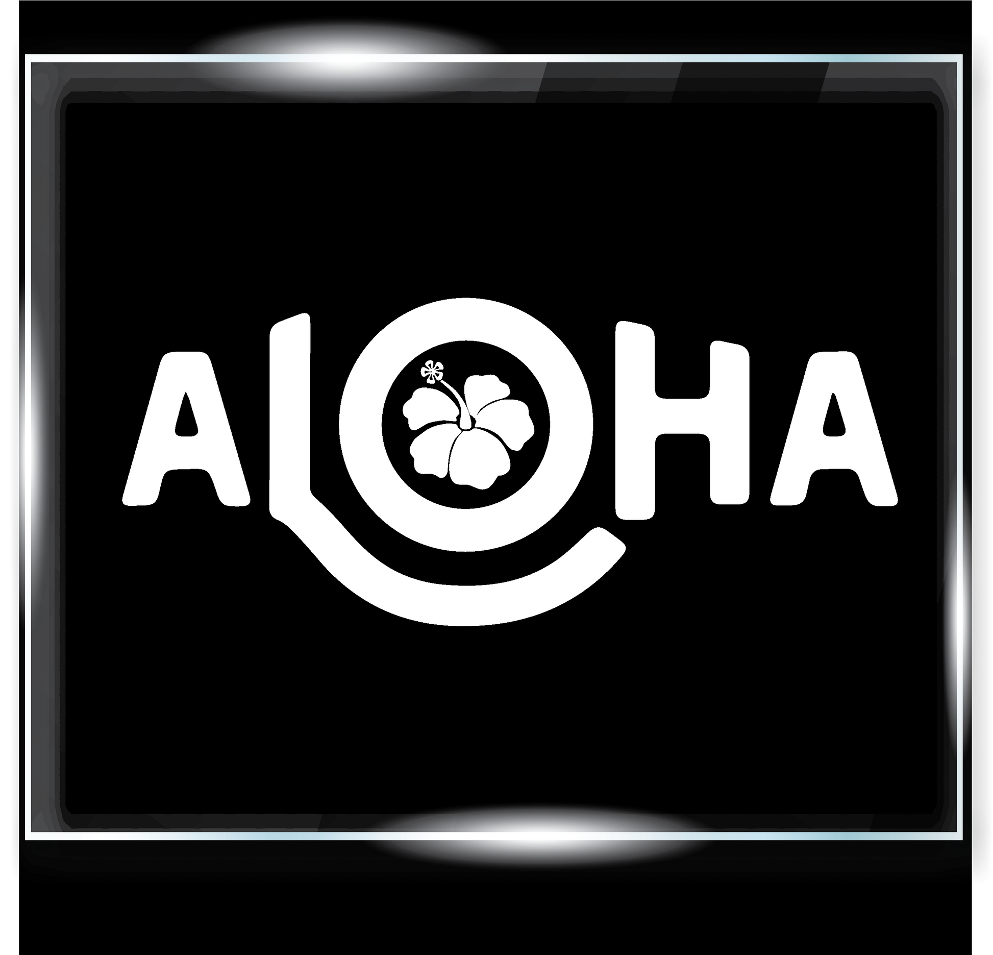Aloha with a long L and a Hibiscus Flower in the O Decal