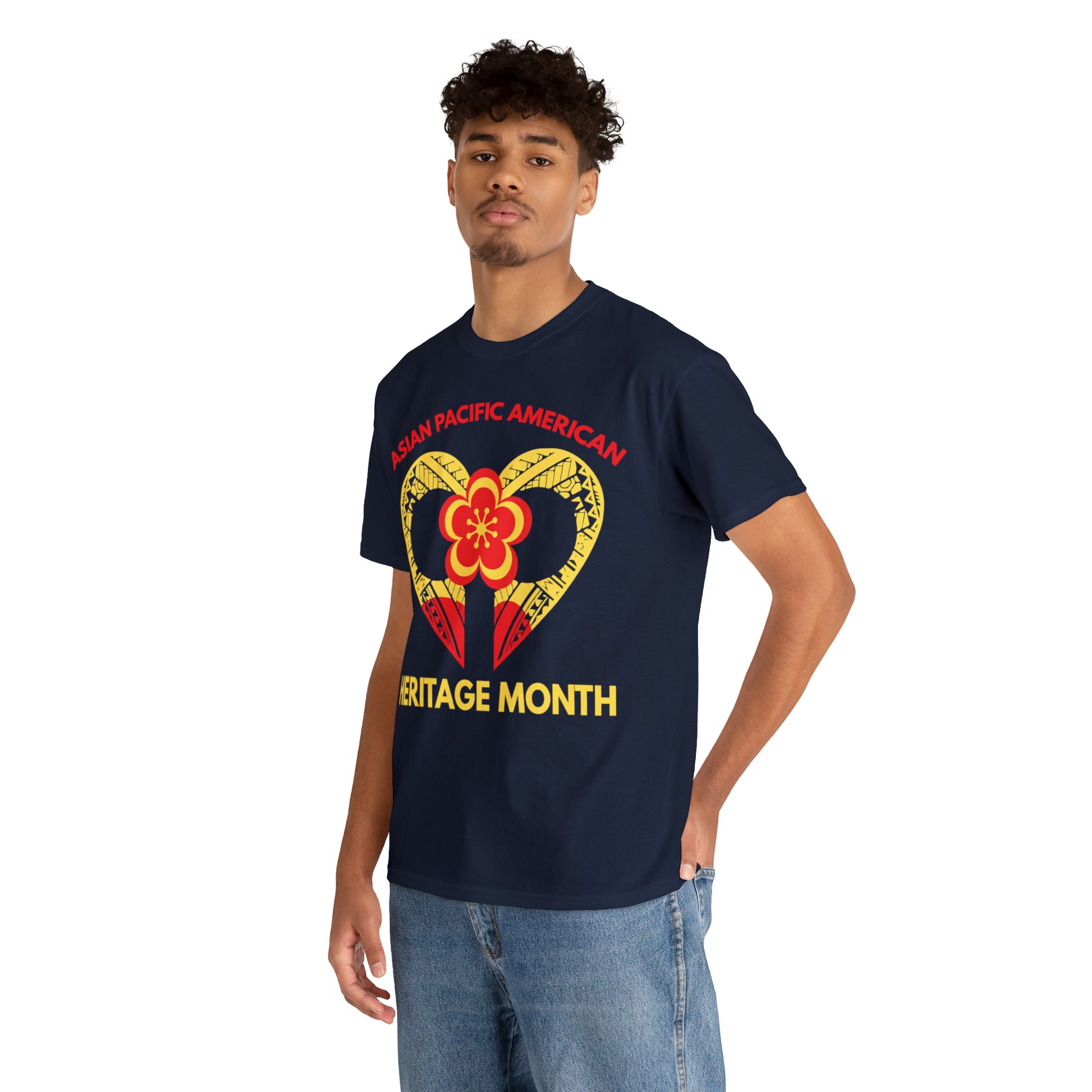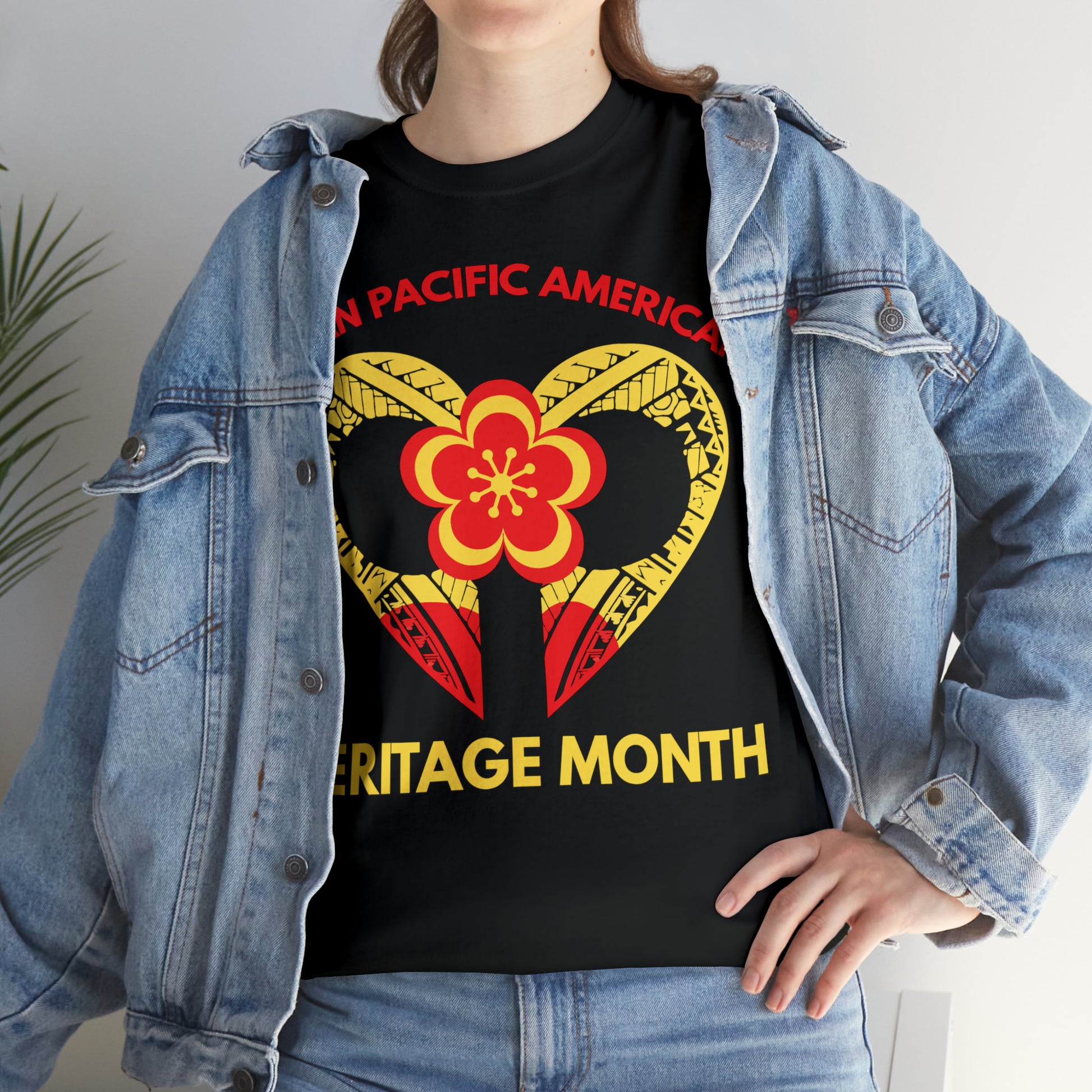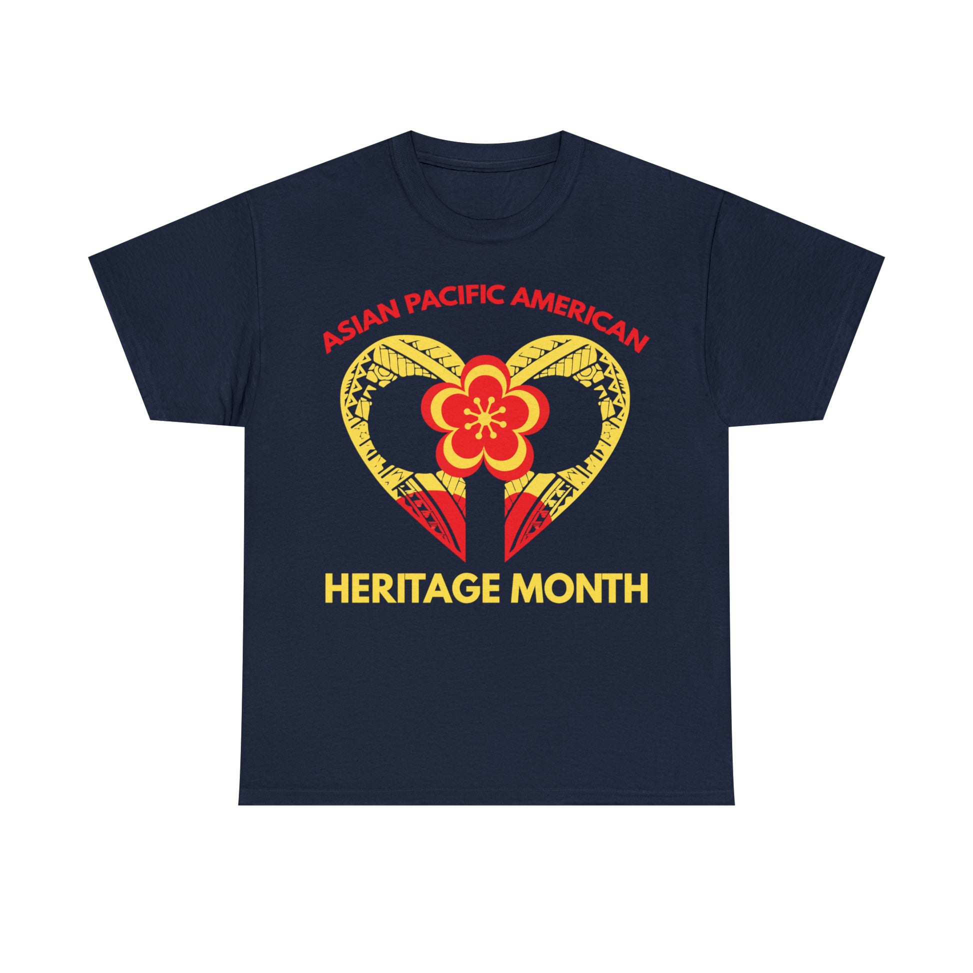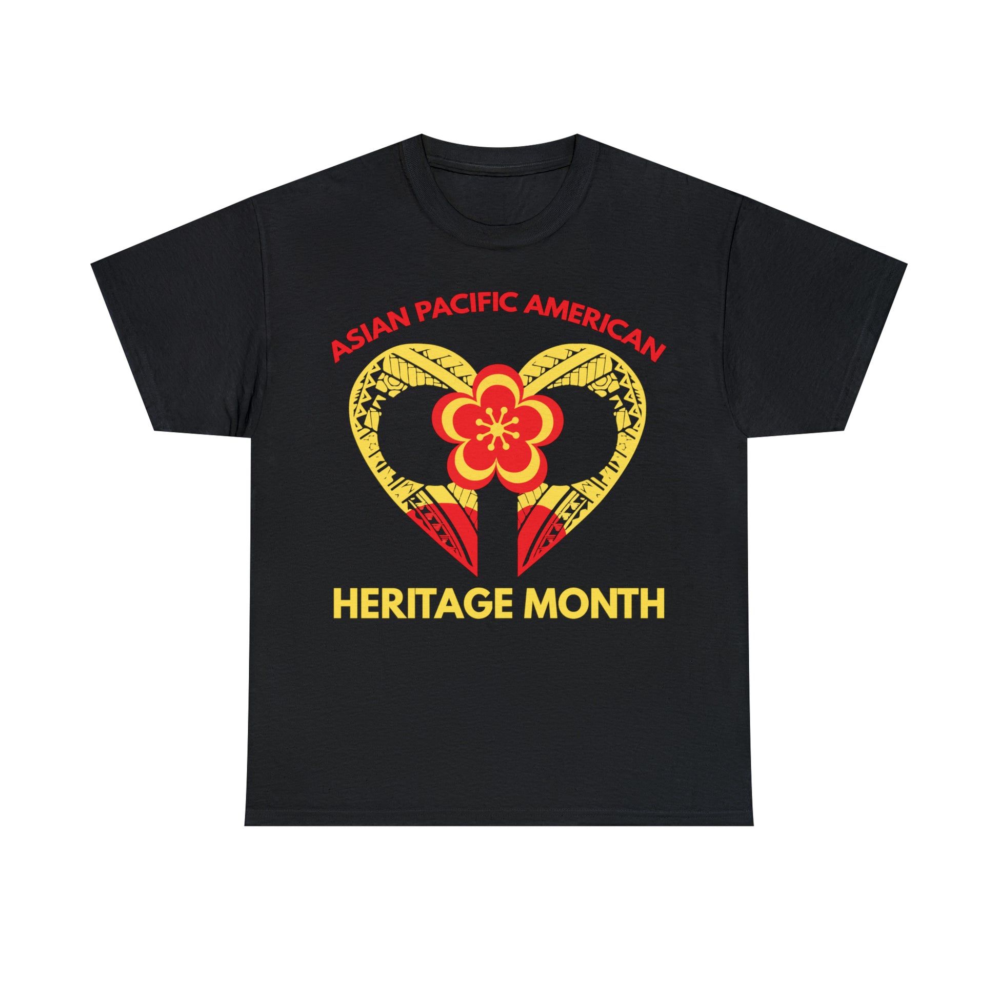 This Asian Pacific American Heritage month t-shirt beautifully blends tradition and modernity. A tribal heart intertwines with a delicate cherry blossom, symbolizing the fusion of cultural heritage and unity. The design's rich detail and symbolic motifs create a striking tribute to diversity and Asian Pacific American legacy.