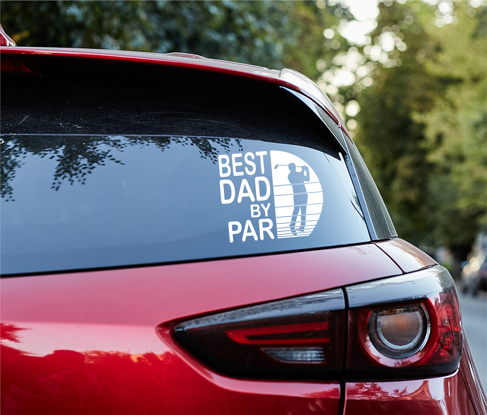 Showcasing love for both family and golf, this "Best Dad by Par" decal is a winning combination. It's a thoughtful nod to the golf-loving fathers and grandfathers who score top marks in their family's hearts. This comfortable, playful tee offers a hole-in-one blend of humor, sentiment, and style.