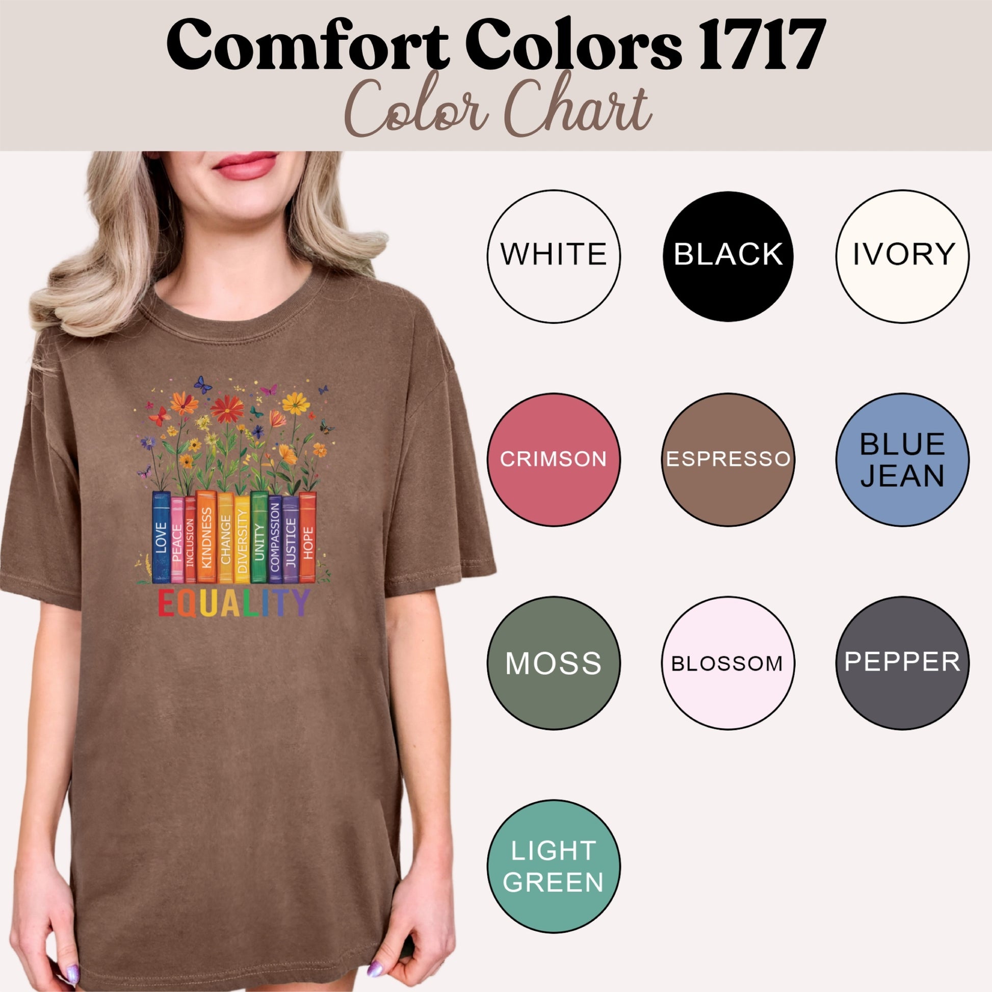 Equality T-Shirt Books & Flowers | Diversity, Inclusion, Kindness, Unity, Pride Shirt for Teachers, Librarians, Activists