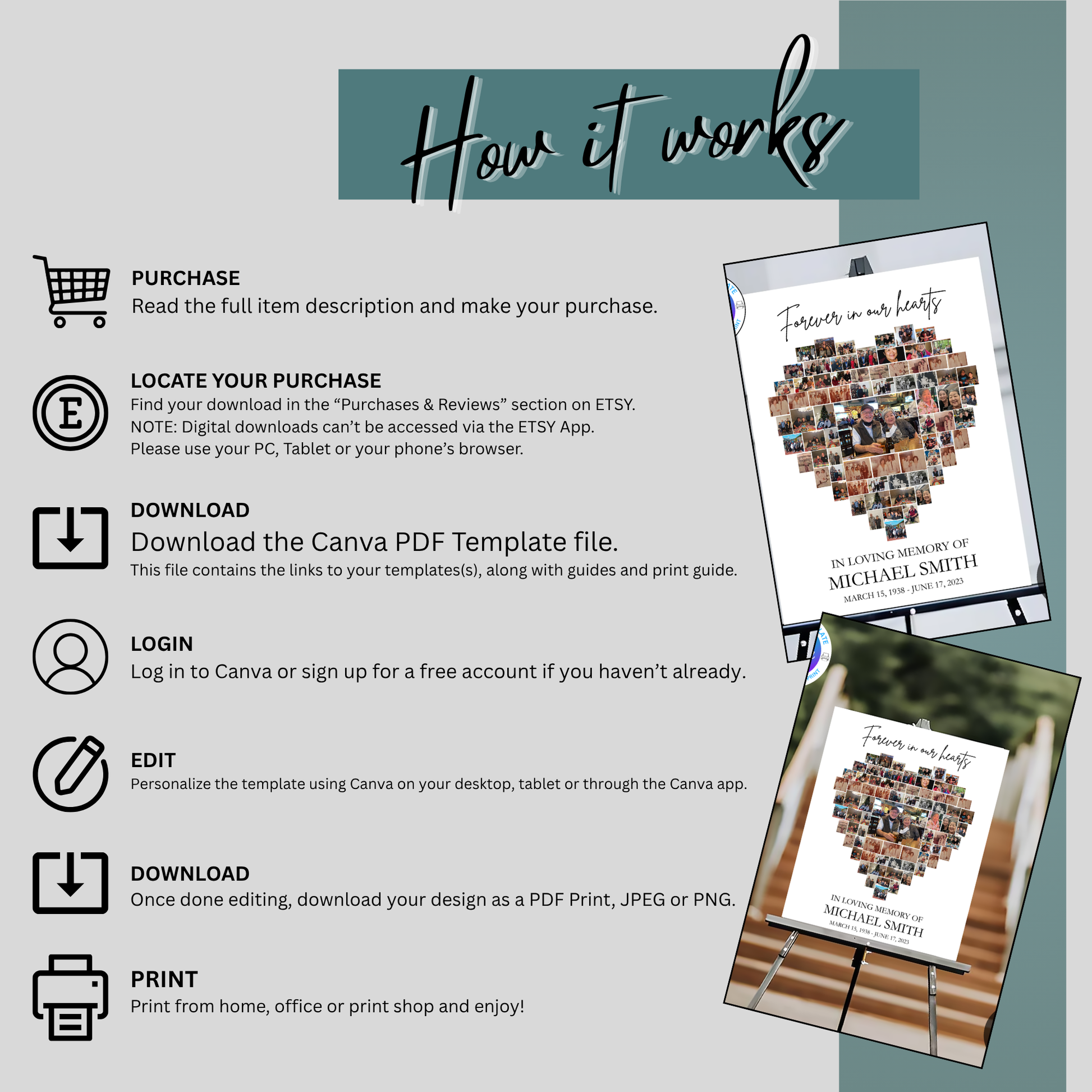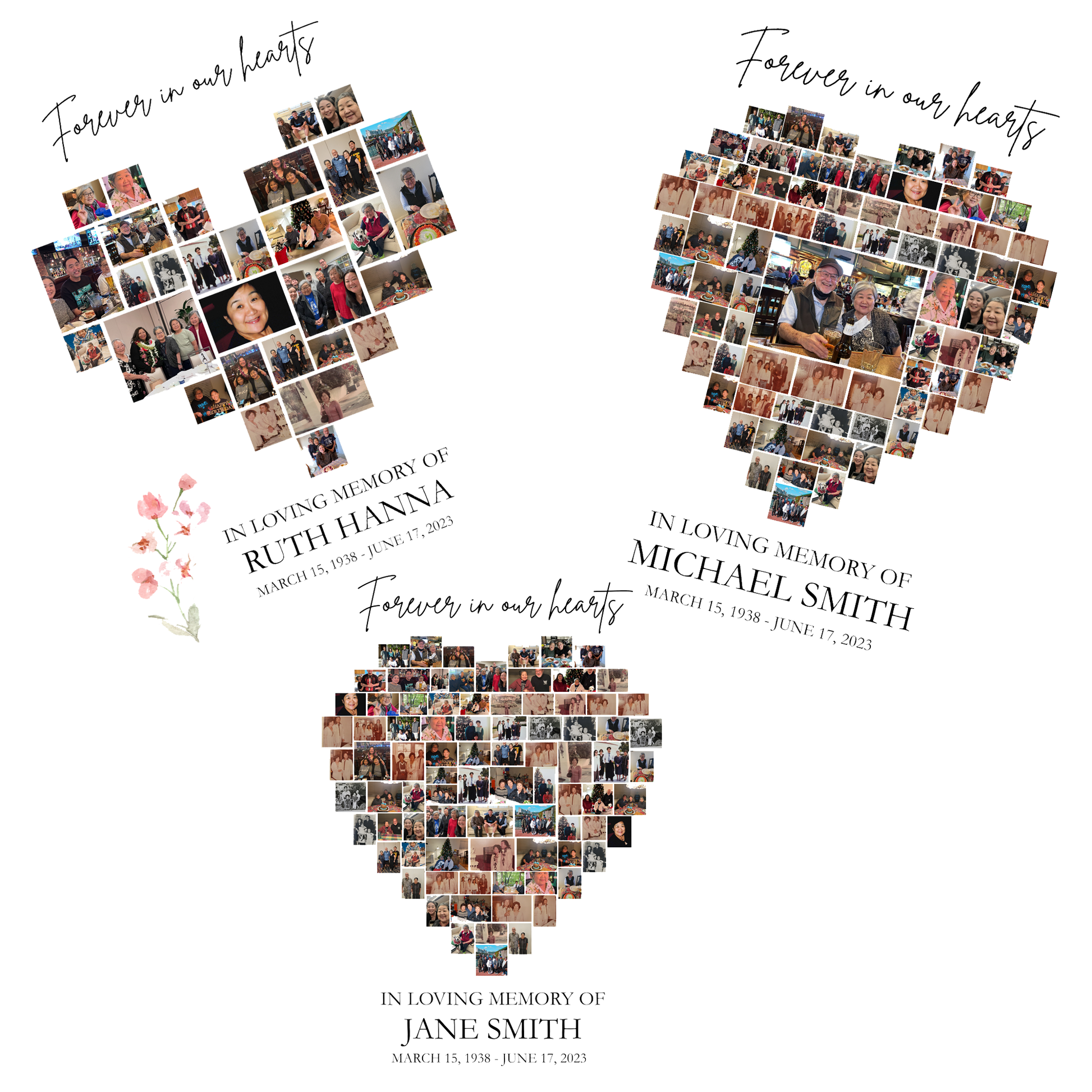Various Funeral Photo Collage Templates | Heart Shape | Canva Editable Memorial Board | Digital Download | Celebration of Life Poster