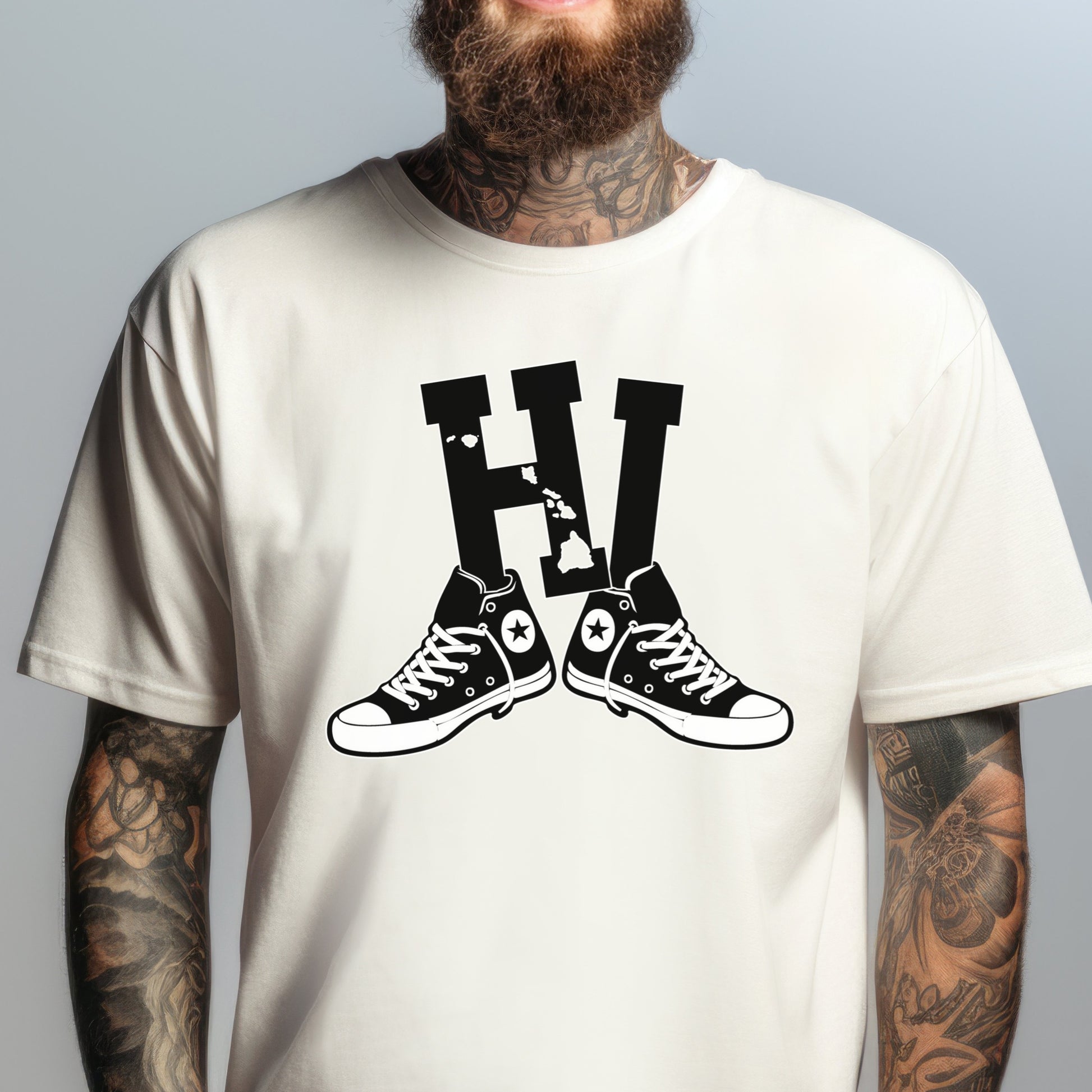 Hawaii HI Sneakers T-Shirt | Retro Hawaii State Design with High Tops, Vintage Streetwear Island Style Tee