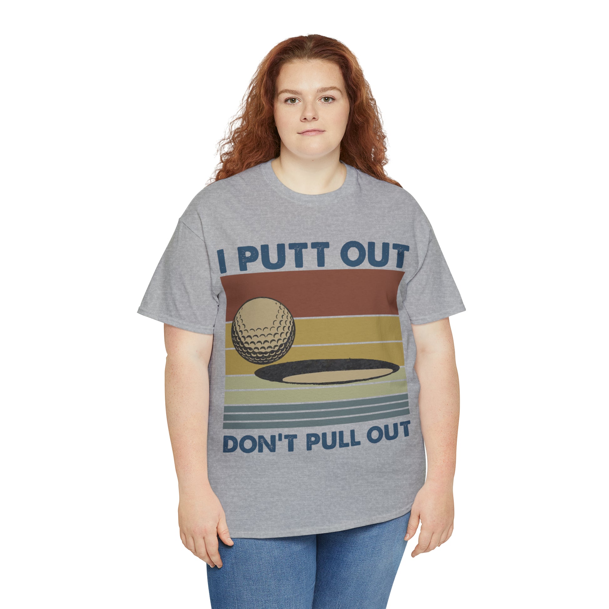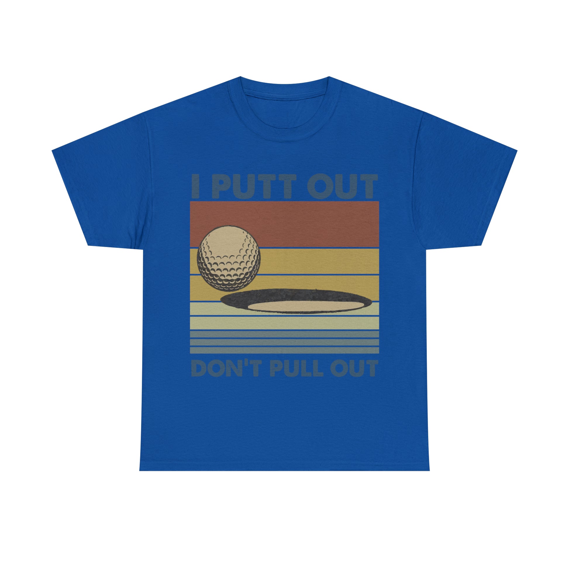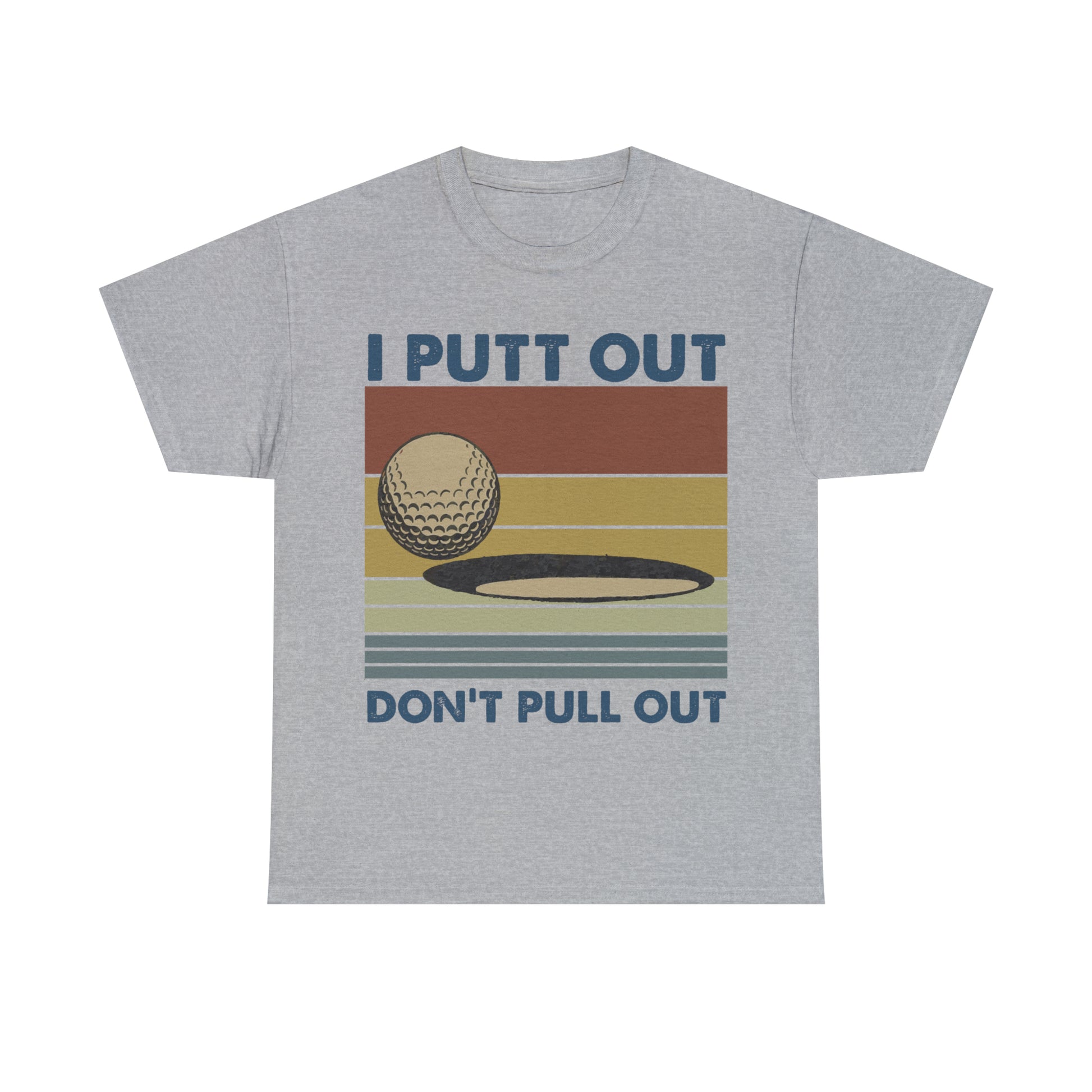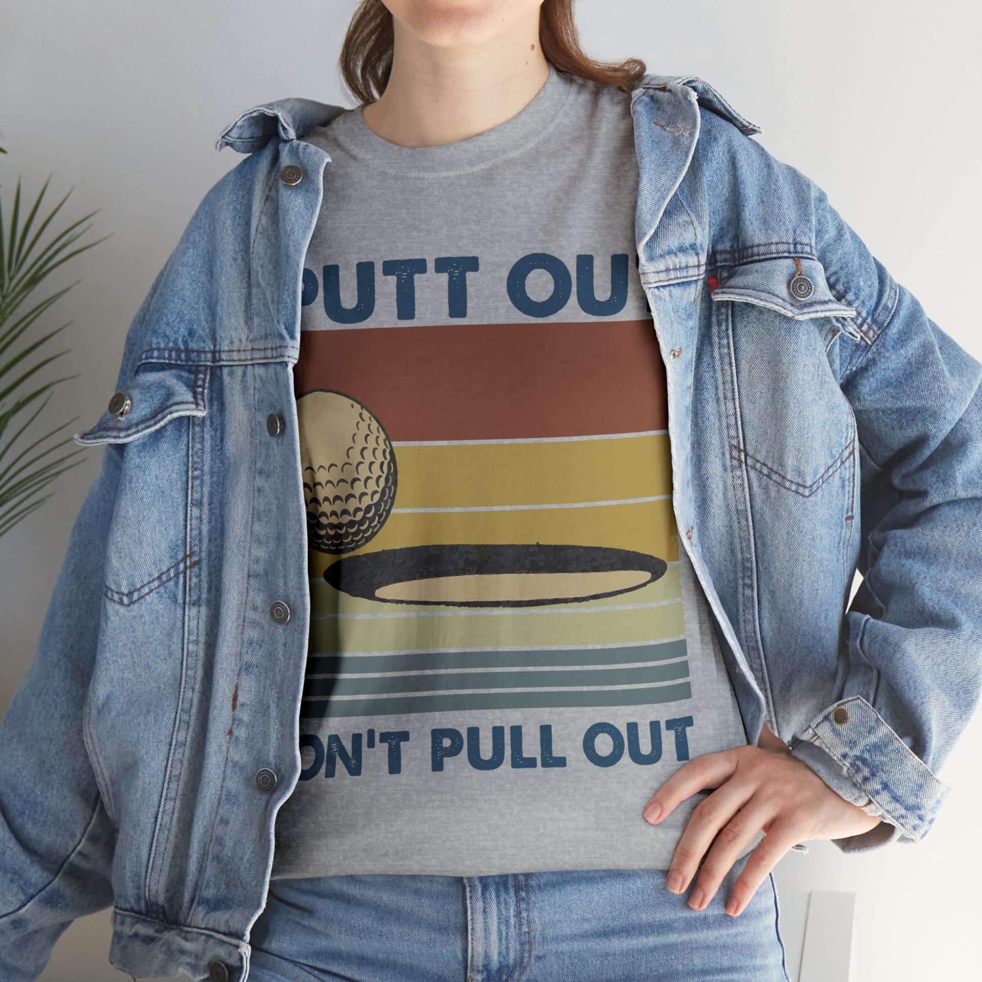 This "I Putt Out, Don't Pull Out" vintage-style t-shirt is a whimsical spin on golf humor. Its cheeky double entendre design captures a golf enthusiast's commitment to both the sport and their playful side. Made for golfers who love to laugh, it's a comfortable tee that speaks volumes about your fun-loving spirit.
