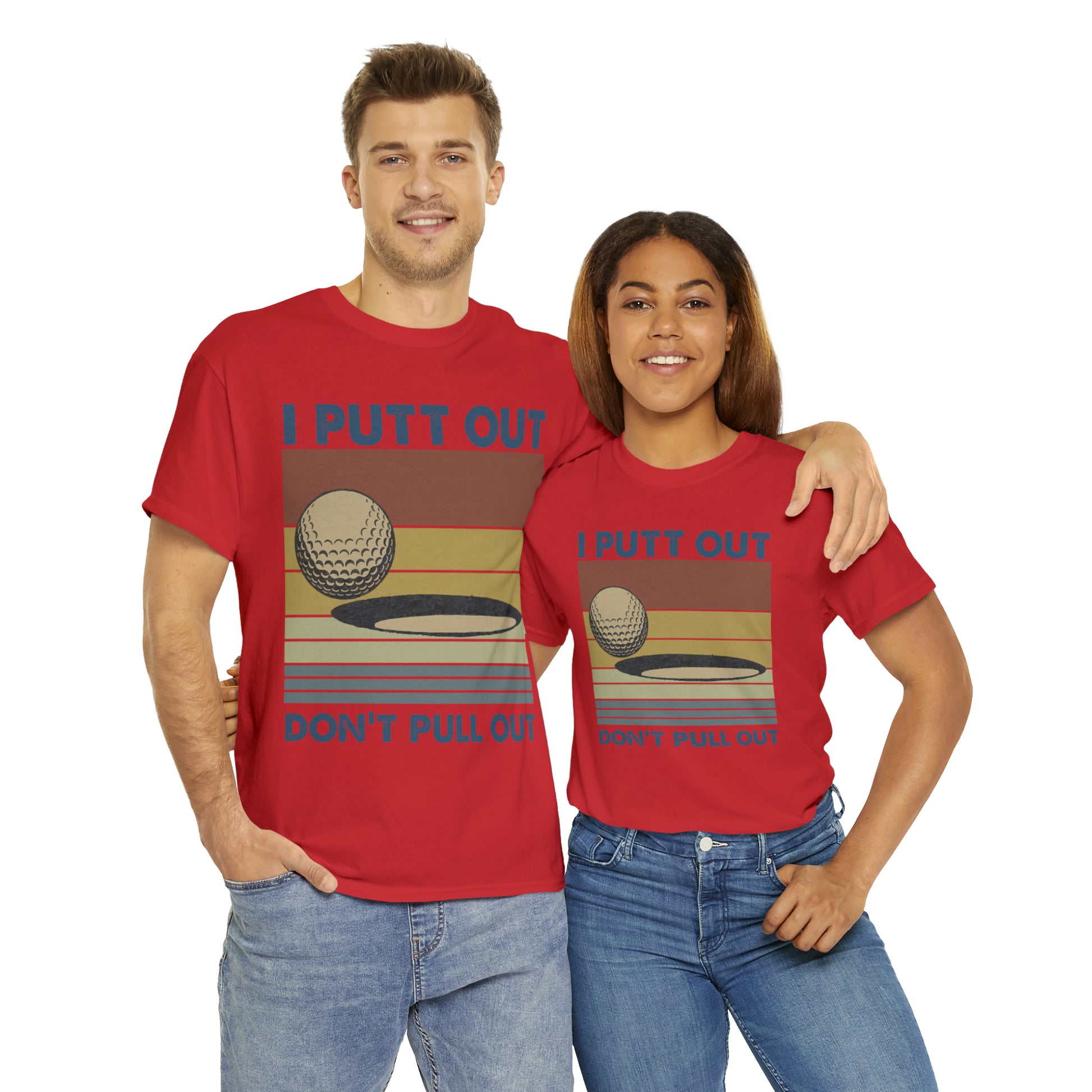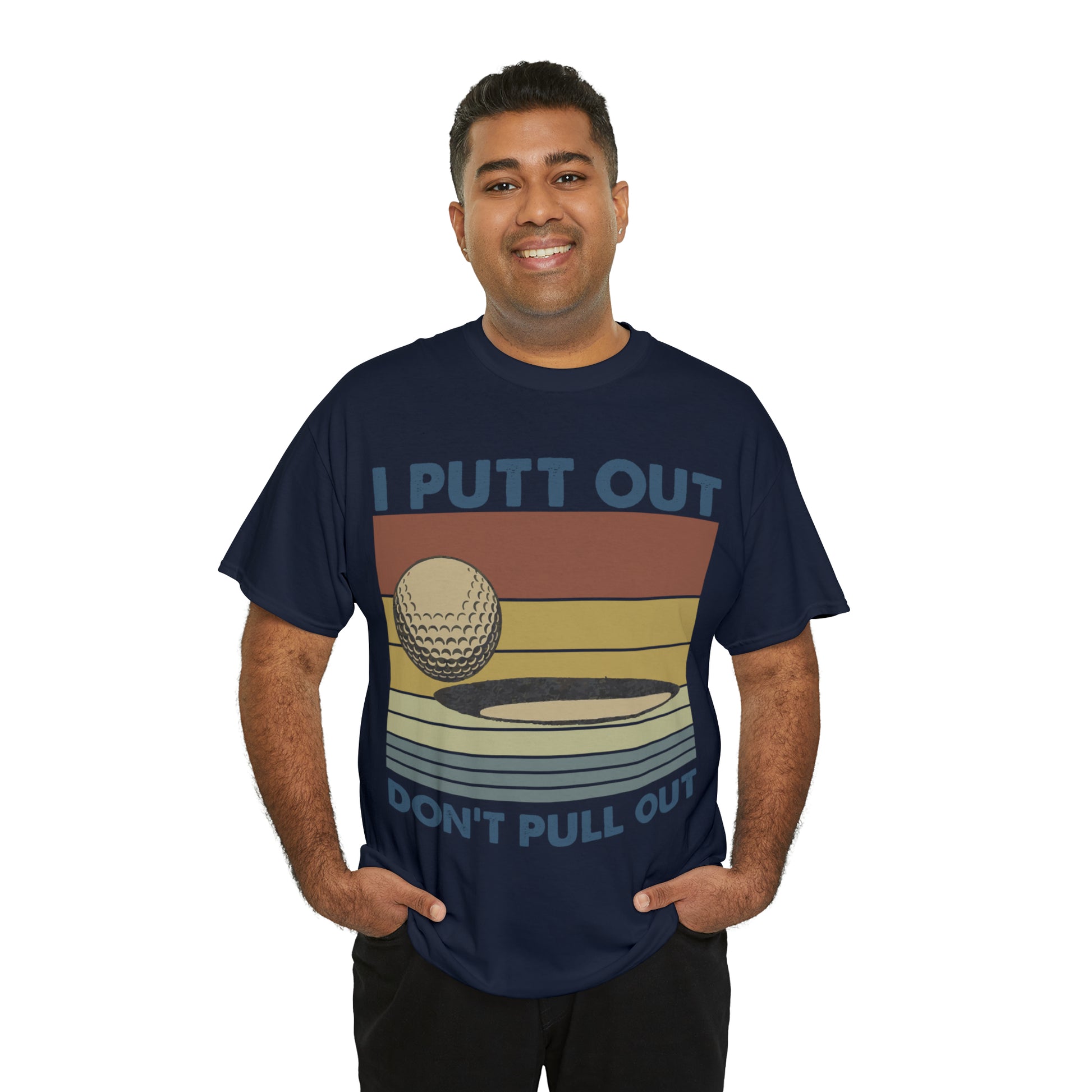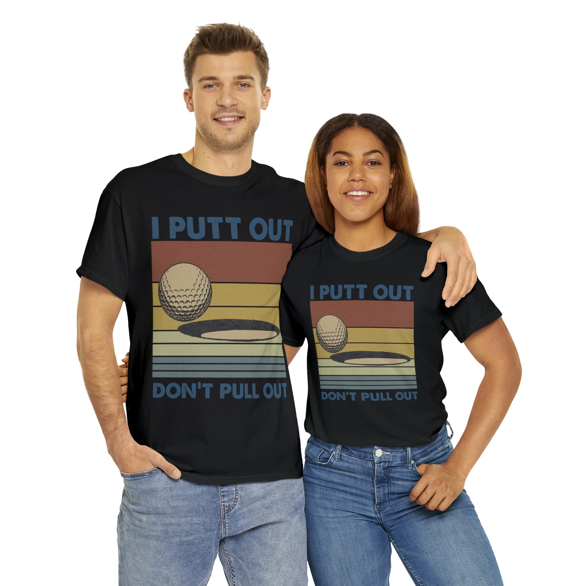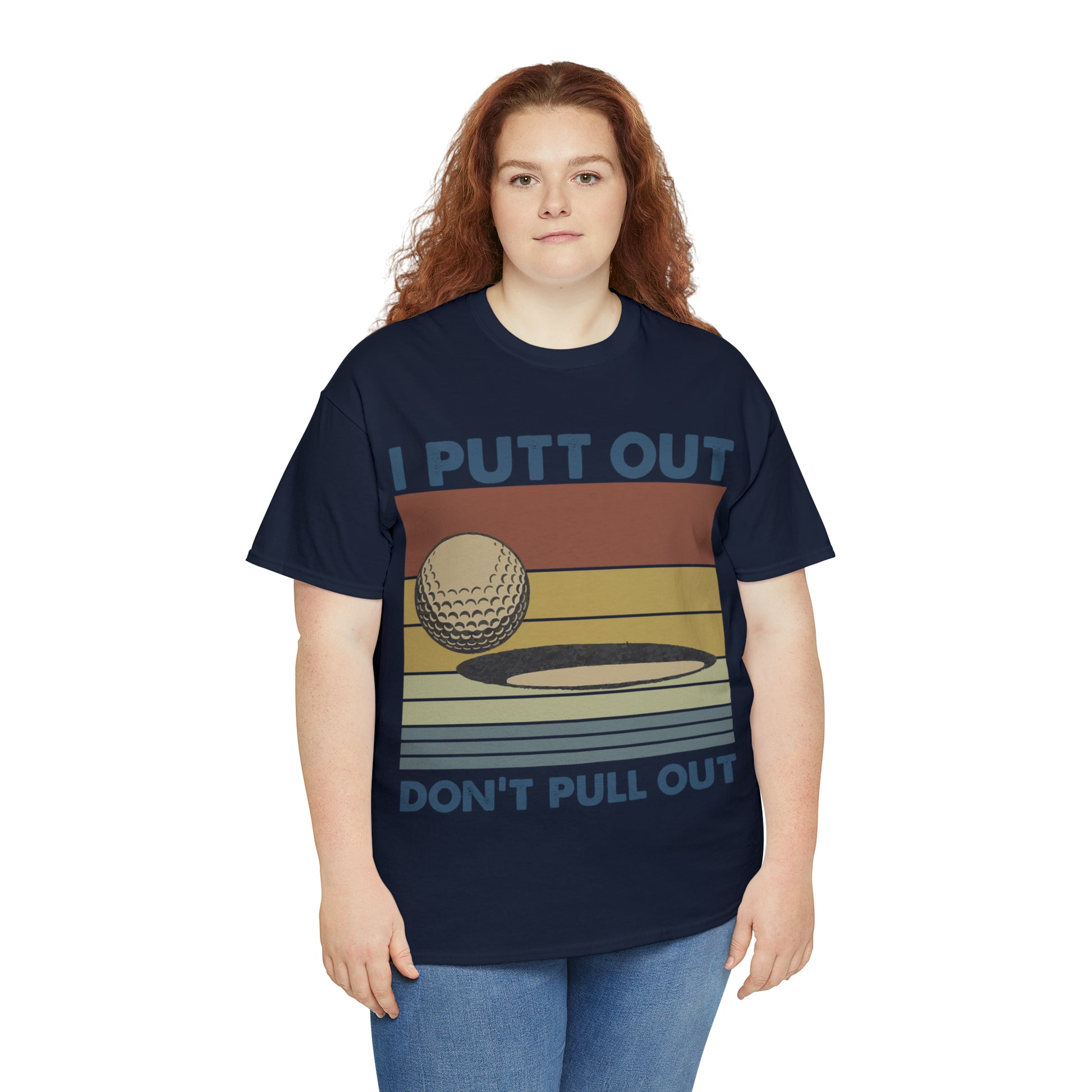 This "I Putt Out, Don't Pull Out" vintage-style t-shirt is a whimsical spin on golf humor. Its cheeky double entendre design captures a golf enthusiast's commitment to both the sport and their playful side. Made for golfers who love to laugh, it's a comfortable tee that speaks volumes about your fun-loving spirit.