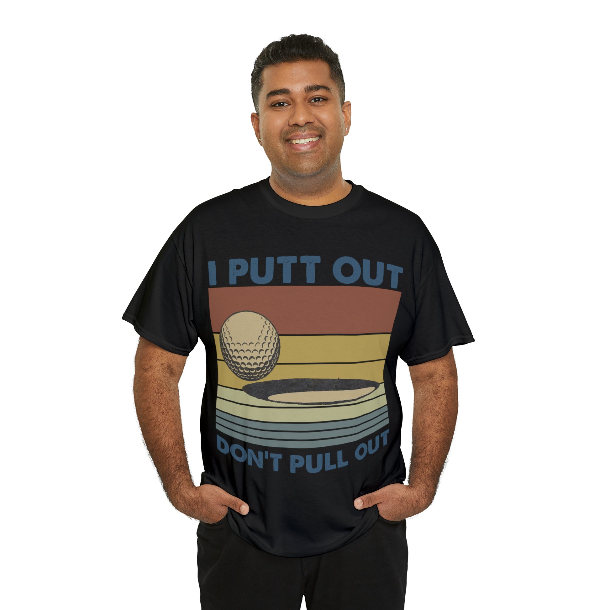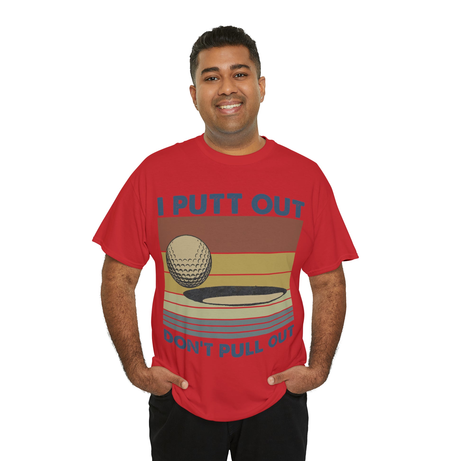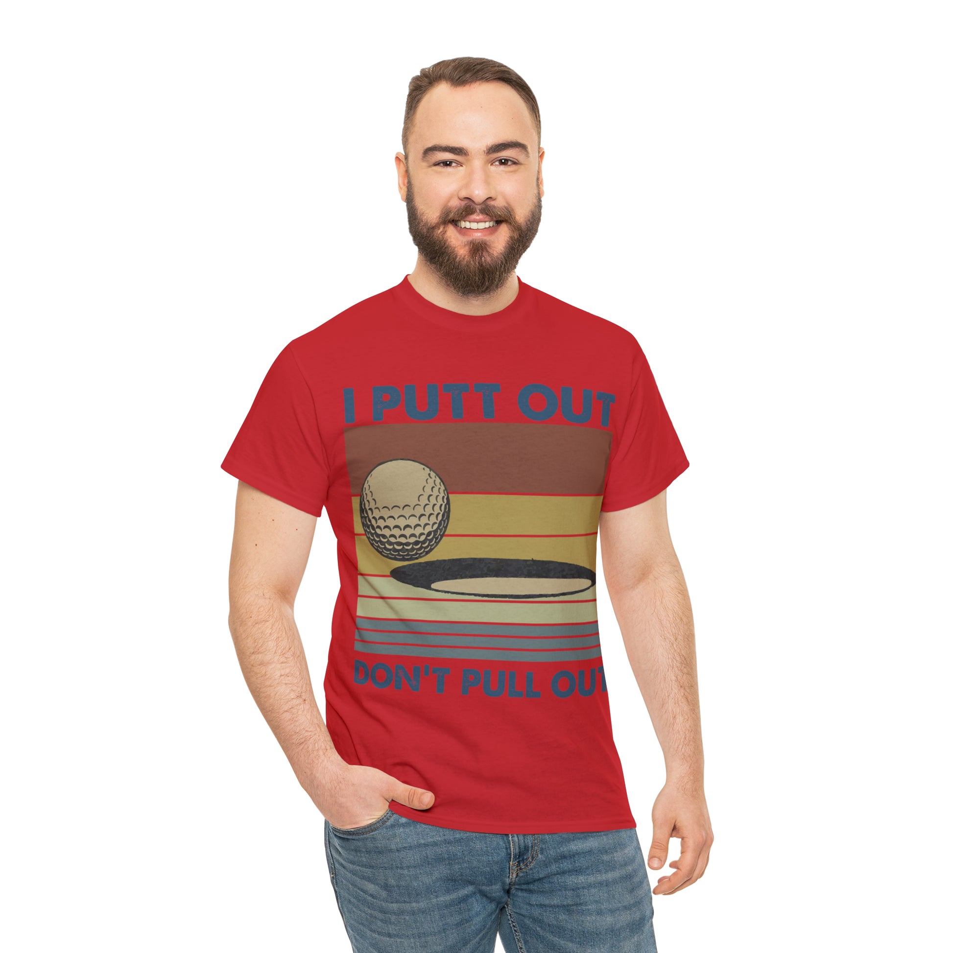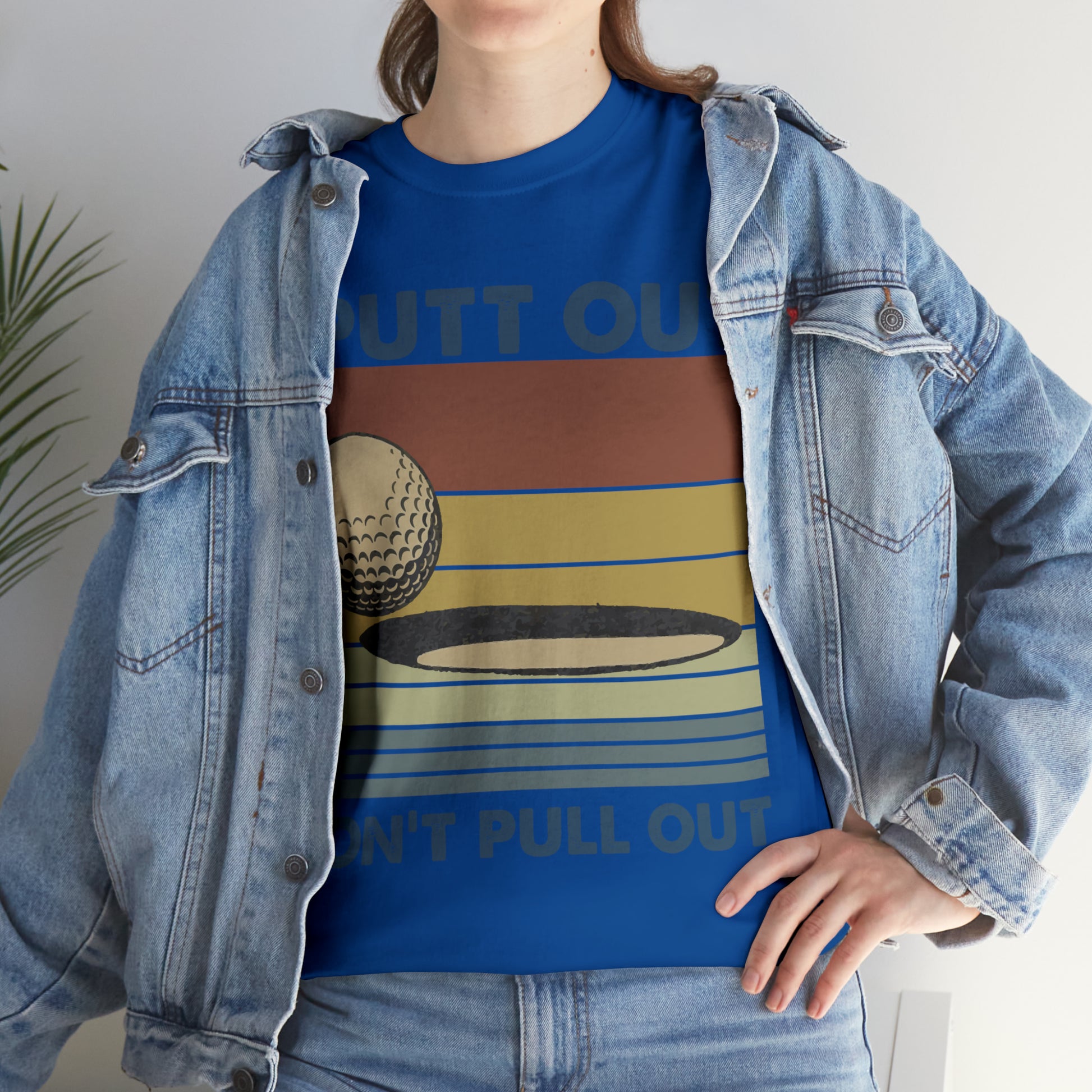 This "I Putt Out, Don't Pull Out" vintage-style t-shirt is a whimsical spin on golf humor. Its cheeky double entendre design captures a golf enthusiast's commitment to both the sport and their playful side. Made for golfers who love to laugh, it's a comfortable tee that speaks volumes about your fun-loving spirit.