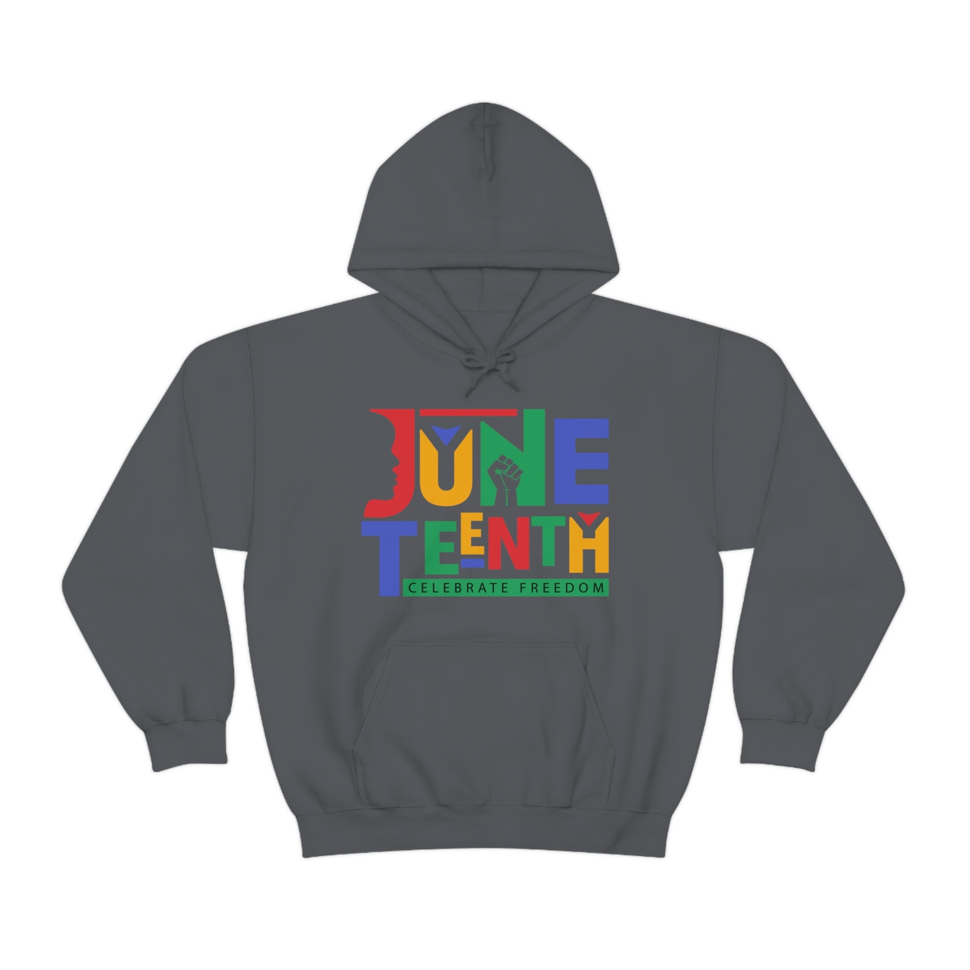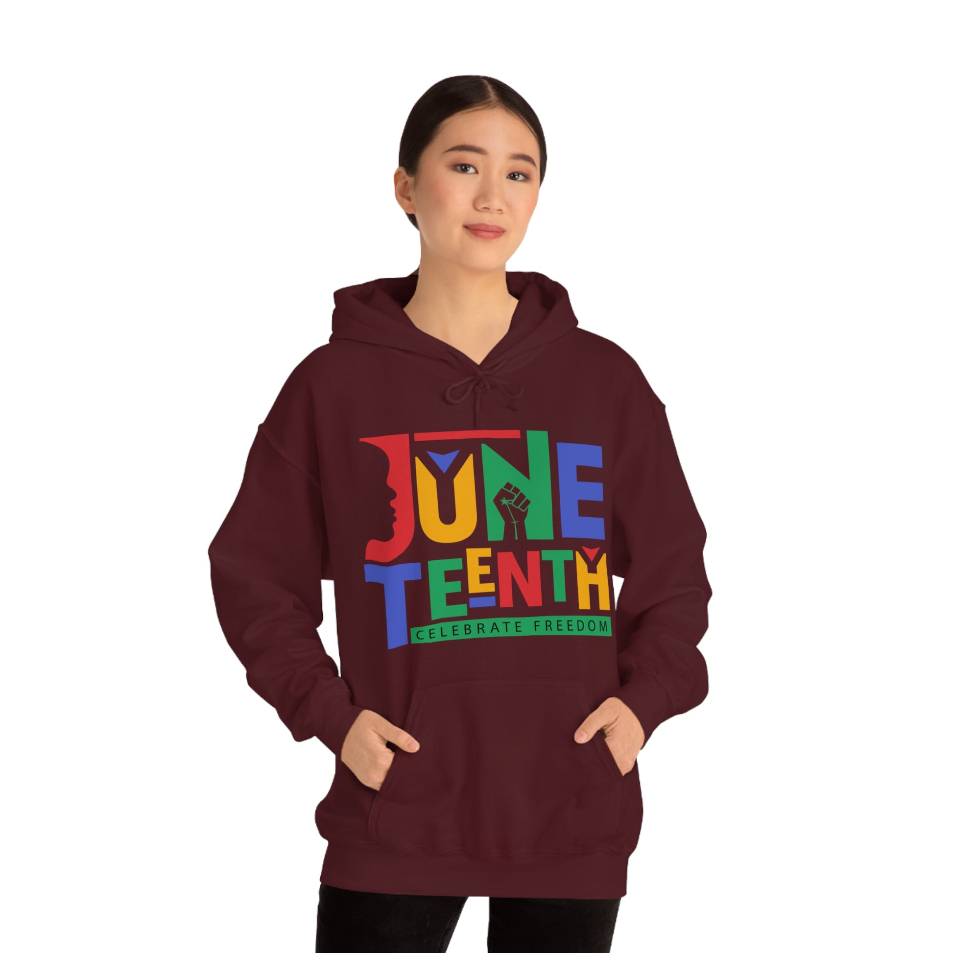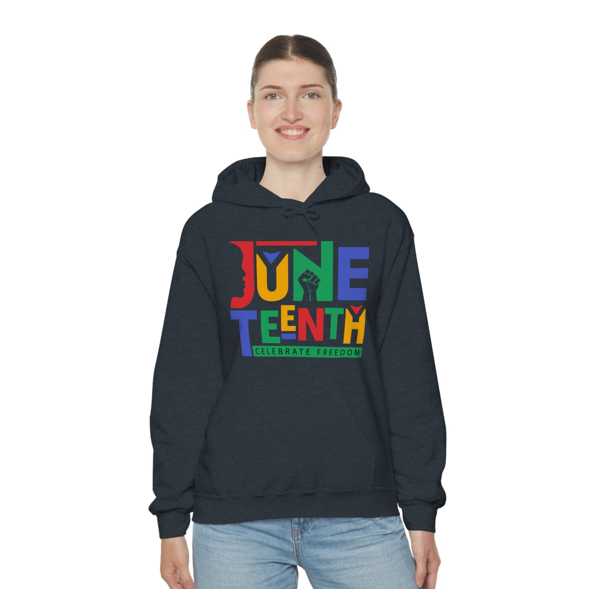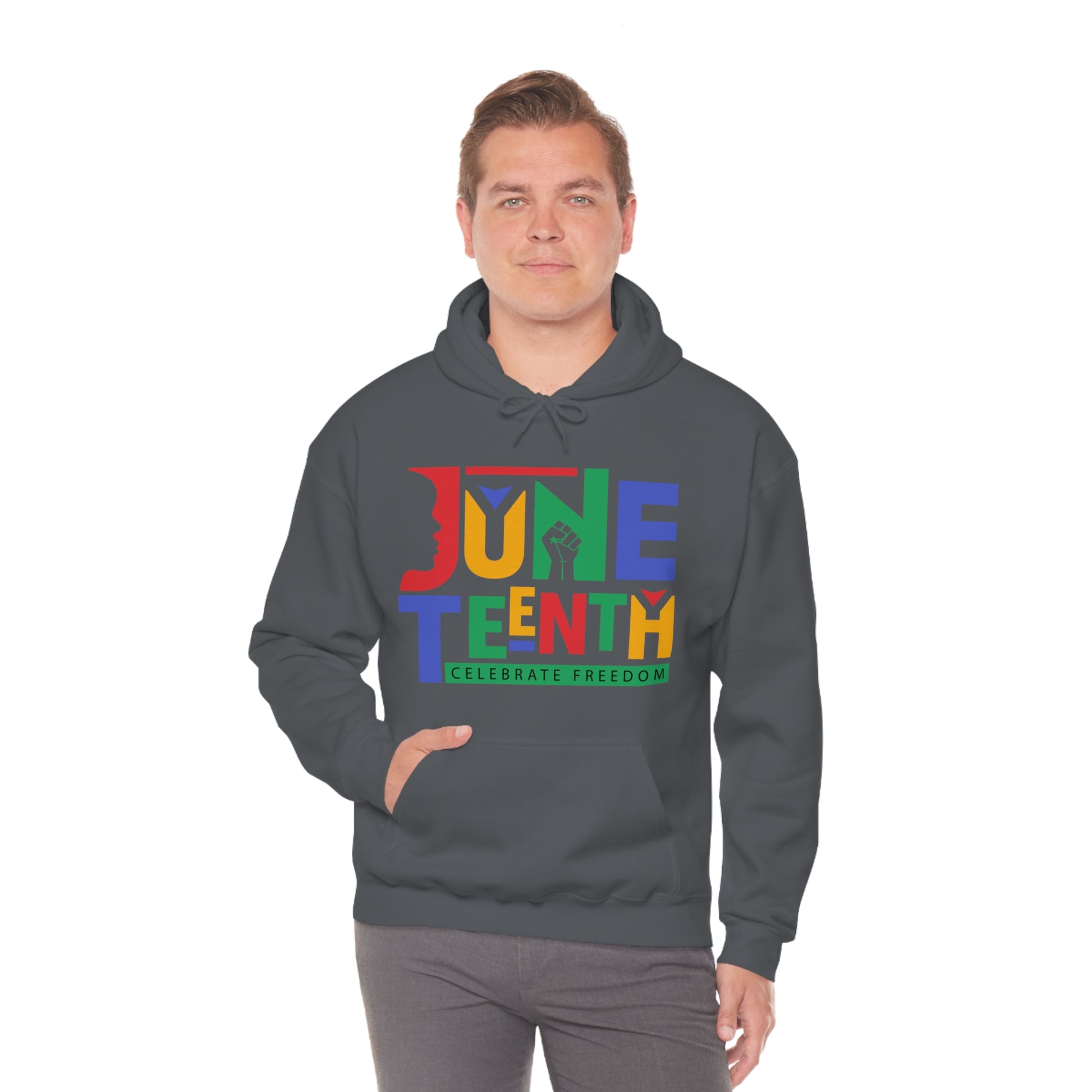 Exuding radiant vivacity, this Juneteenth hoodie is a joyous celebration of freedom. Splashed with vibrant colors, the design symbolizes the jubilant spirit of emancipation. The shirt's compelling visual appeal underscores its deep historic significance, making it not only a fashion statement but a testament to enduring resilience and liberty.
