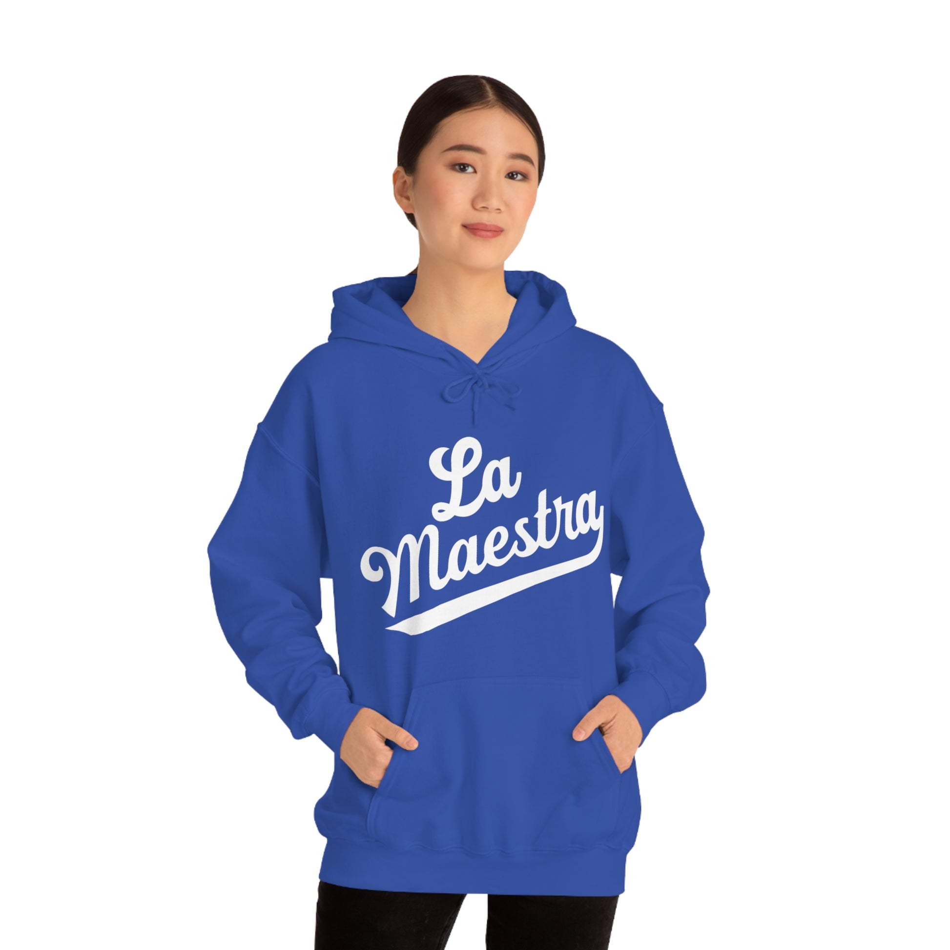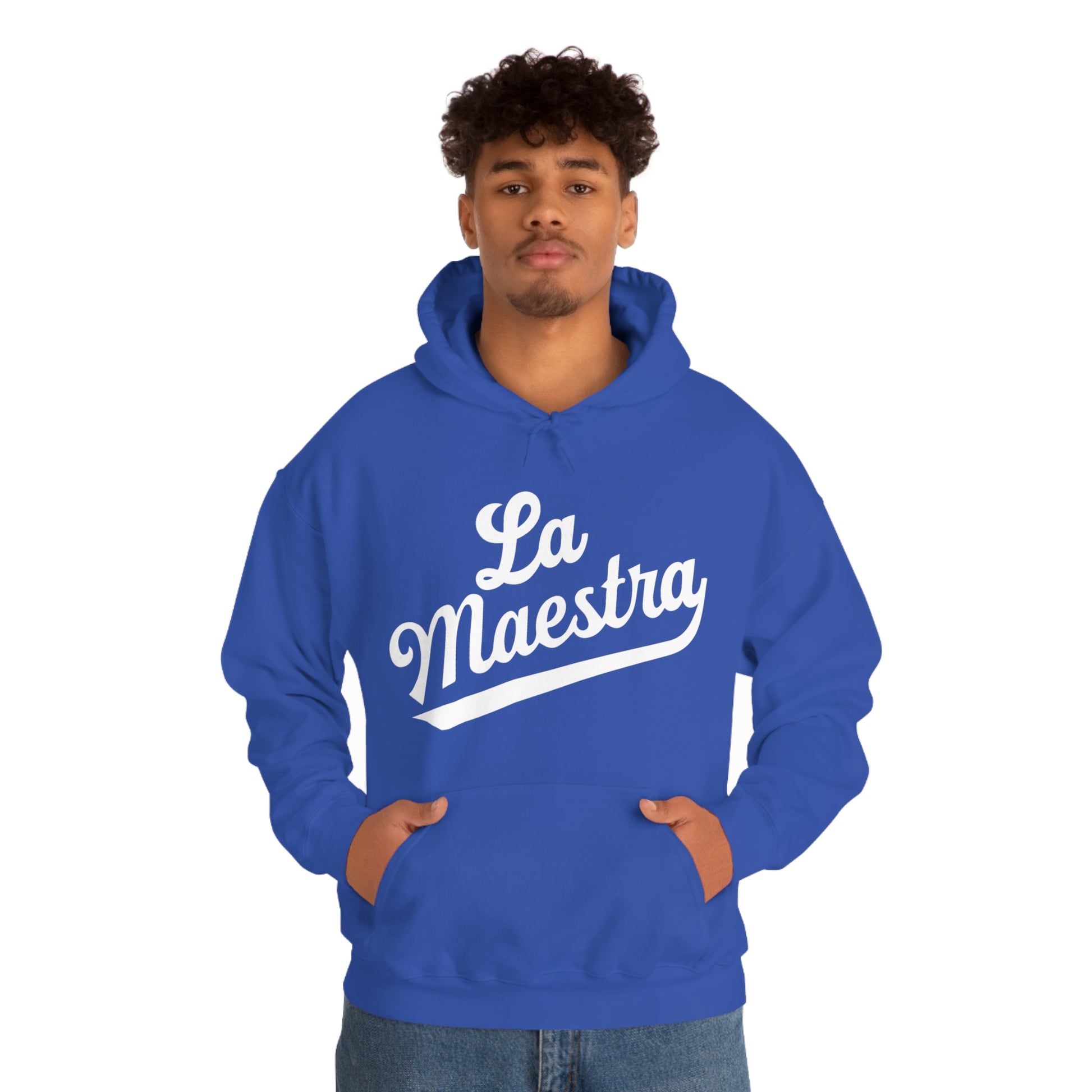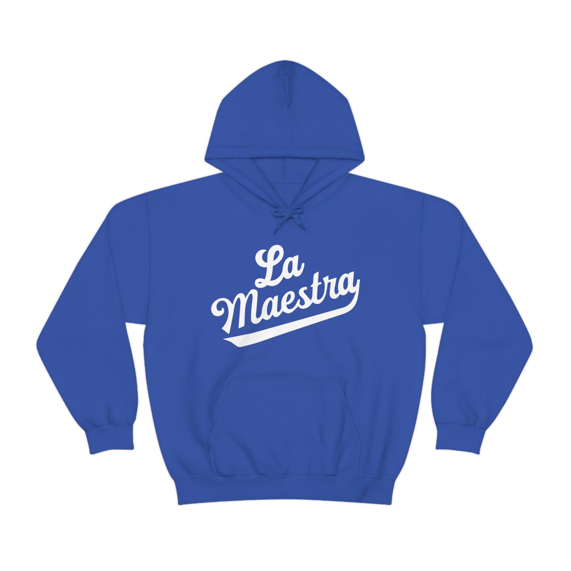 This La Maestro, "The Teacher" hoodie channels the iconic Los Angeles Dodgers aesthetic with a unique twist. It integrates the distinctive Dodger blue with the bold script, intertwining baseball passion and personal style. Perfect for the ultimate fan, it captures the spirit of the game and the city's dynamic energy.