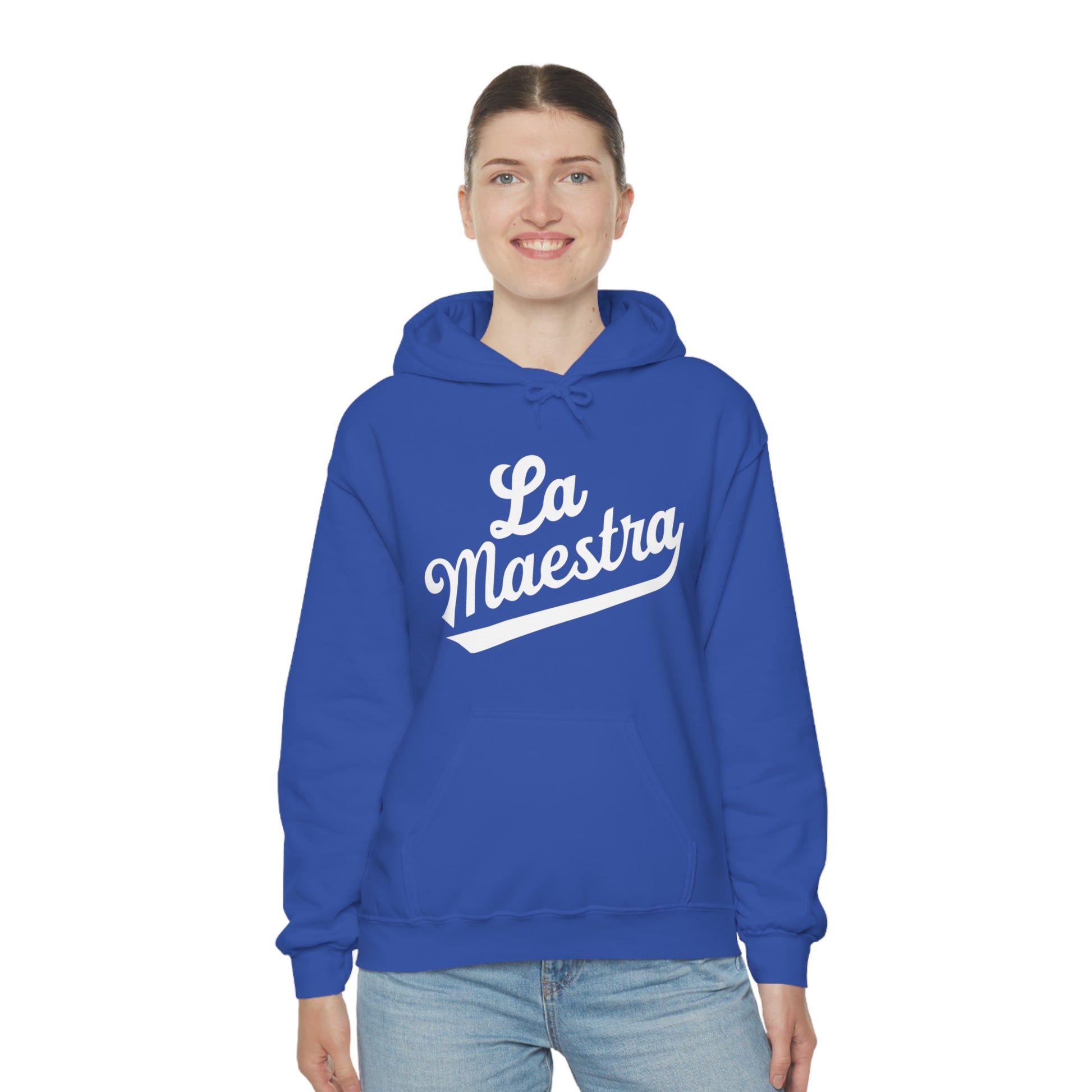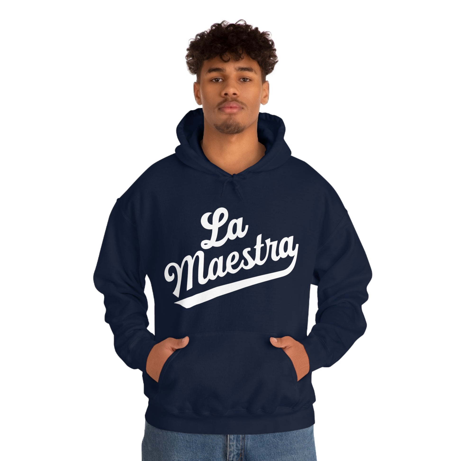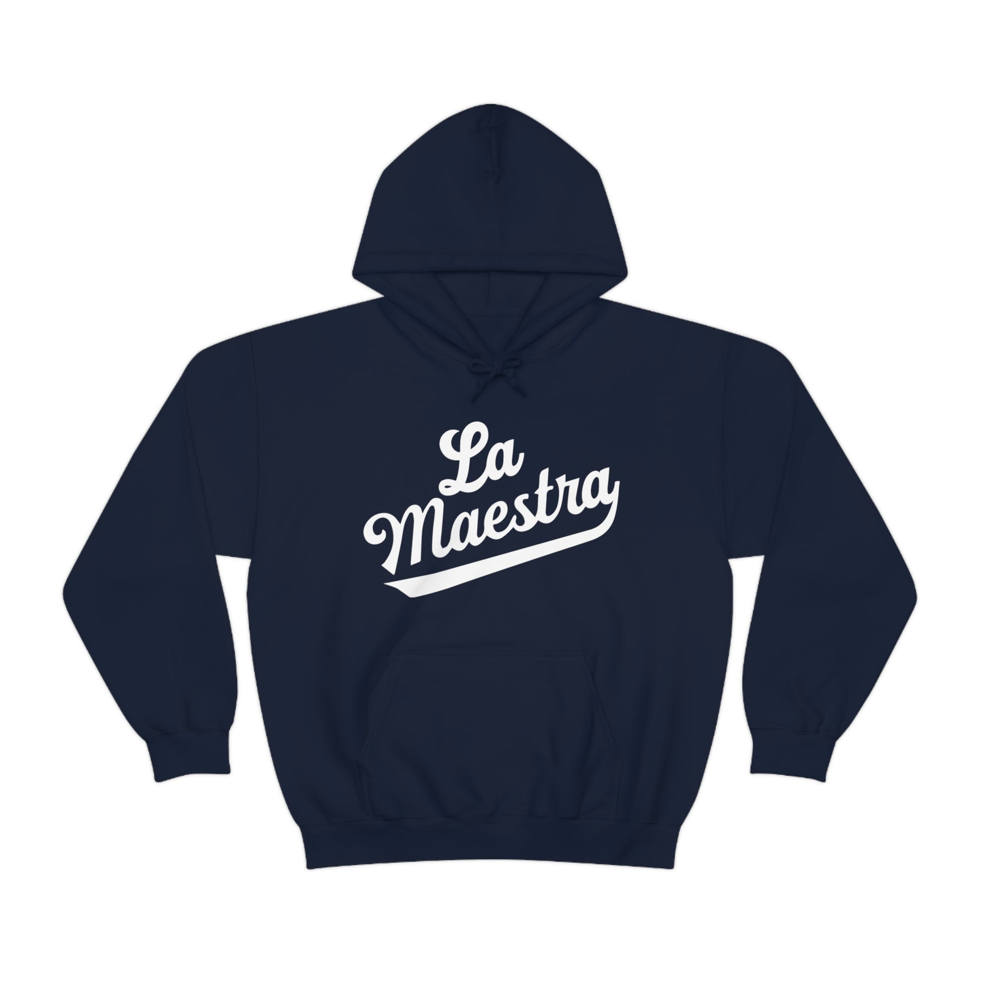 This La Maestro, "The Teacher" hoodie channels the iconic Los Angeles Dodgers aesthetic with a unique twist. It integrates the distinctive Dodger blue with the bold script, intertwining baseball passion and personal style. Perfect for the ultimate fan, it captures the spirit of the game and the city's dynamic energy.