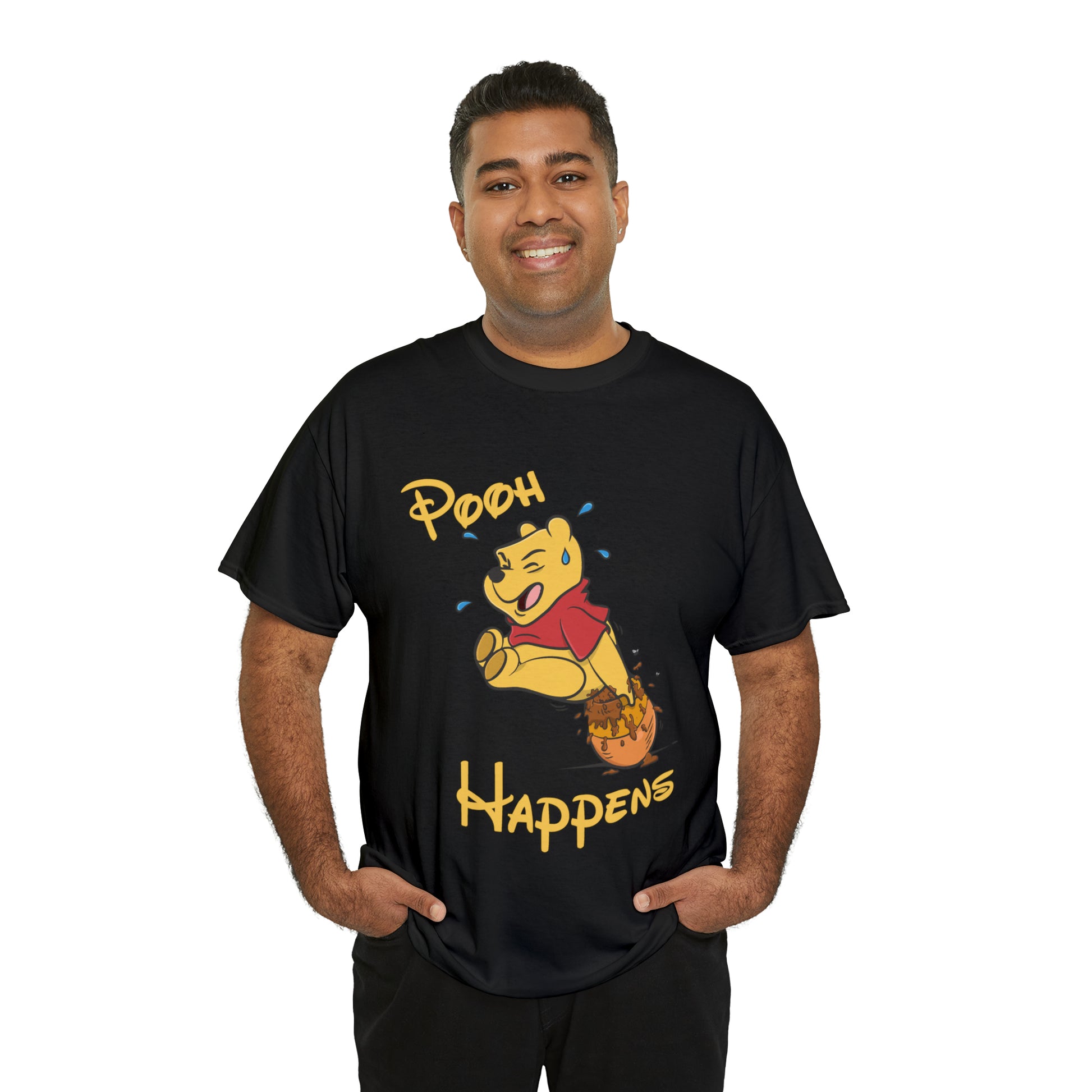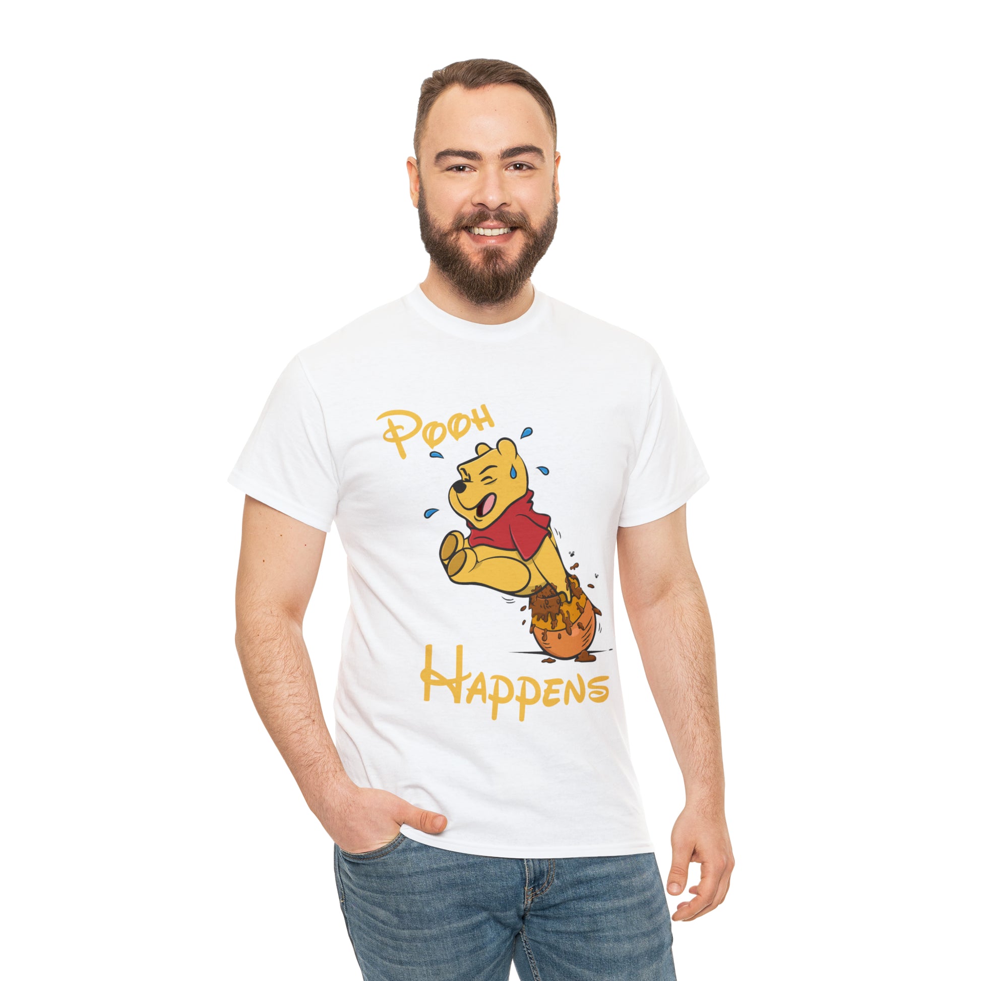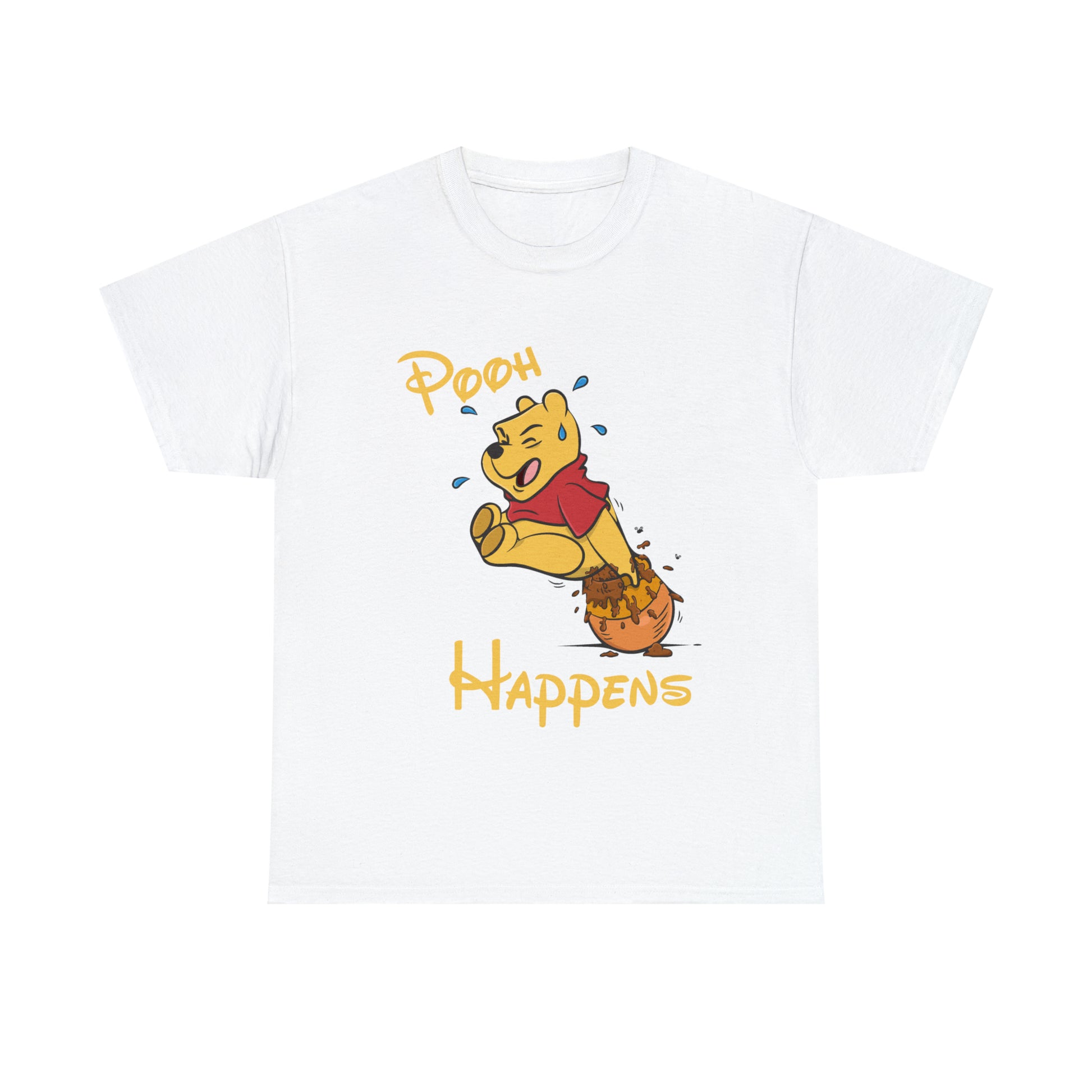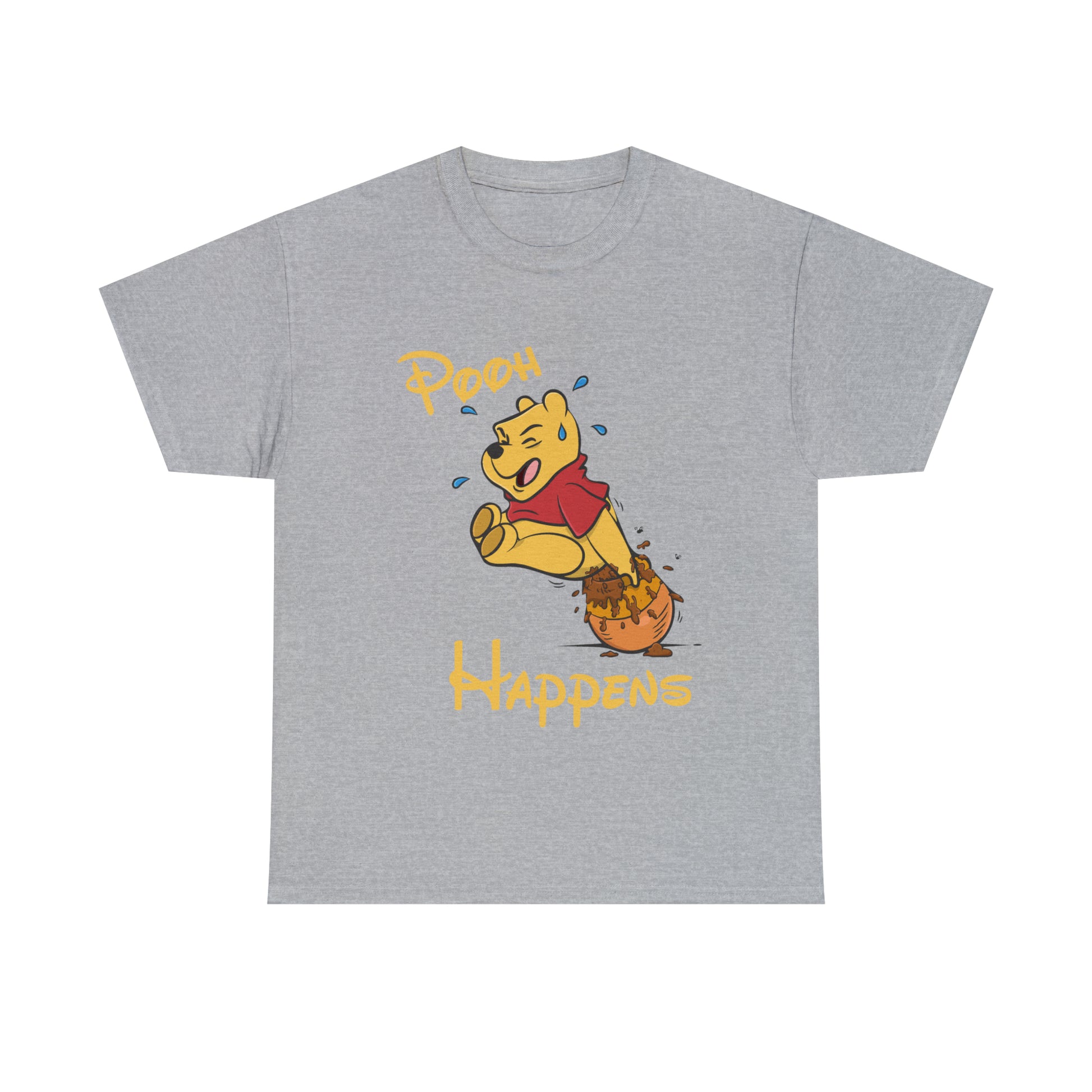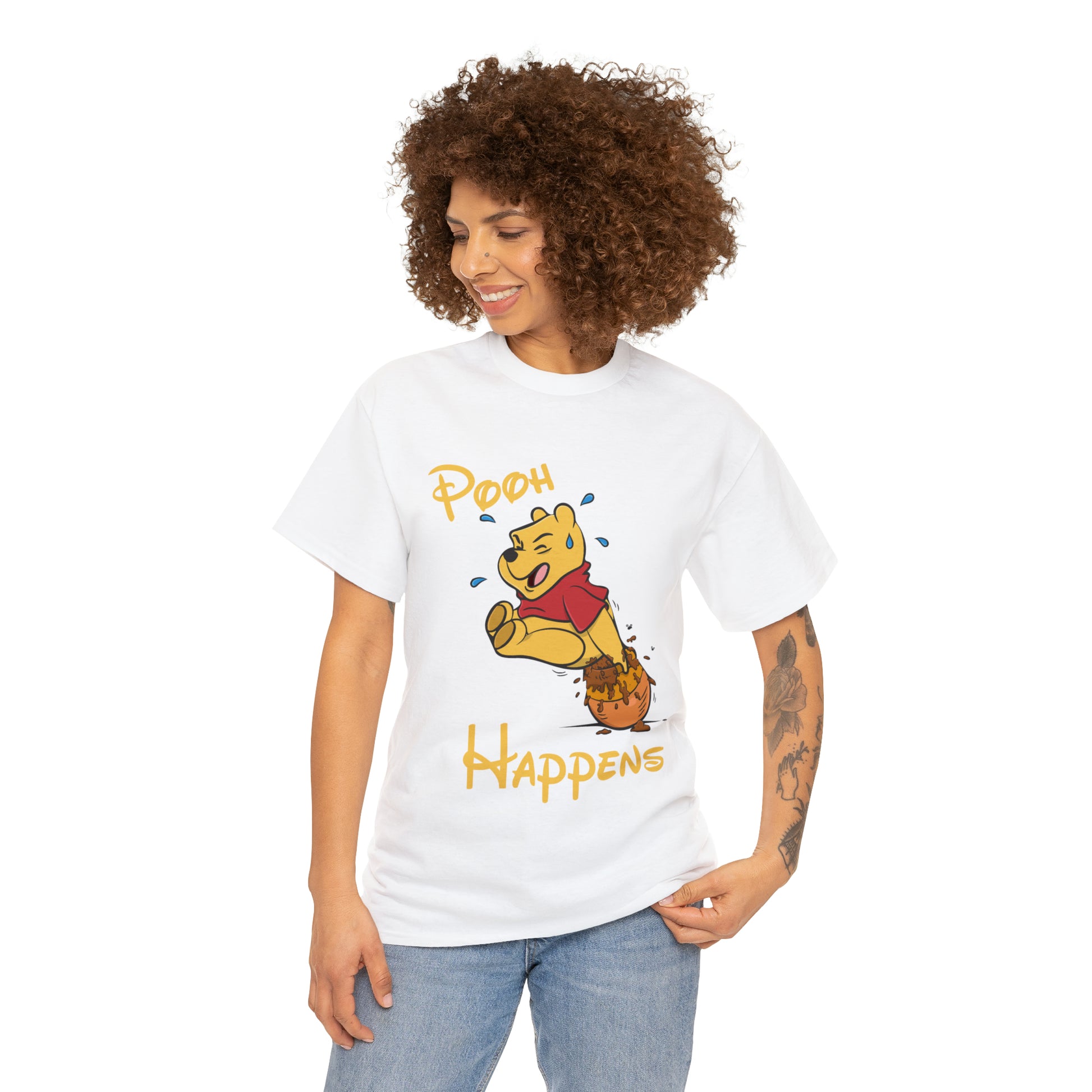 "Pooh Happens Tee: Embrace life's quirks with humor. Featuring Winnie the Pooh in a relatable moment, this shirt lightens the mood with 'Pooh happens' slogan. A playful reminder that mishaps are part of the journey. Share a laugh and roll with the punches in this whimsical, lighthearted t-shirt."