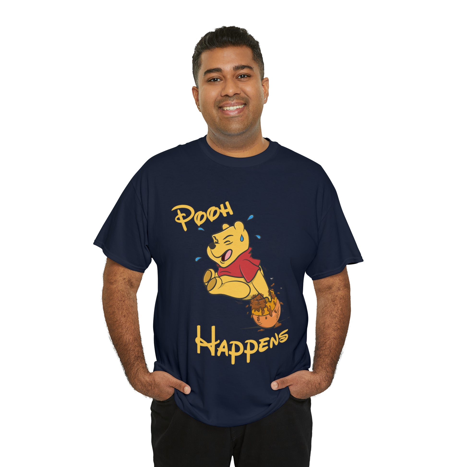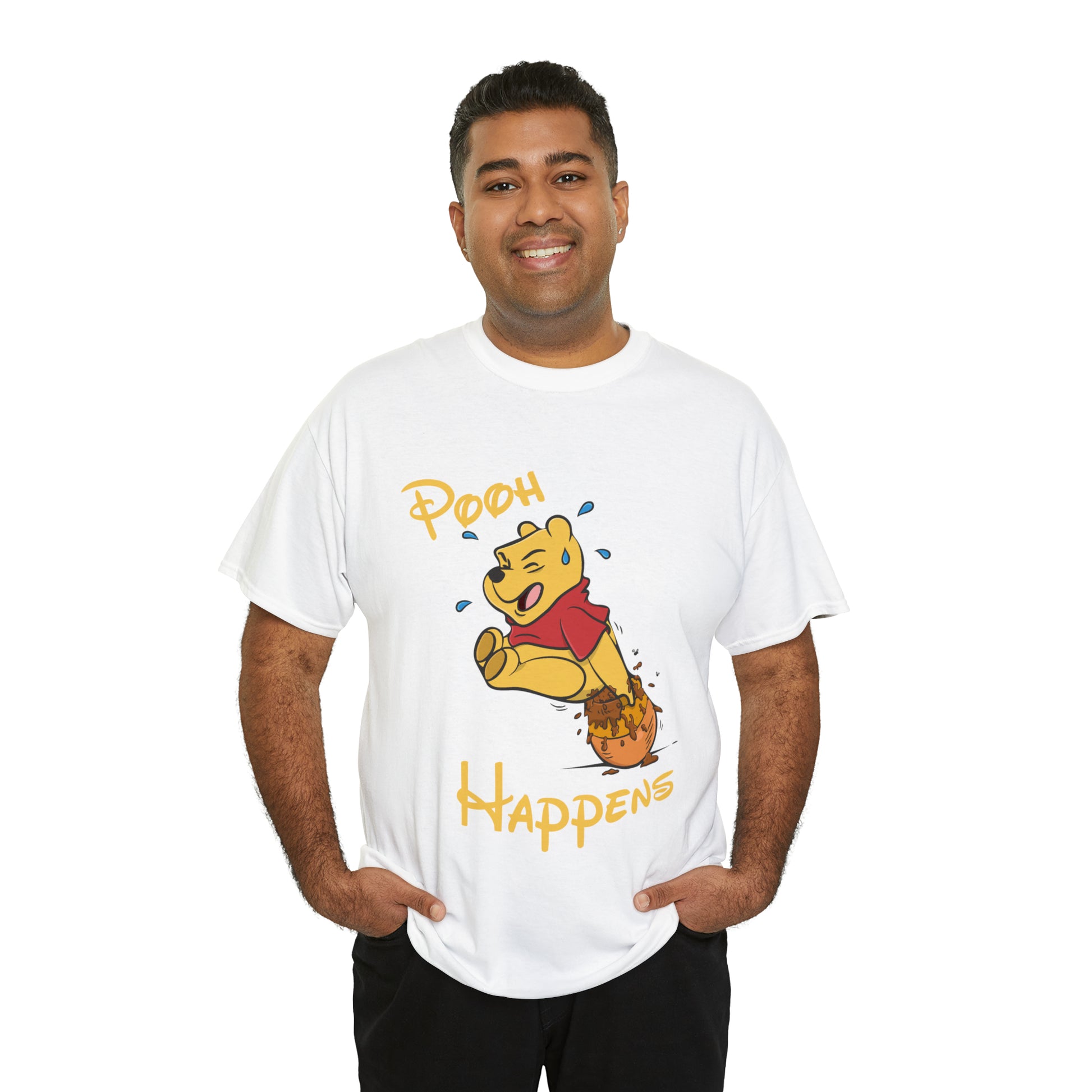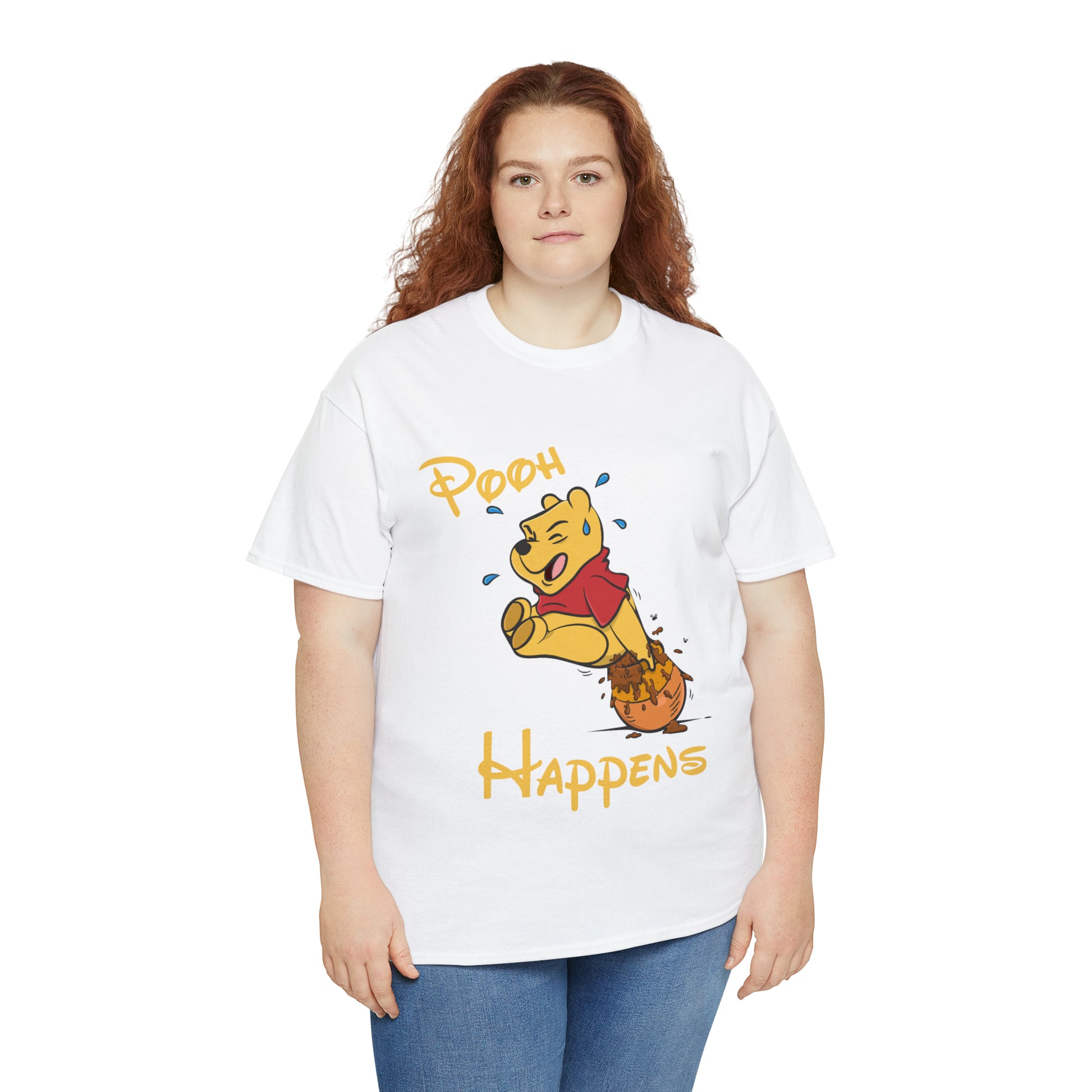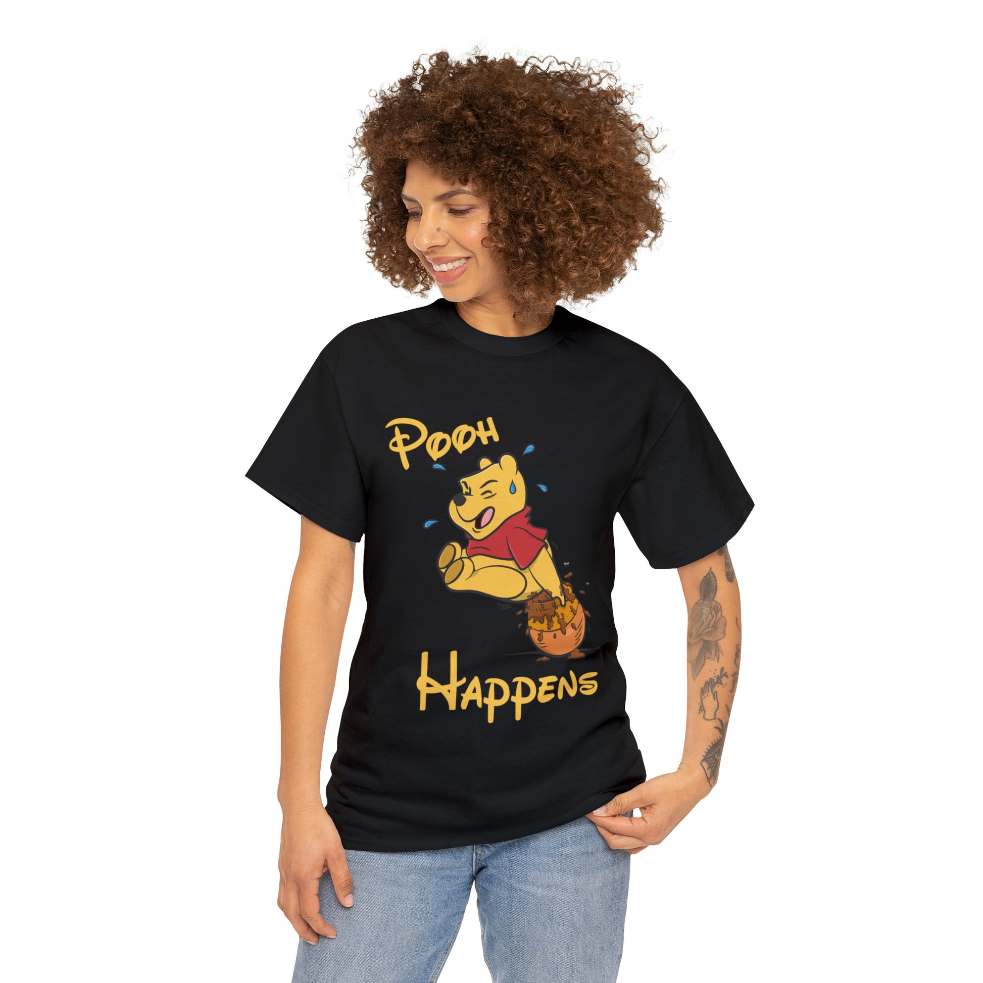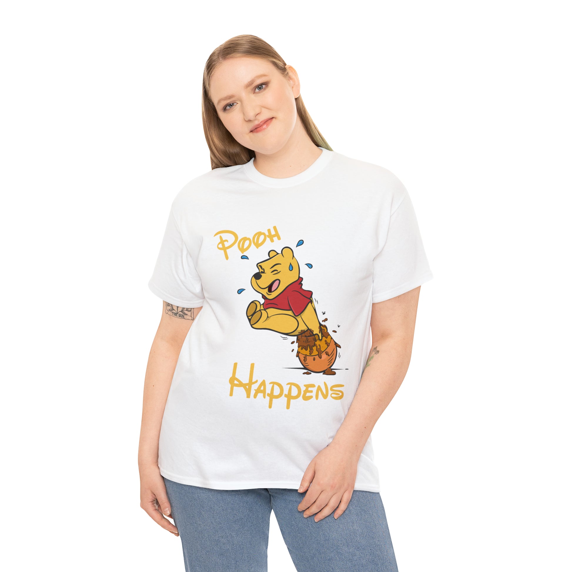 "Pooh Happens Tee: Embrace life's quirks with humor. Featuring Winnie the Pooh in a relatable moment, this shirt lightens the mood with 'Pooh happens' slogan. A playful reminder that mishaps are part of the journey. Share a laugh and roll with the punches in this whimsical, lighthearted t-shirt."