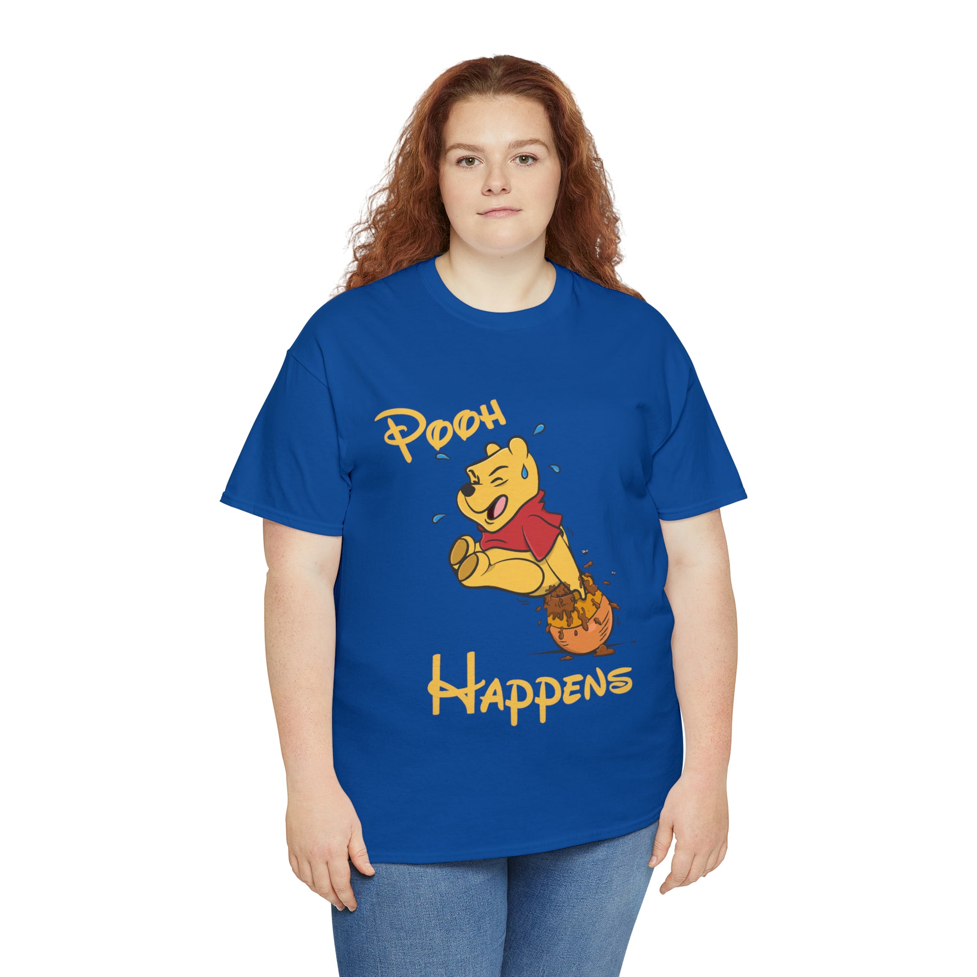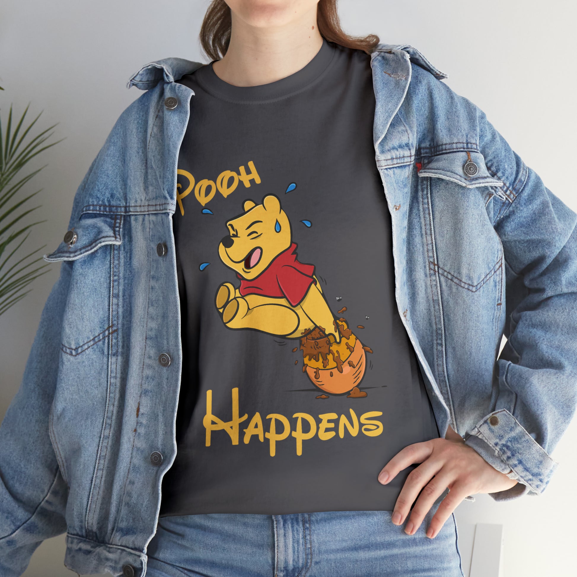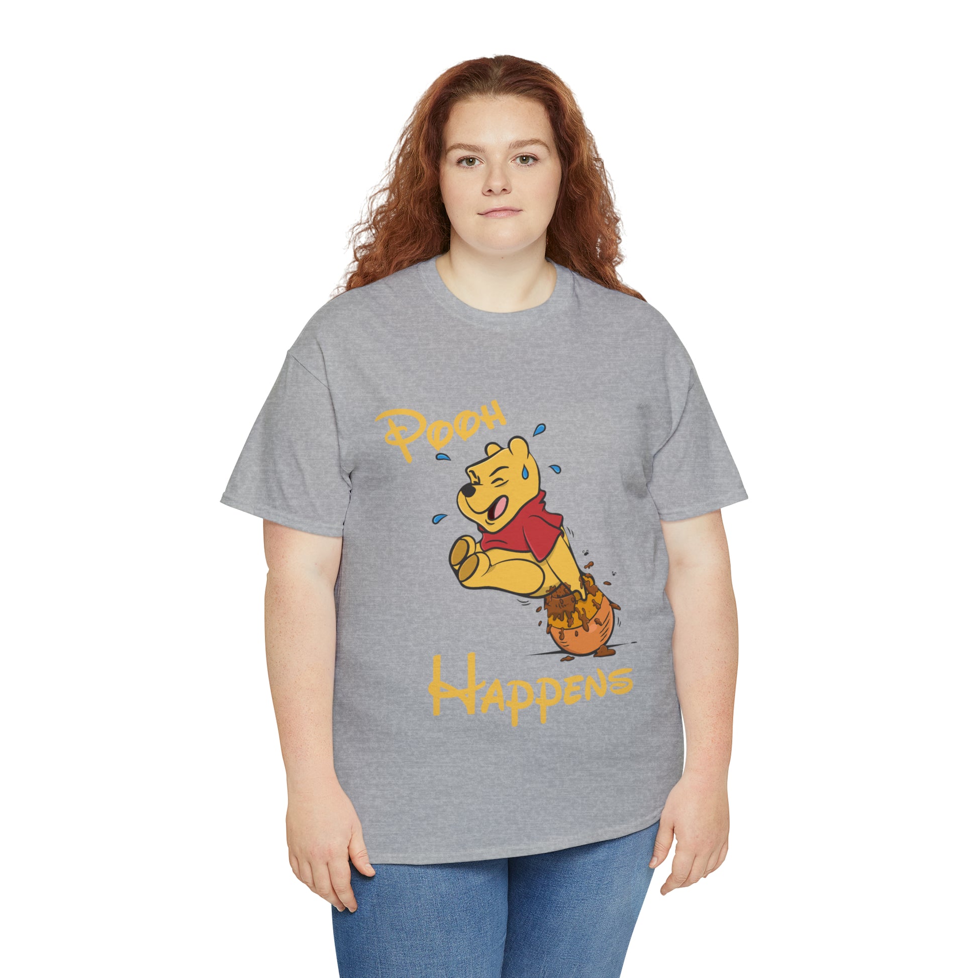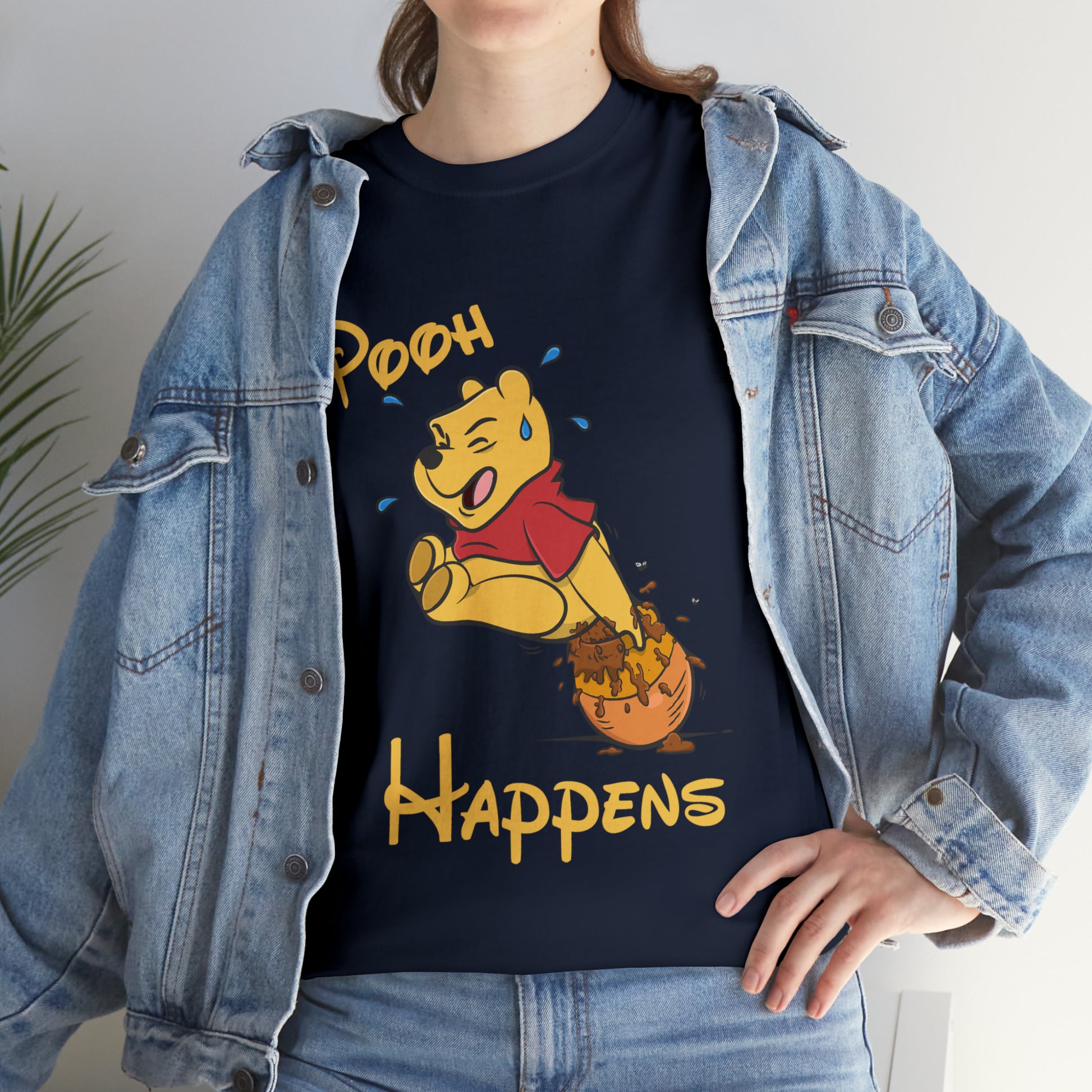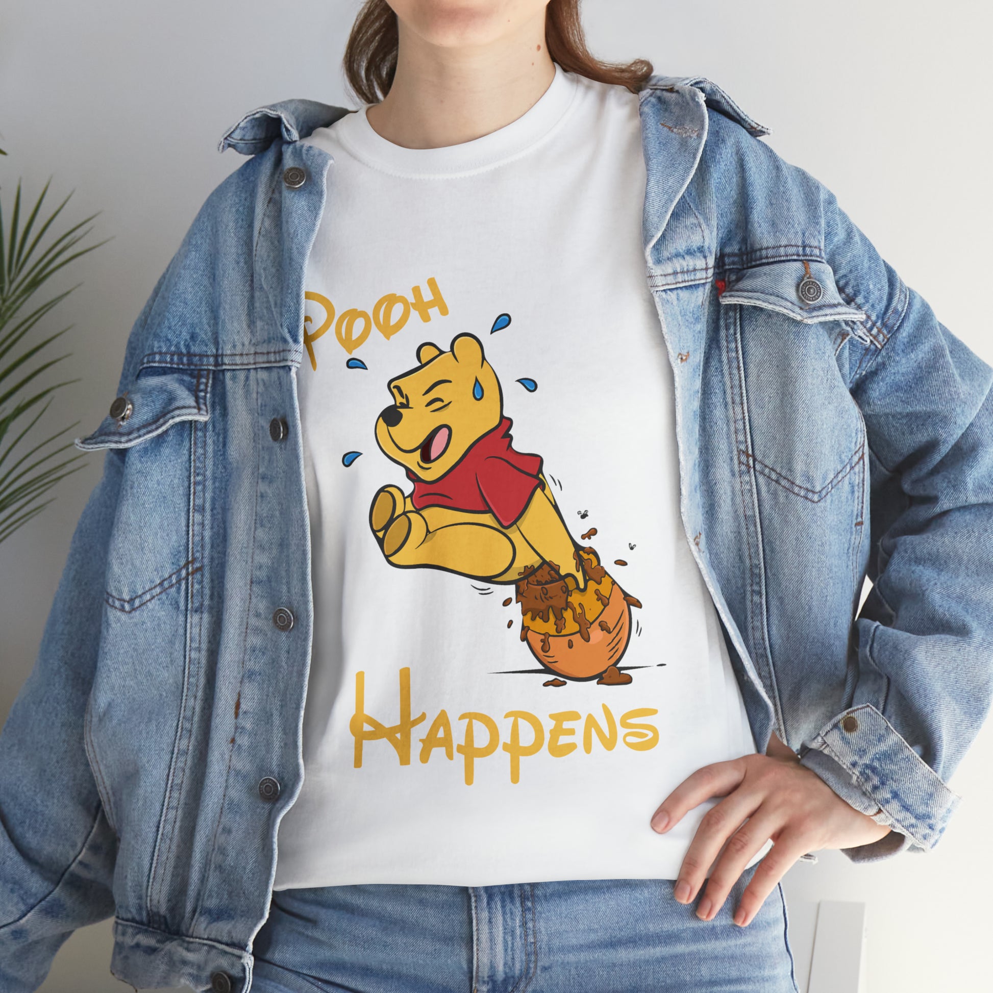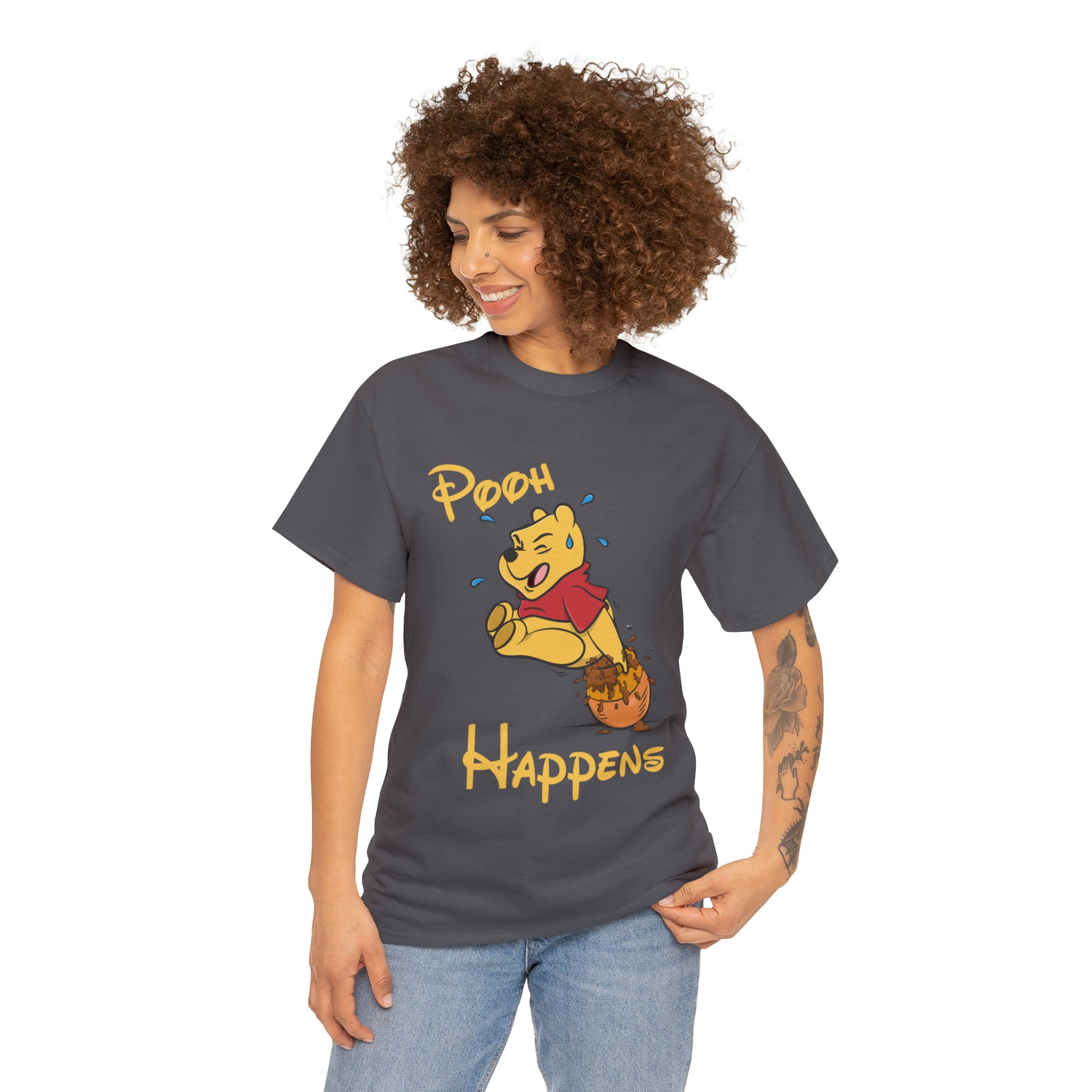 "Pooh Happens Tee: Embrace life's quirks with humor. Featuring Winnie the Pooh in a relatable moment, this shirt lightens the mood with 'Pooh happens' slogan. A playful reminder that mishaps are part of the journey. Share a laugh and roll with the punches in this whimsical, lighthearted t-shirt."