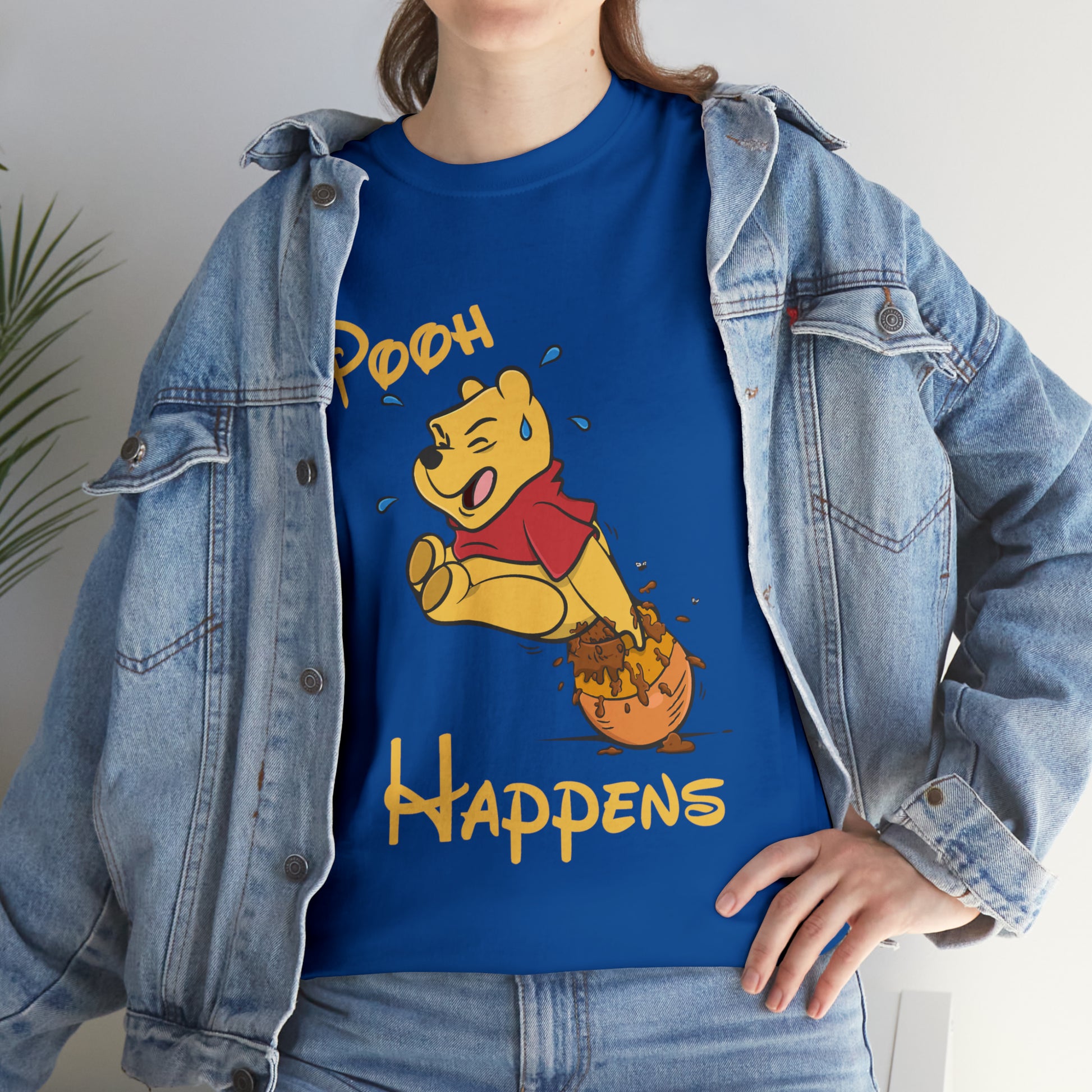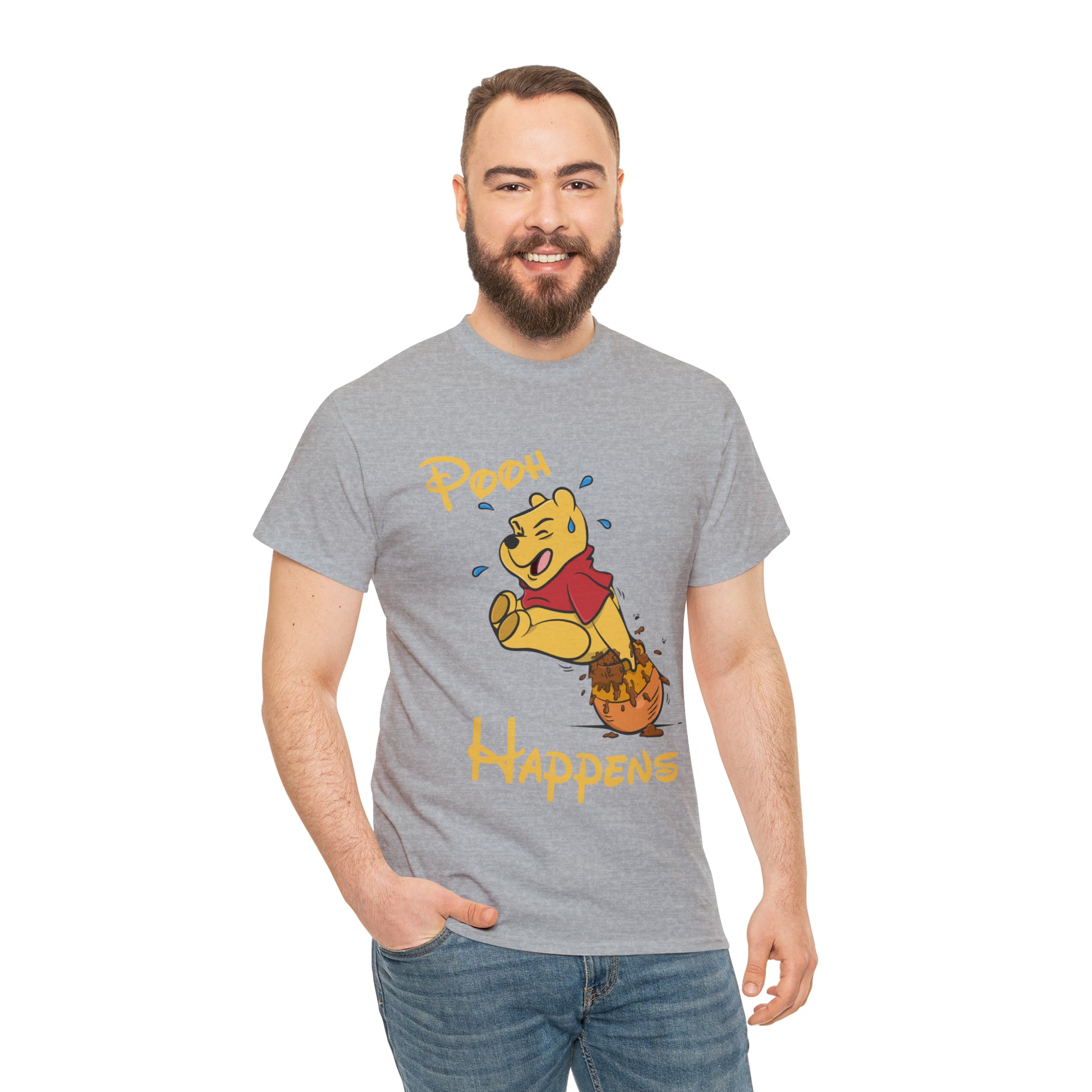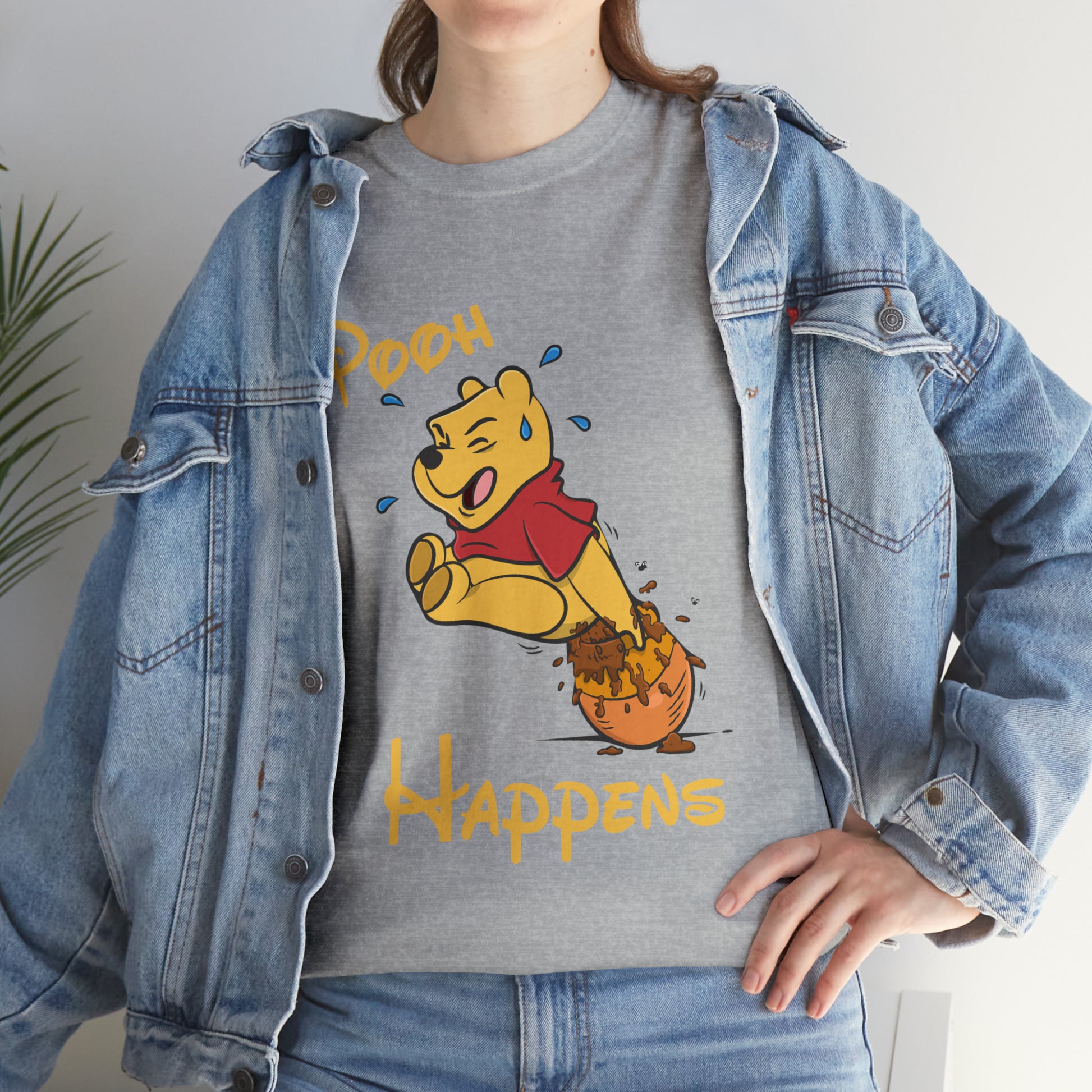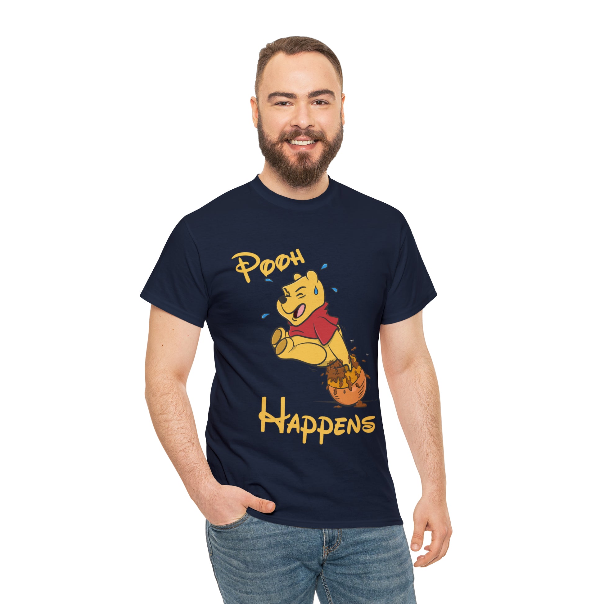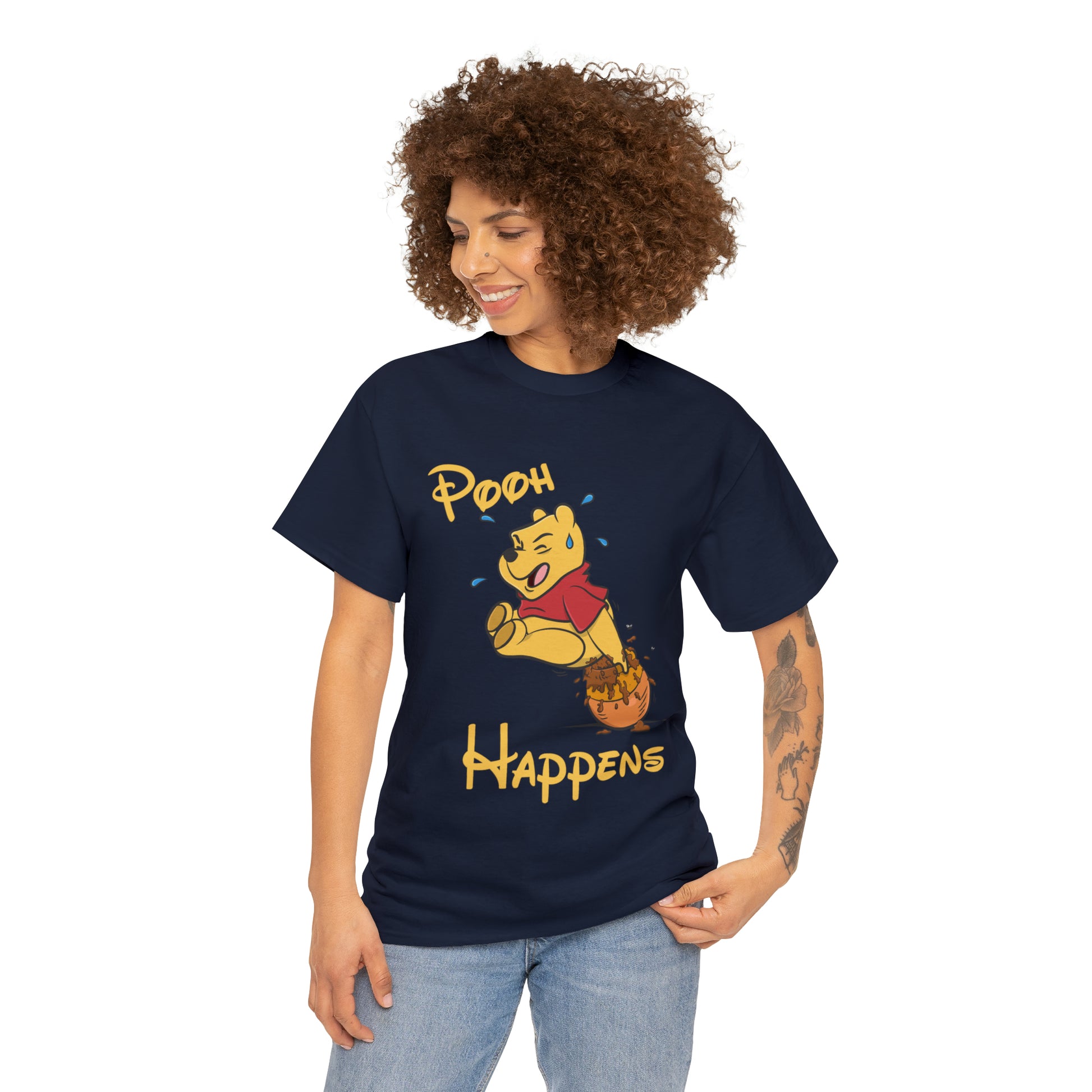 "Pooh Happens Tee: Embrace life's quirks with humor. Featuring Winnie the Pooh in a relatable moment, this shirt lightens the mood with 'Pooh happens' slogan. A playful reminder that mishaps are part of the journey. Share a laugh and roll with the punches in this whimsical, lighthearted t-shirt."