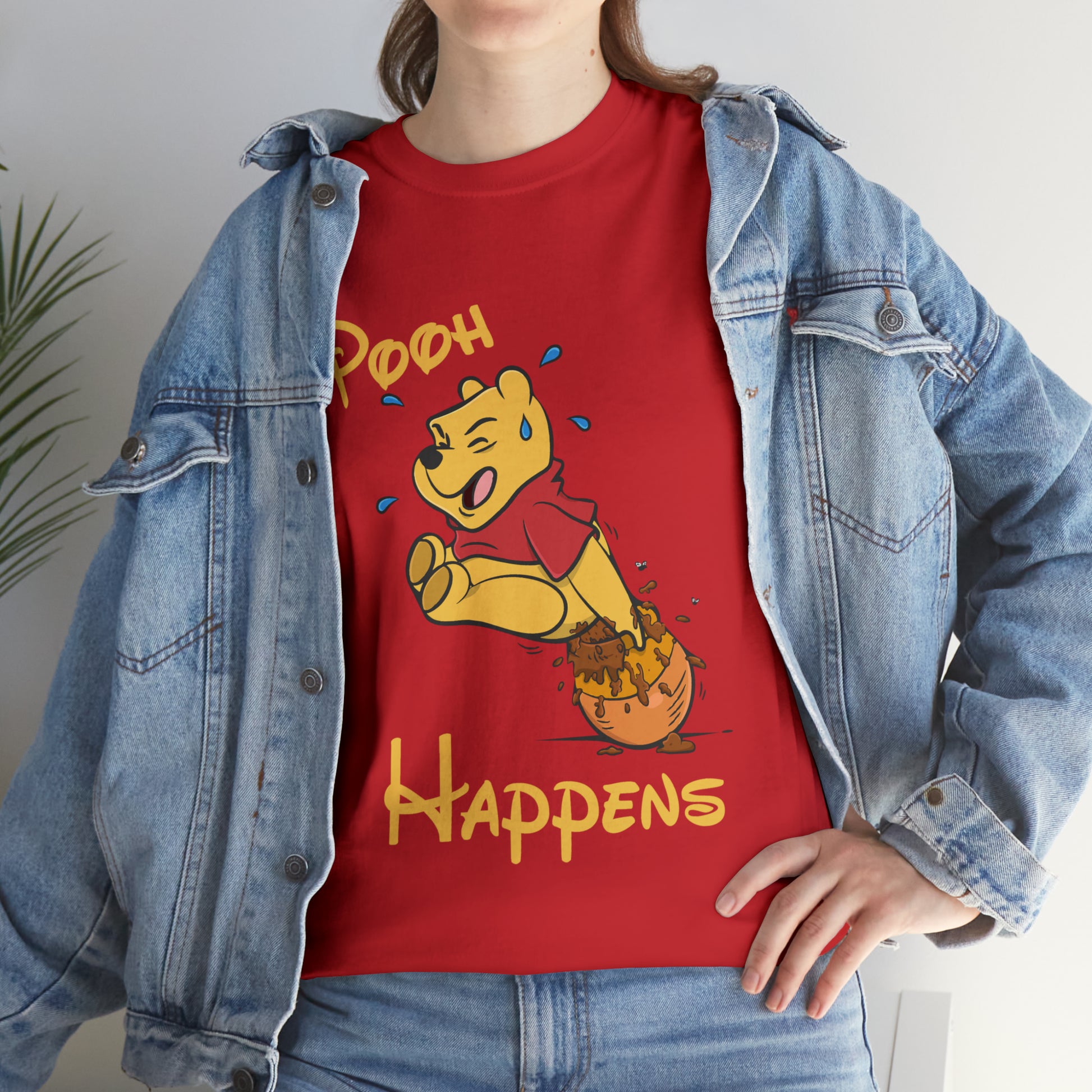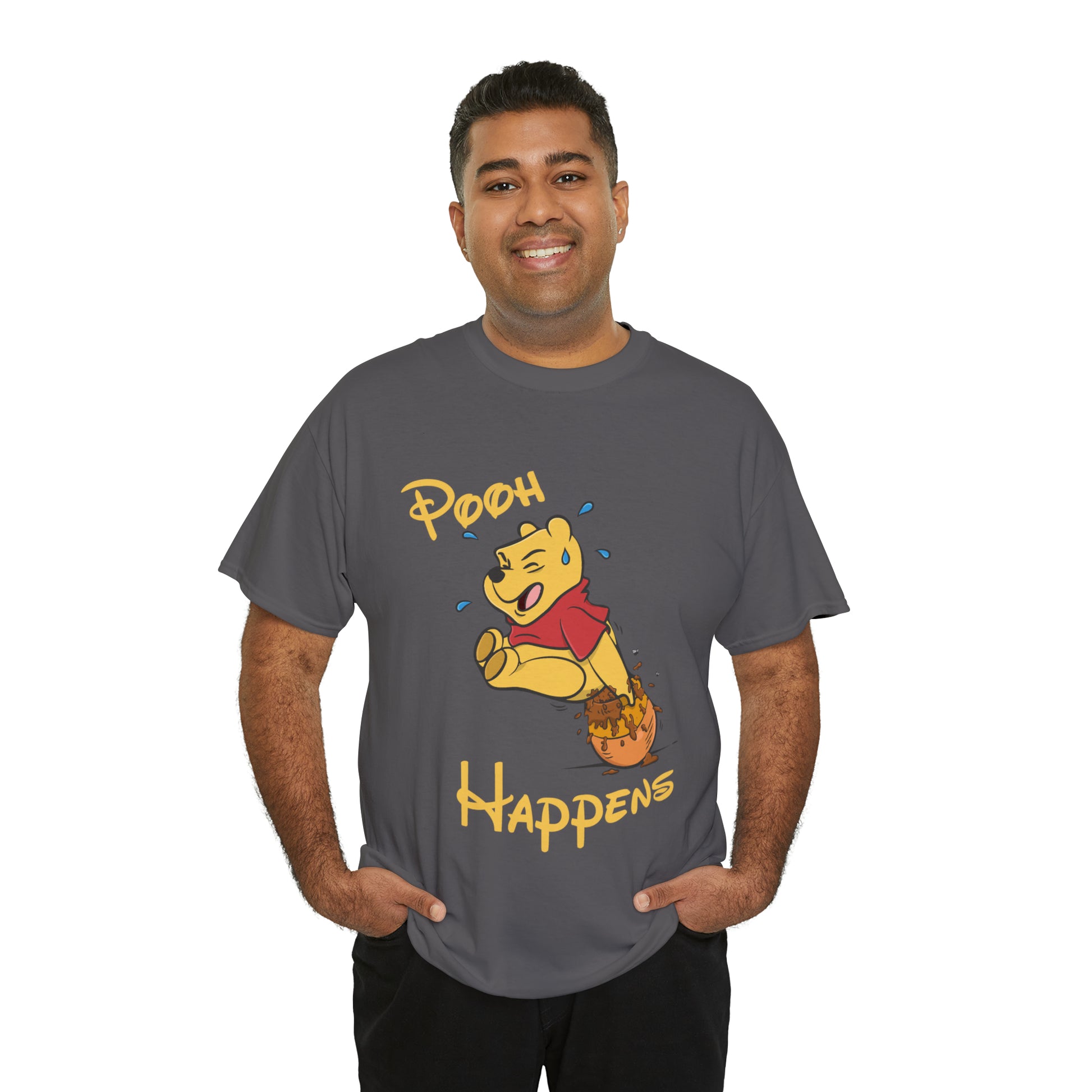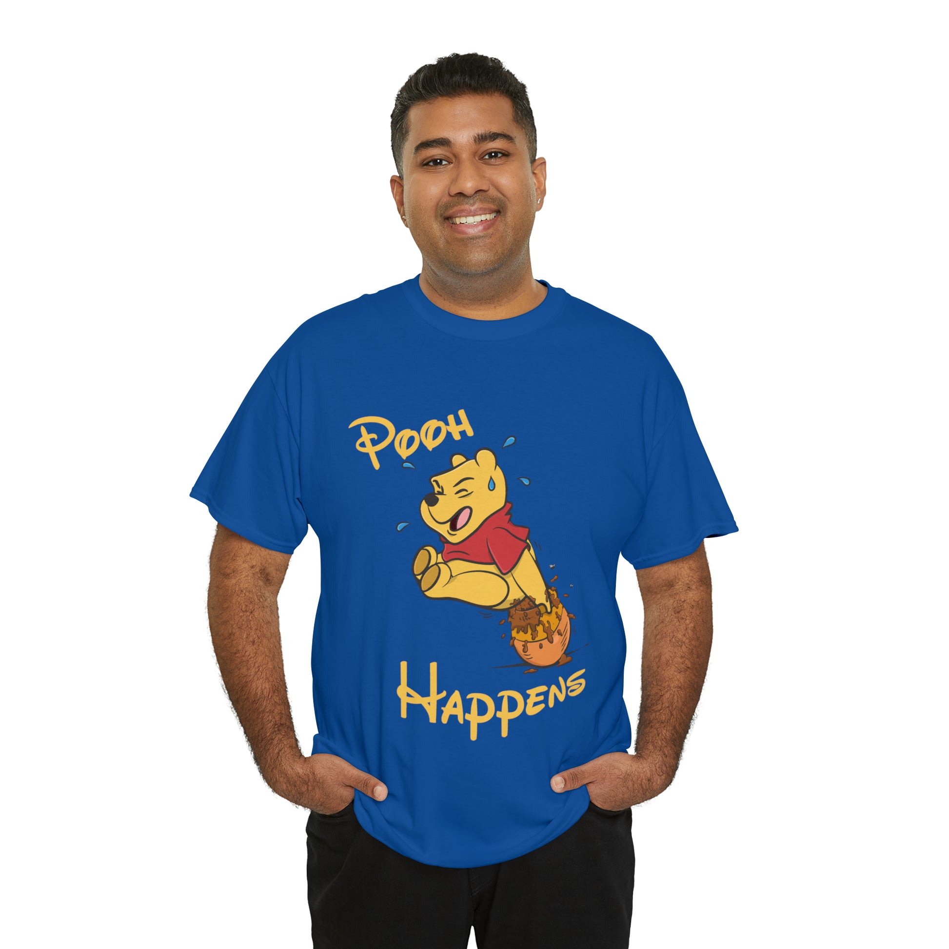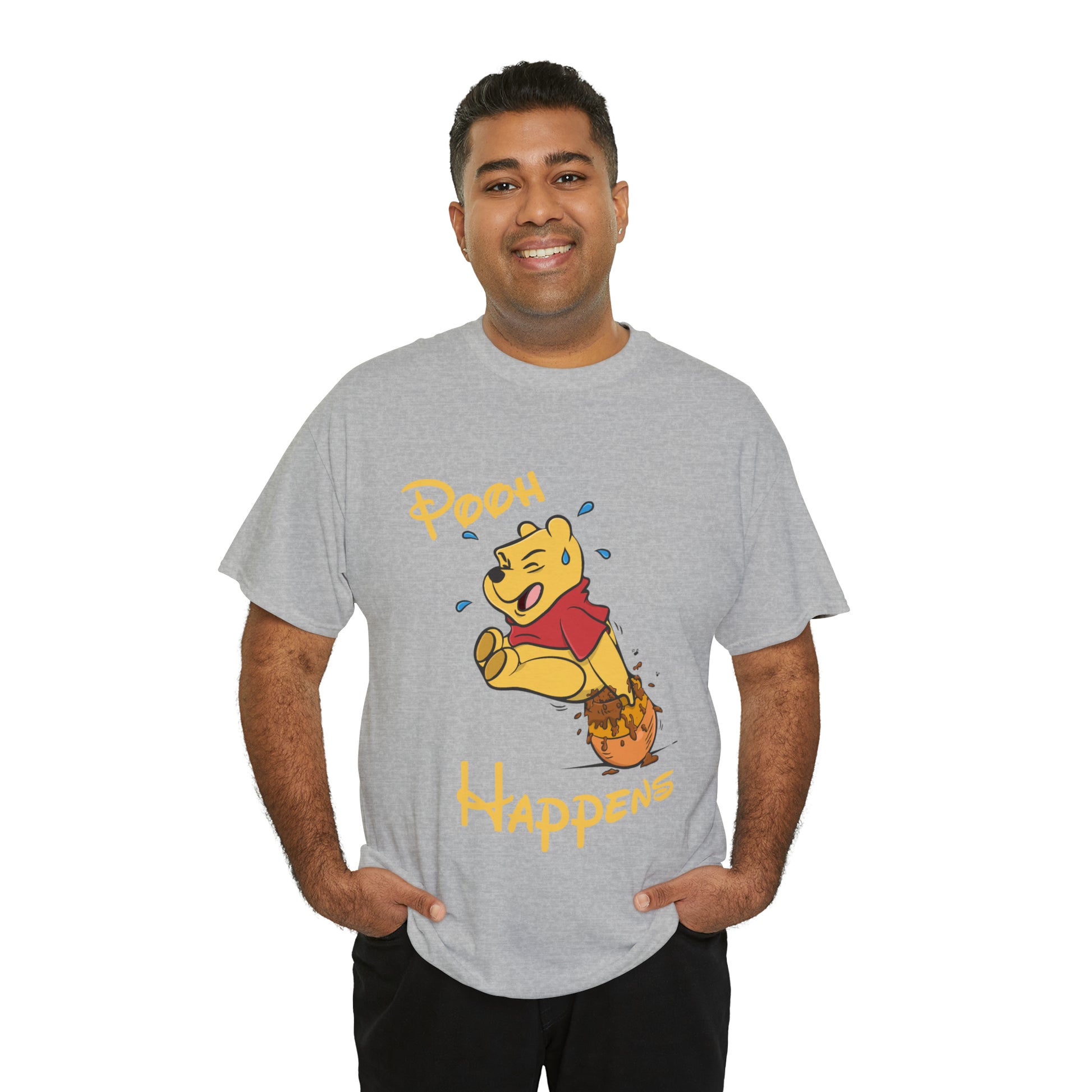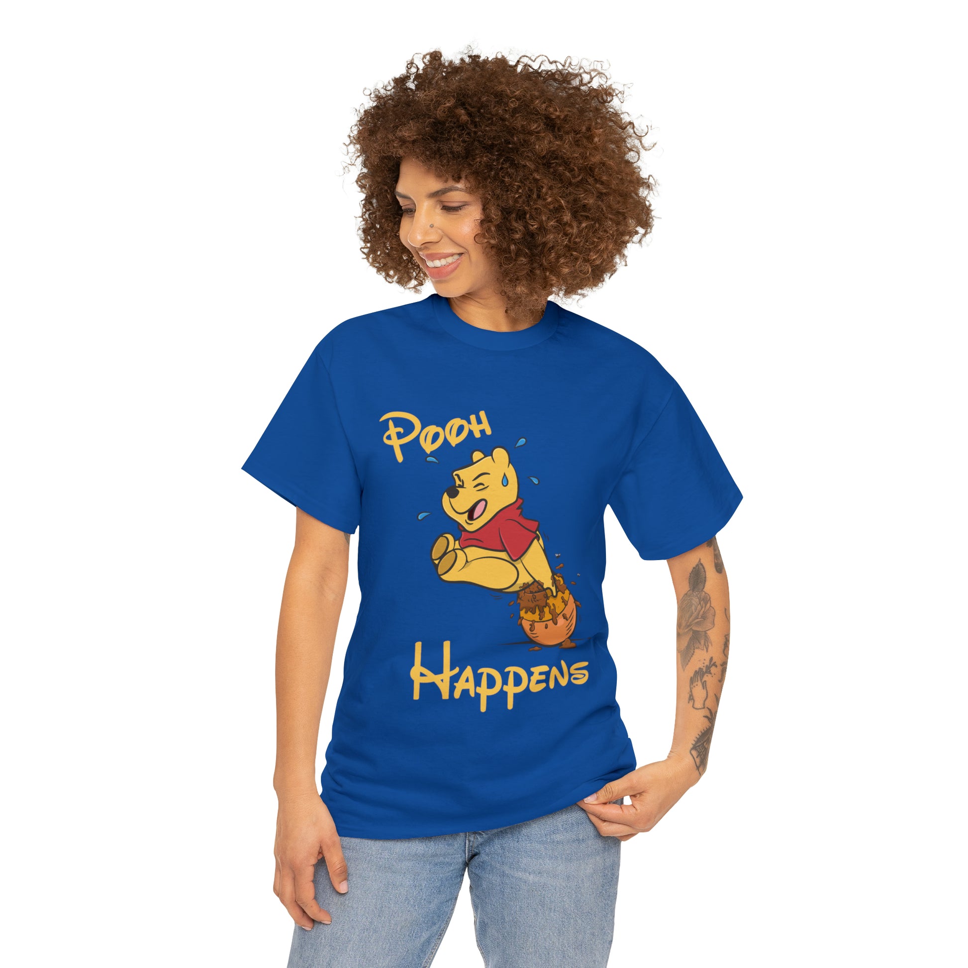 "Pooh Happens Tee: Embrace life's quirks with humor. Featuring Winnie the Pooh in a relatable moment, this shirt lightens the mood with 'Pooh happens' slogan. A playful reminder that mishaps are part of the journey. Share a laugh and roll with the punches in this whimsical, lighthearted t-shirt."