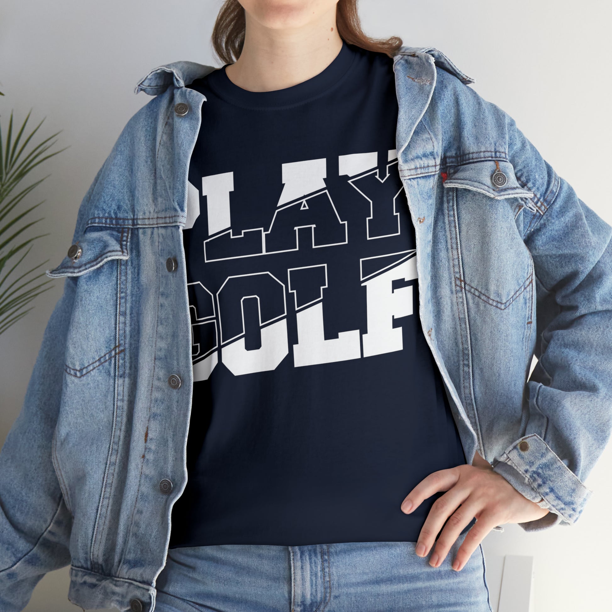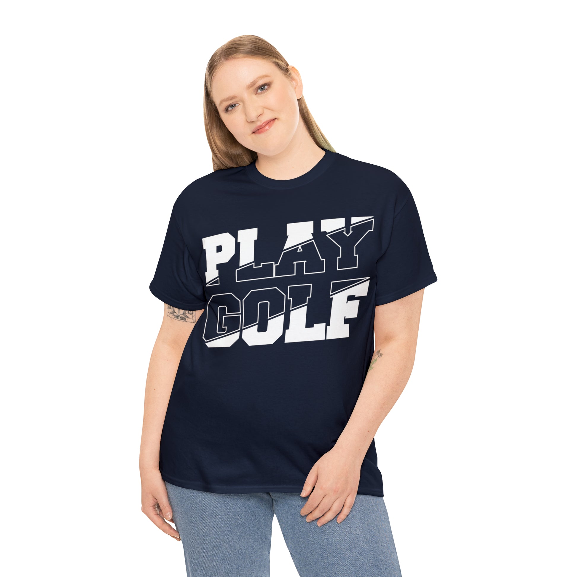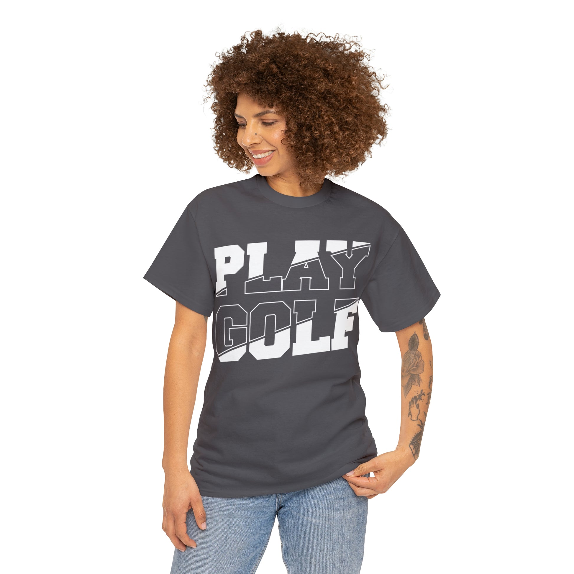 Introducing the Play Golf T-Shirt, a perfect blend of classic and contemporary style. This sleek tee features a modern split logo design, fusing the elegance of golf tradition with a fresh, cutting-edge aesthetic. Crafted for comfort and performance, it's a must-have for golf enthusiasts who appreciate the best of both worlds.