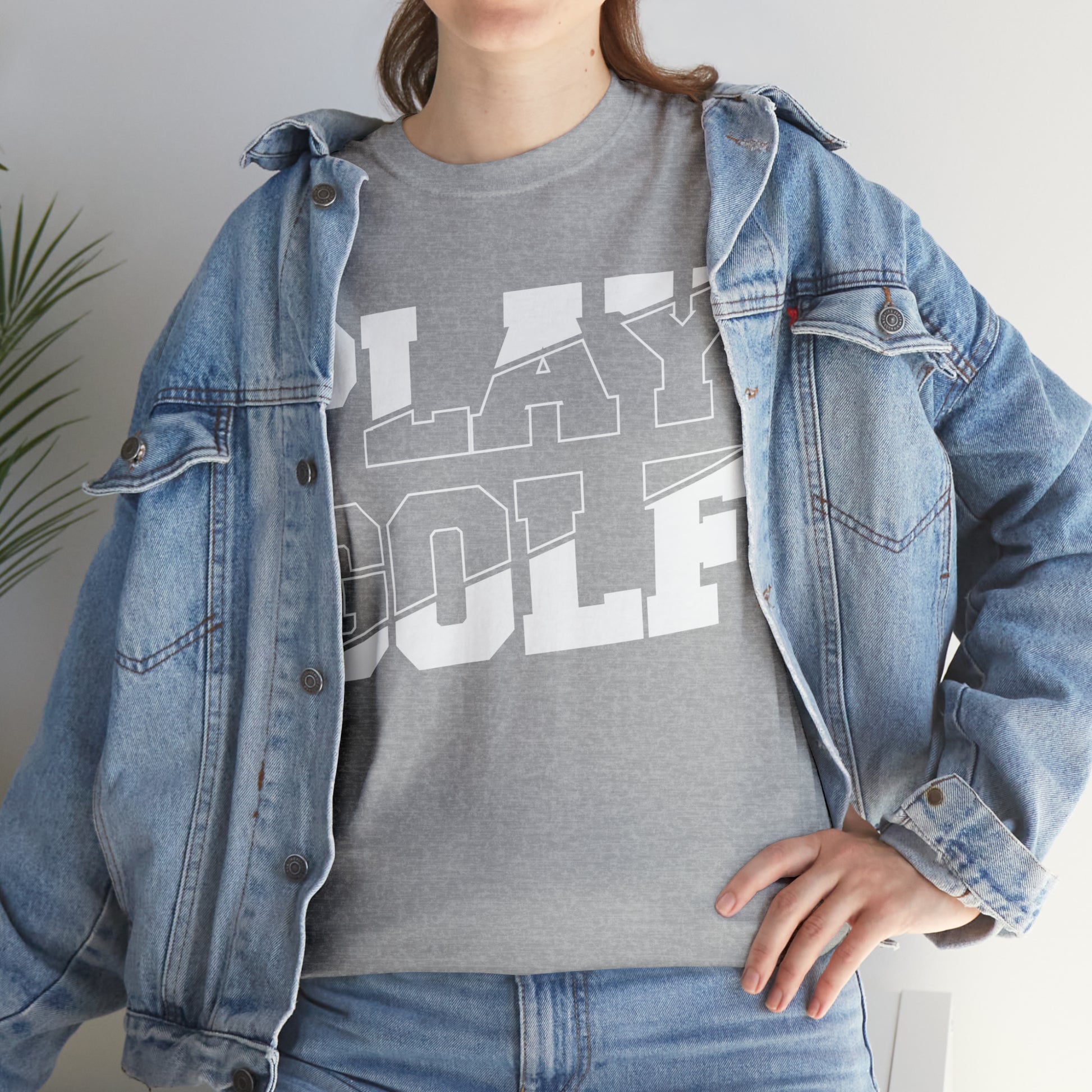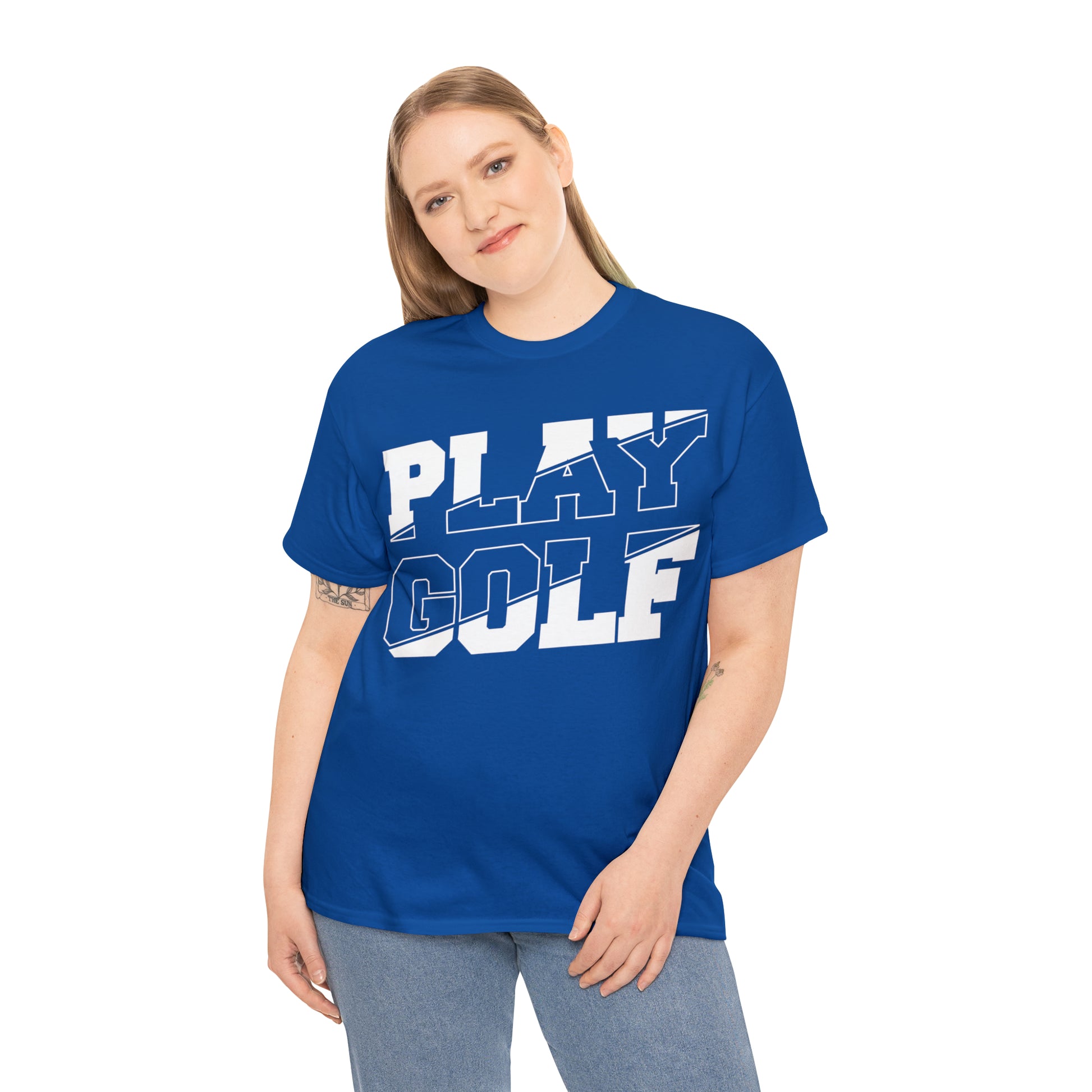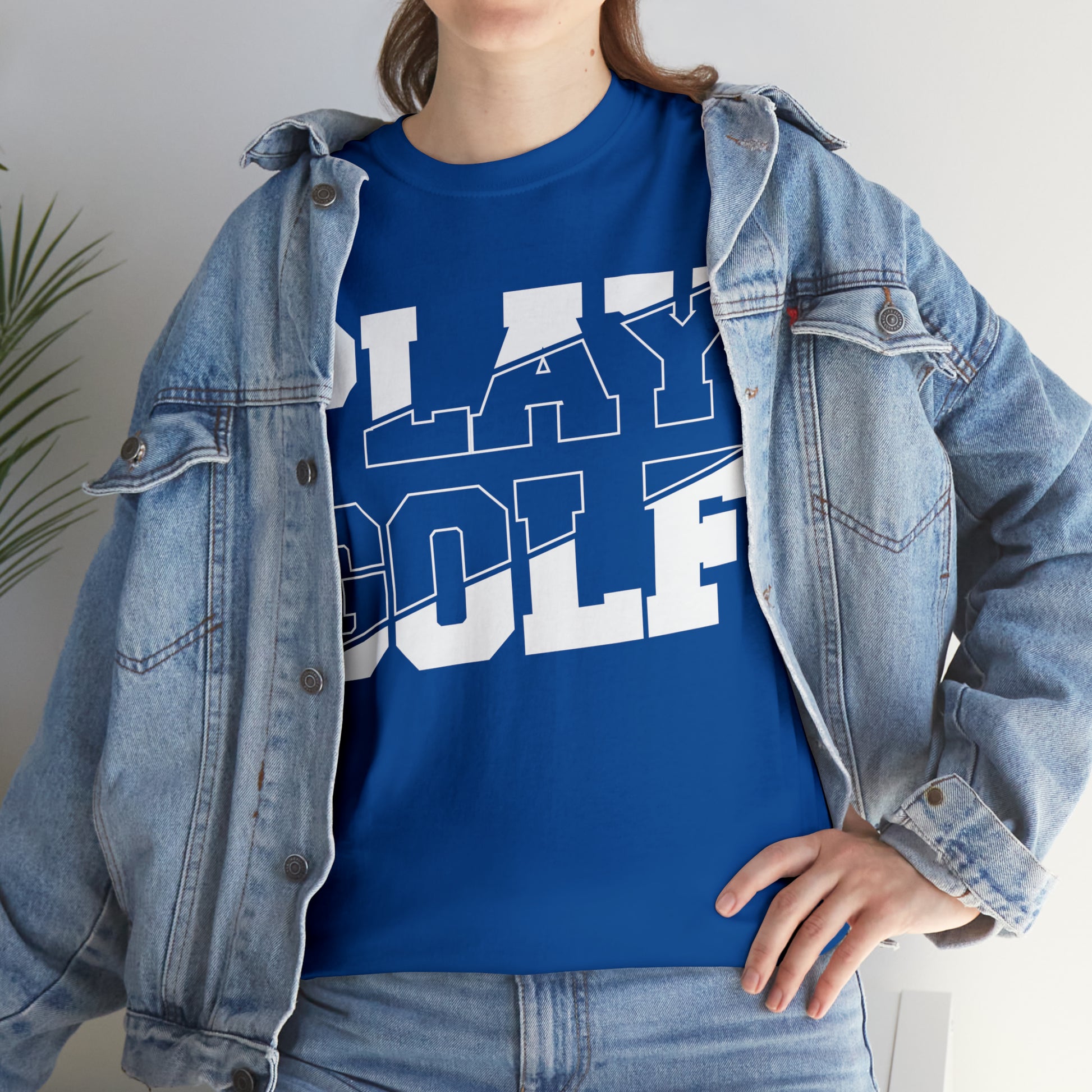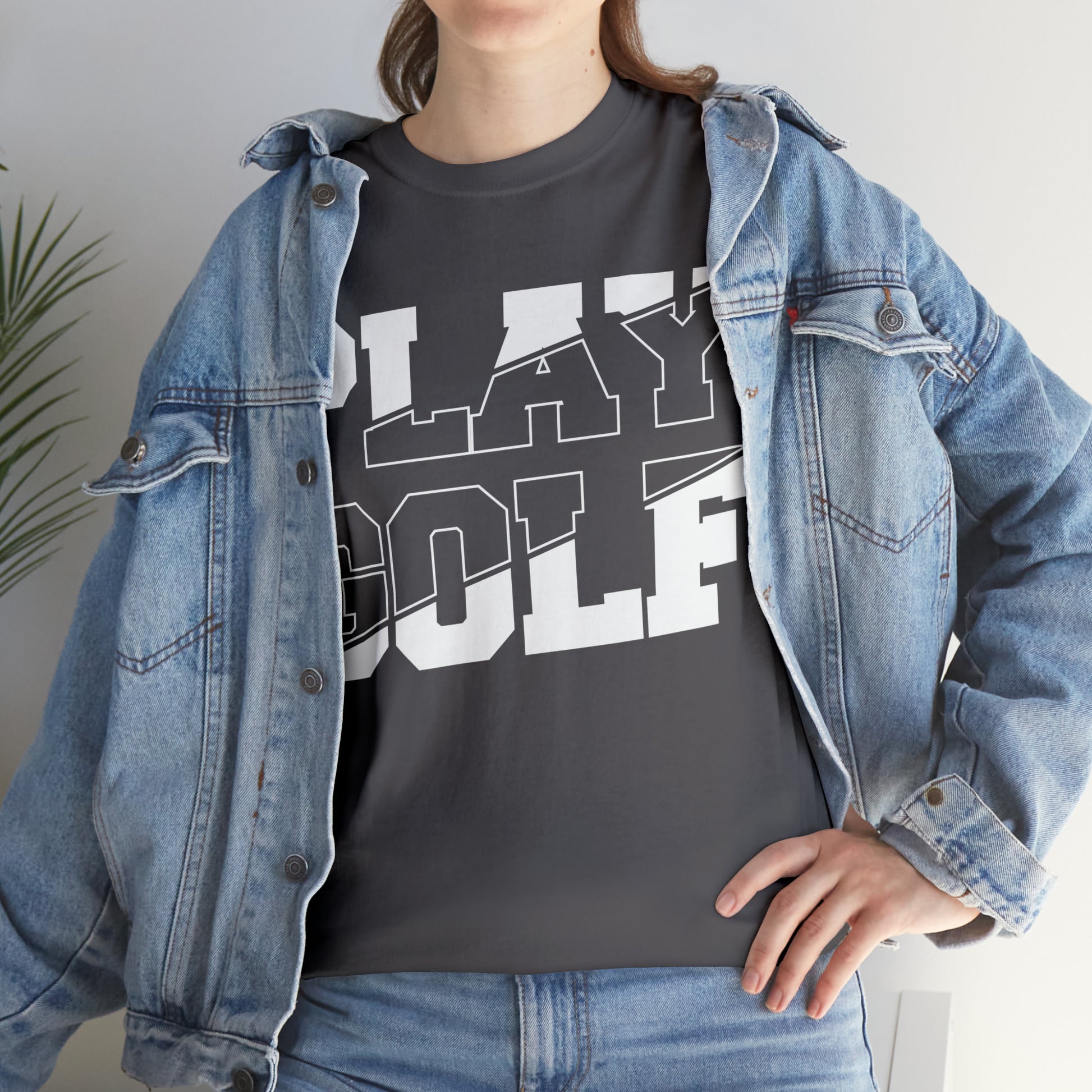 Introducing the Play Golf T-Shirt, a perfect blend of classic and contemporary style. This sleek tee features a modern split logo design, fusing the elegance of golf tradition with a fresh, cutting-edge aesthetic. Crafted for comfort and performance, it's a must-have for golf enthusiasts who appreciate the best of both worlds.