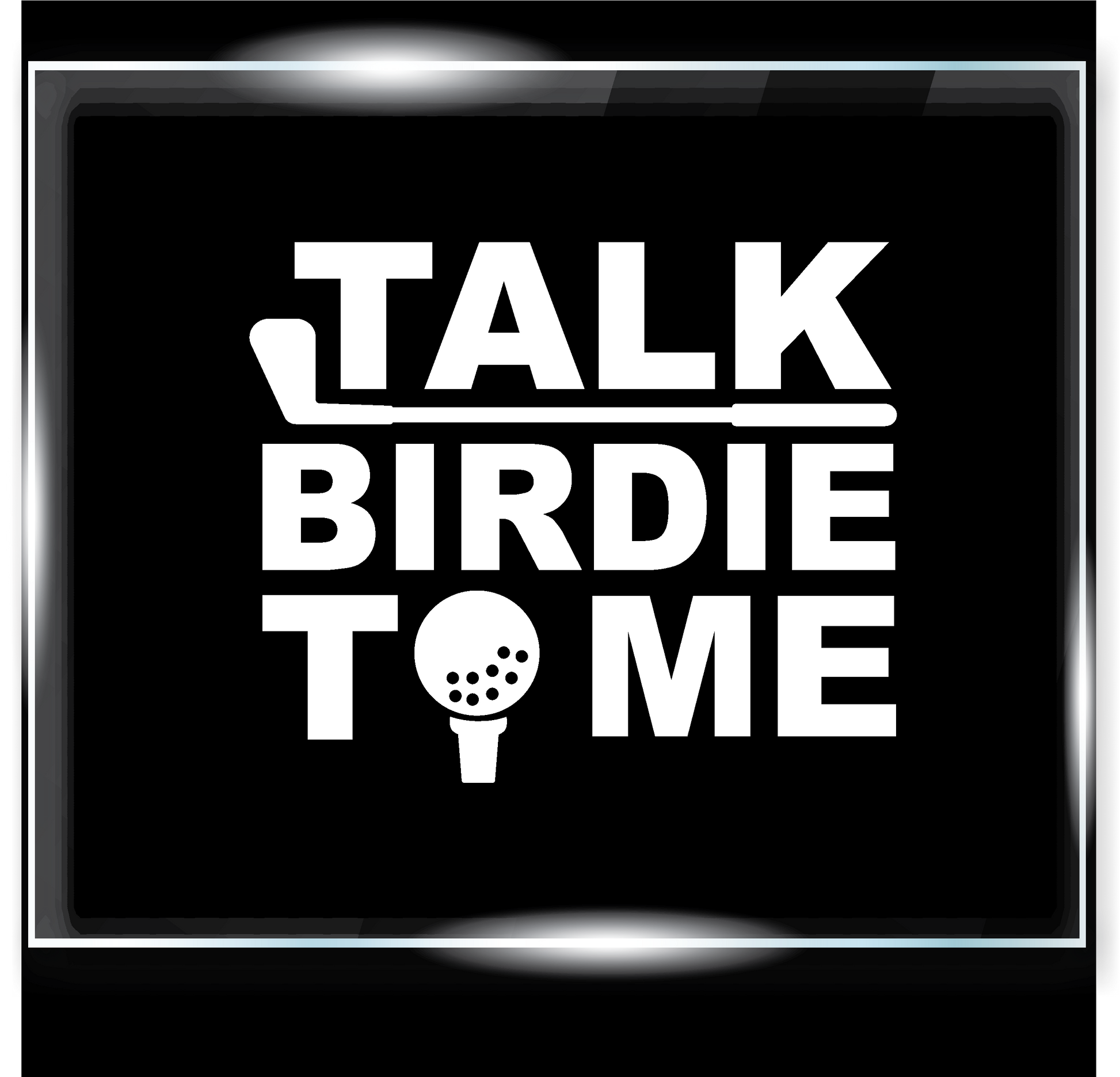 This "Talk Birdie to Me" decal is a delight for golf enthusiasts with a sense of humor. Featuring a playful golf-themed design, it's a light-hearted invitation to converse in golf lingo. Whether you're on the course or relaxing post-game, this comfortable, fun tee is sure to turn heads.