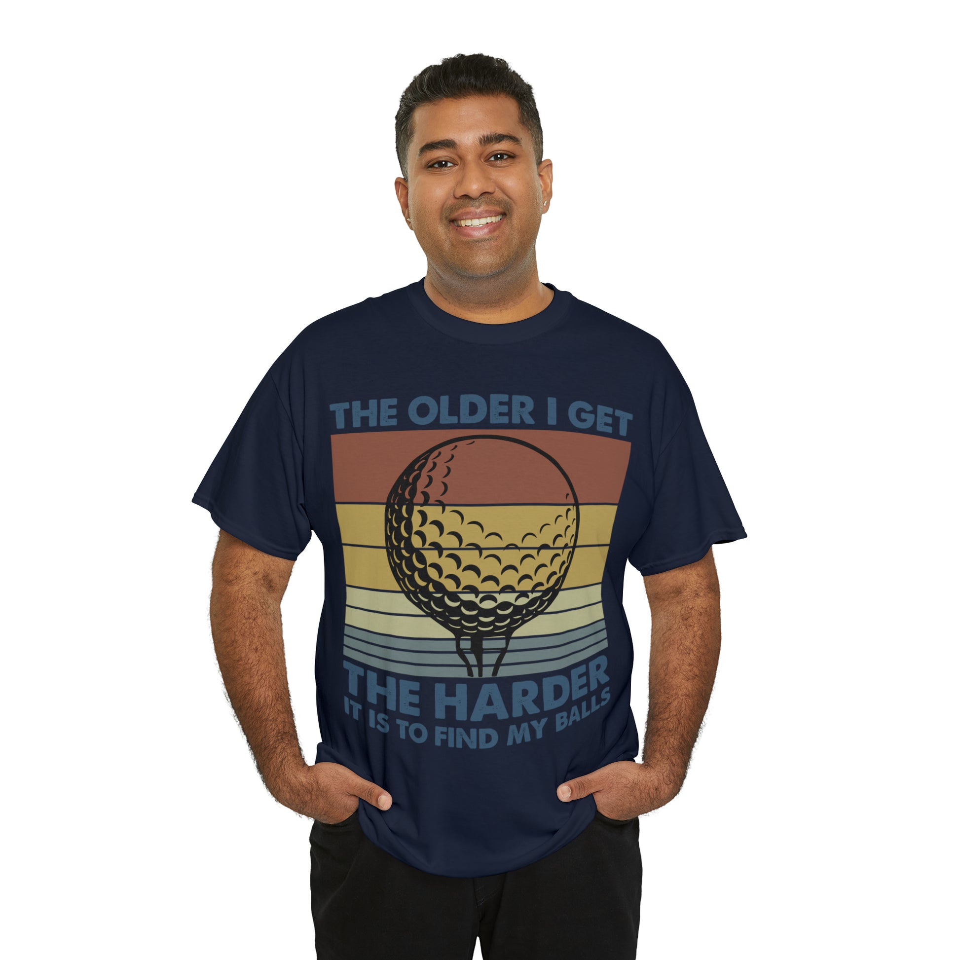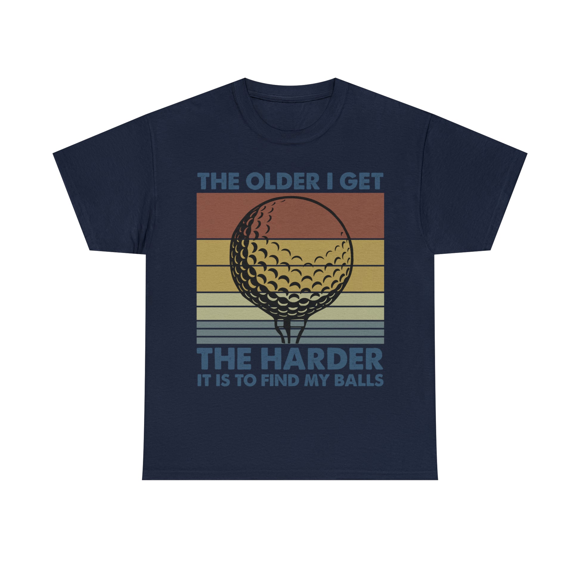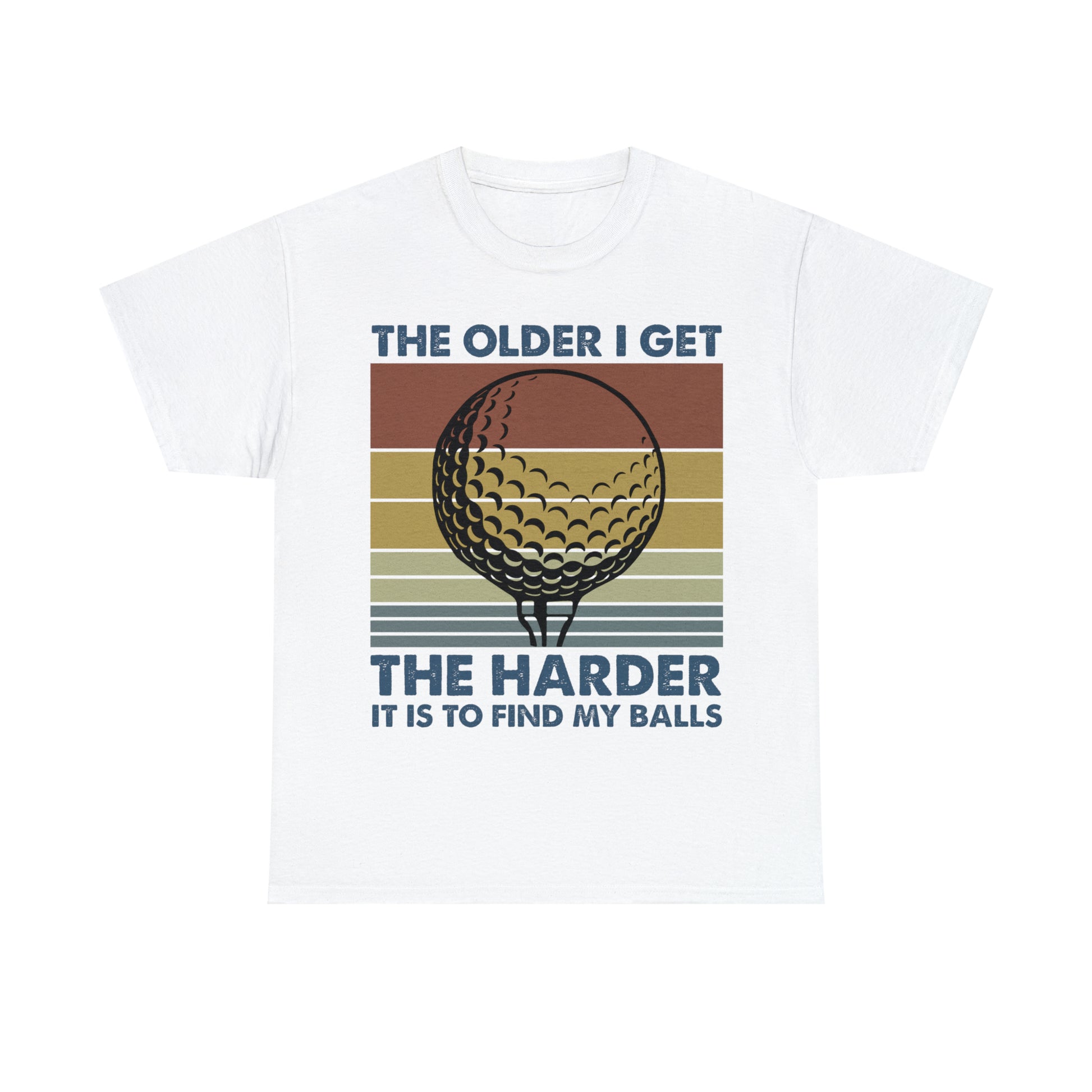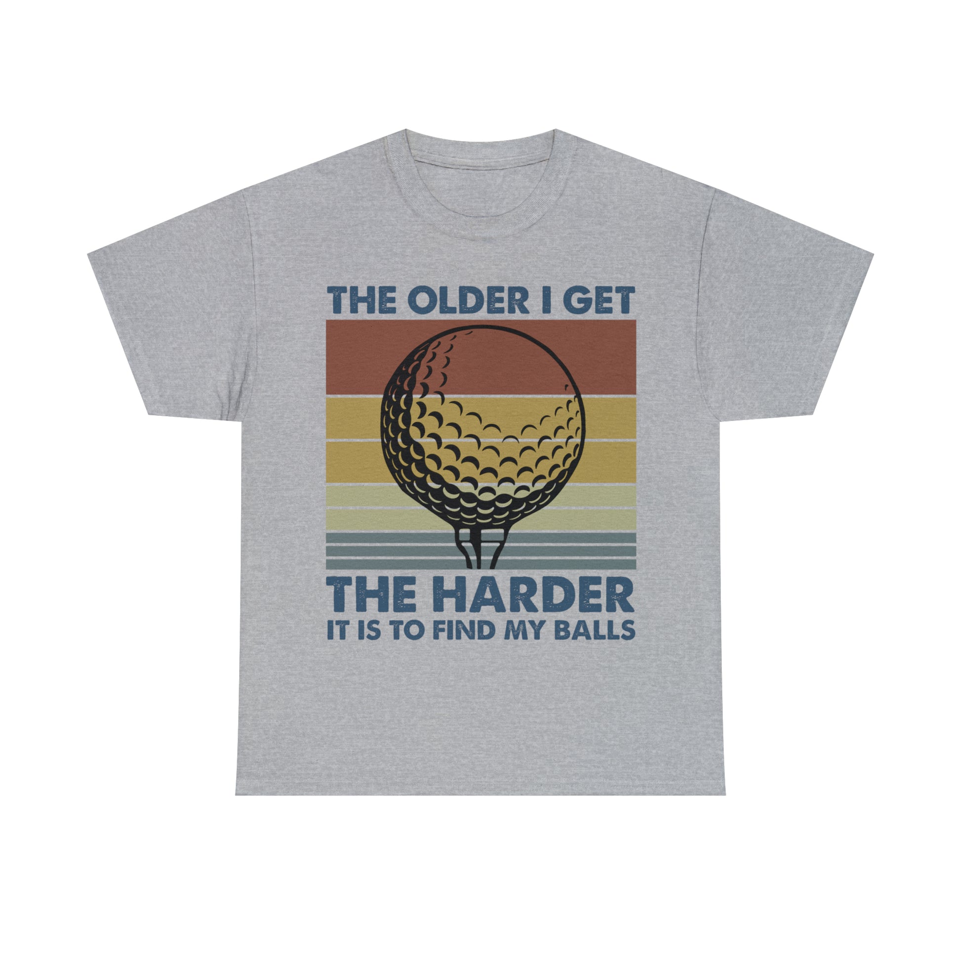 Adding a humorous twist to the trials of aging and golfing, this vintage-style "The Older I Get the Harder it Gets to Find My Balls" t-shirt is a light-hearted gem. With a prominent golf ball design, it playfully captures the often-relatable challenges of spotting golf balls in play. Comfortable and attention-grabbing, this tee is perfect for the seasoned golfer who embraces both the joys and jests of the game, celebrating the amusing side of maturity.