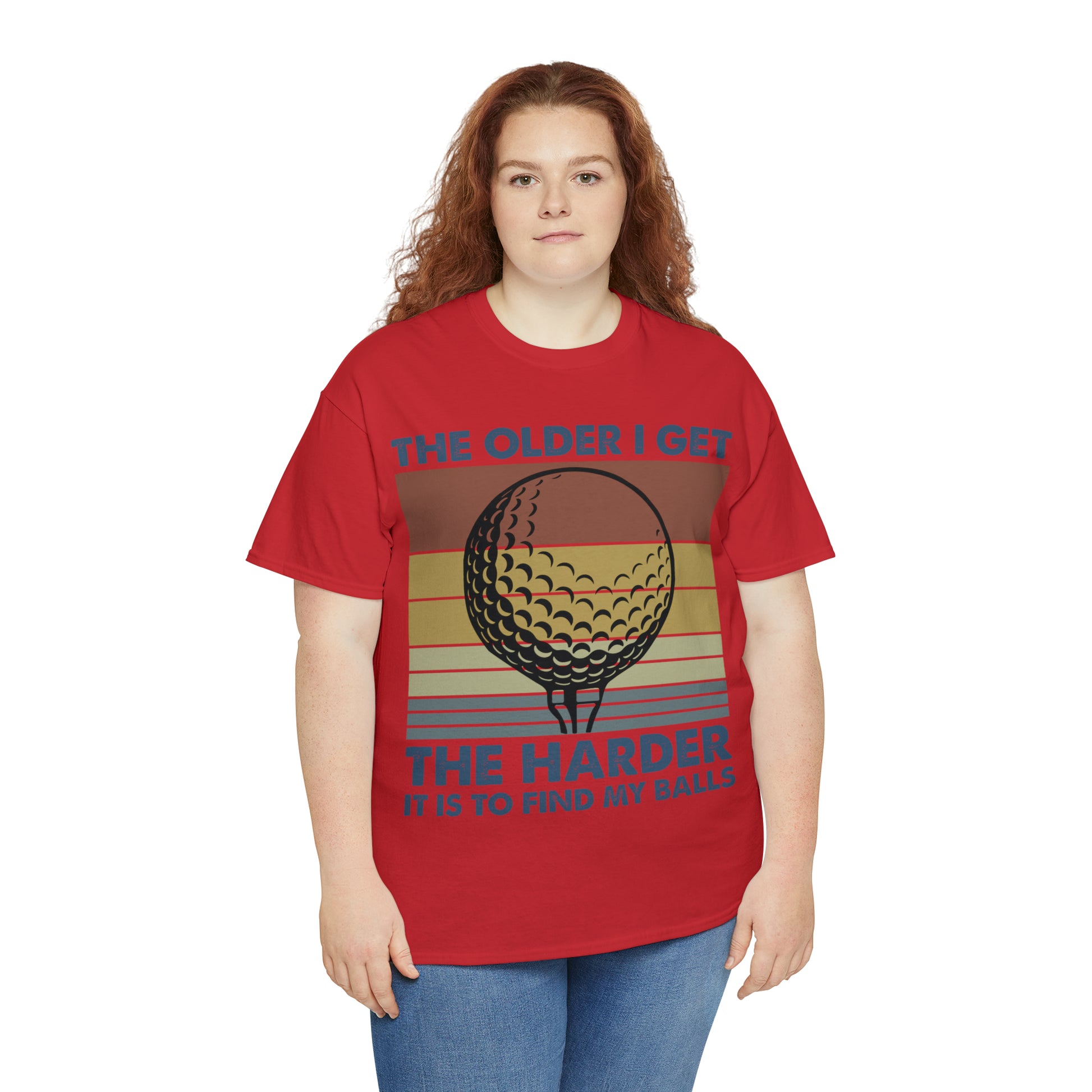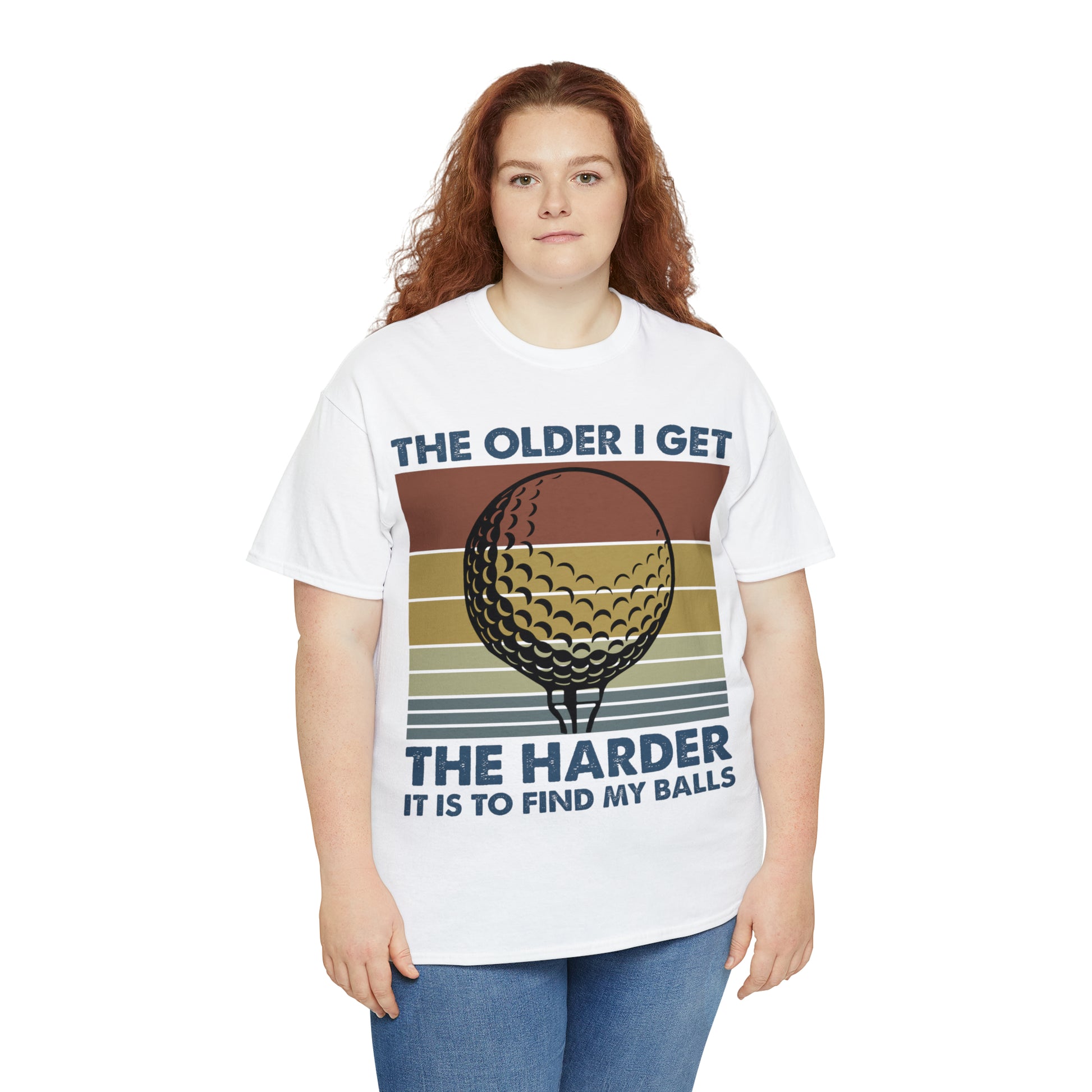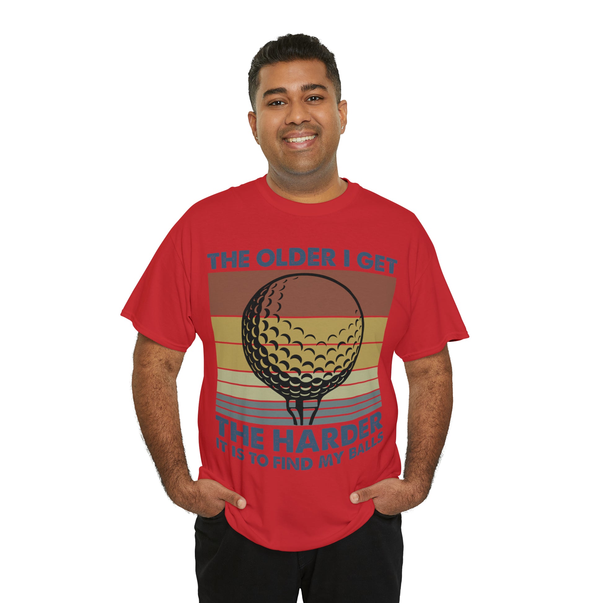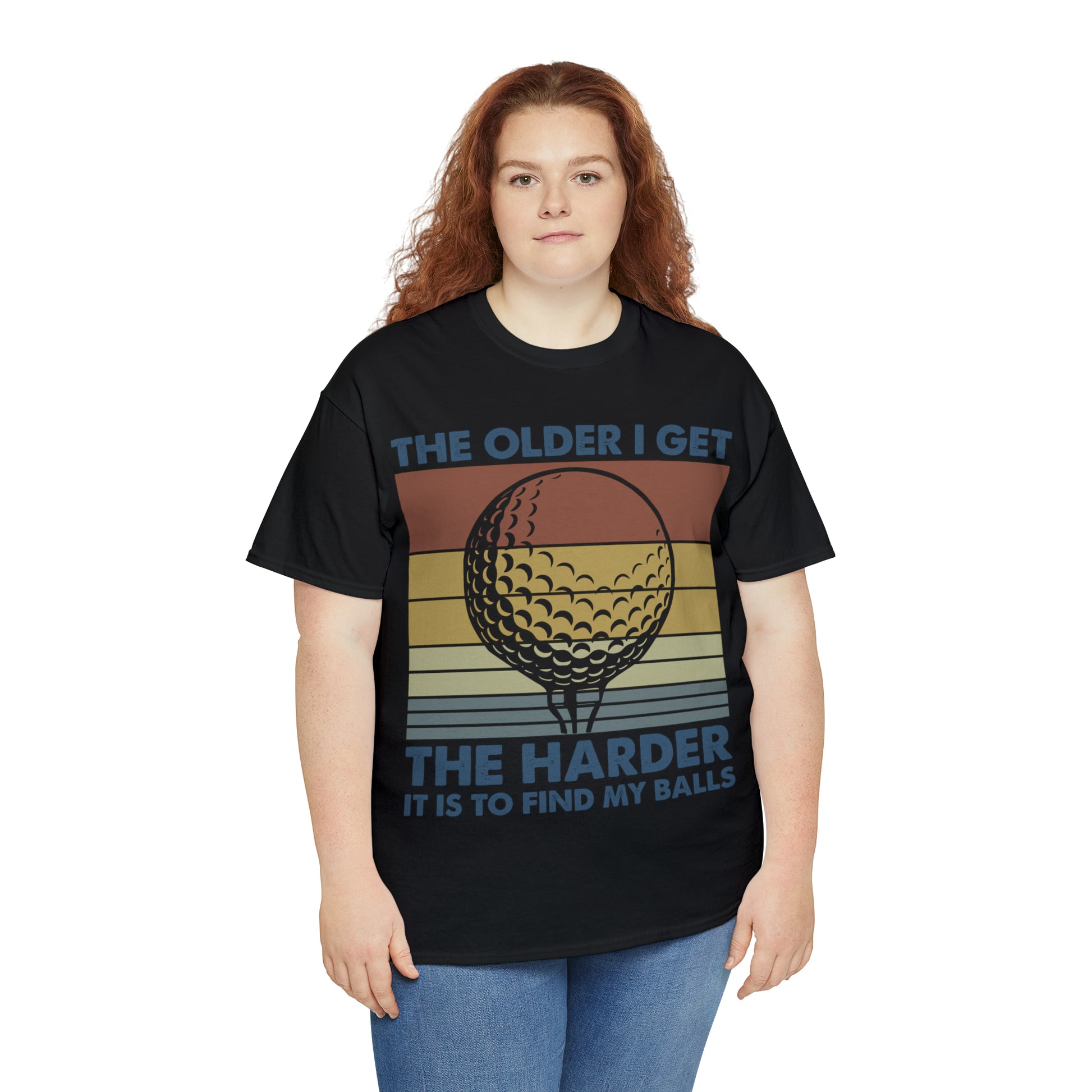 Adding a humorous twist to the trials of aging and golfing, this vintage-style "The Older I Get the Harder it Gets to Find My Balls" t-shirt is a light-hearted gem. With a prominent golf ball design, it playfully captures the often-relatable challenges of spotting golf balls in play. Comfortable and attention-grabbing, this tee is perfect for the seasoned golfer who embraces both the joys and jests of the game, celebrating the amusing side of maturity.